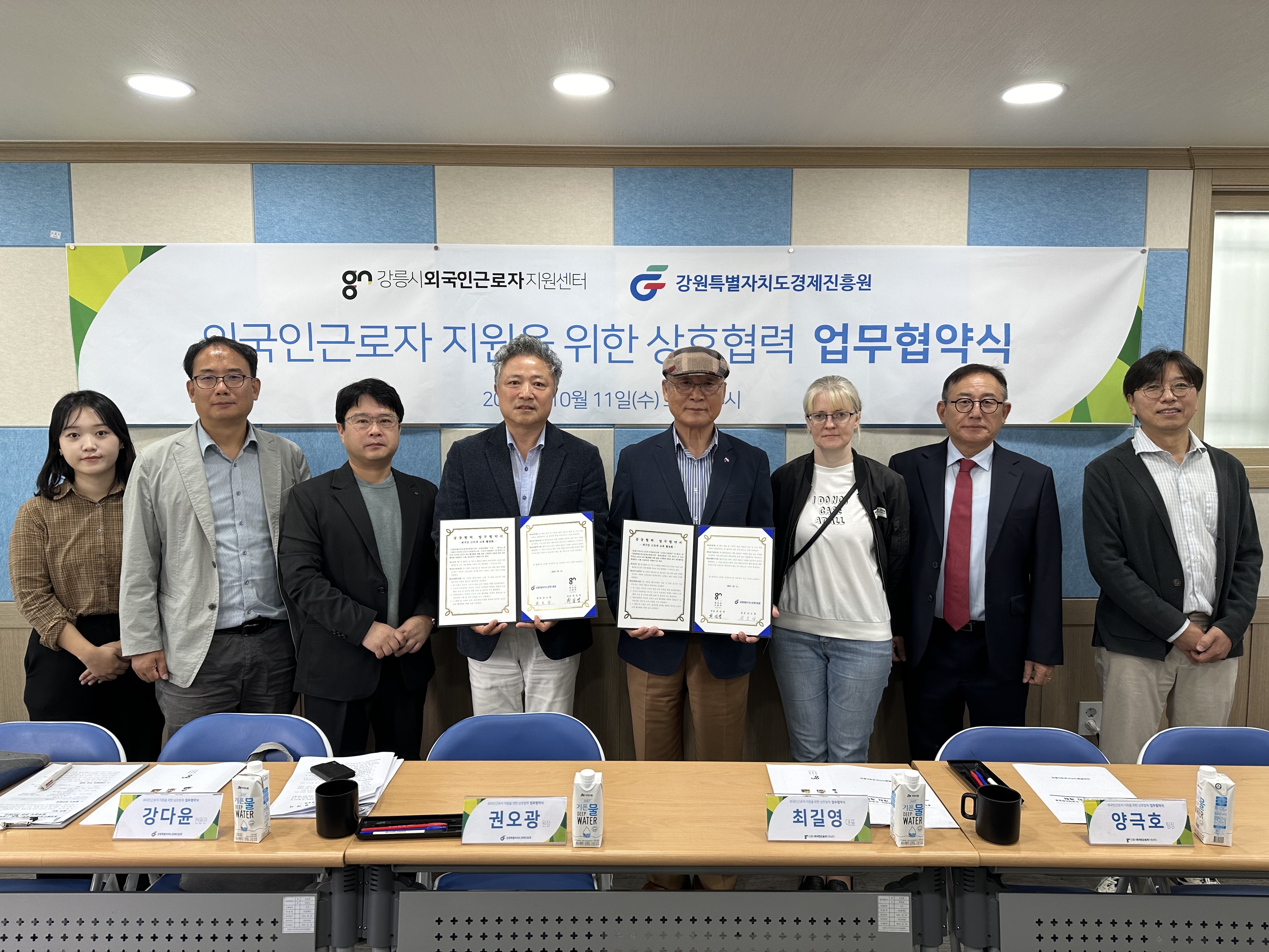 오늘 강원특별자치도 경제진흥원과 외국인근로자 교육지원에 관한 업무협약을 하였습니다.