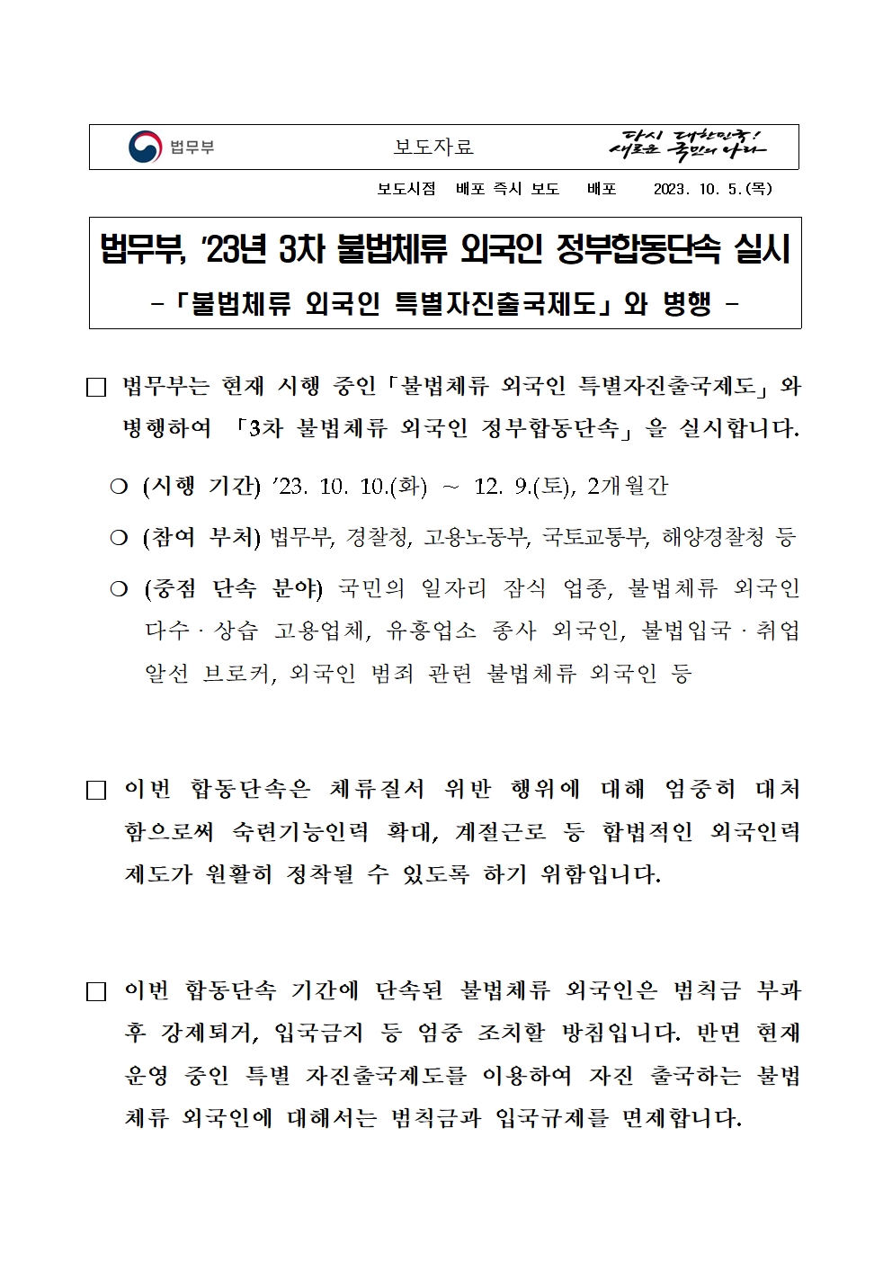 | [외부공지사항] 법무부_불법체류 외국인 특별 자진출국제도 안내 (0) | 2023.09.18 |