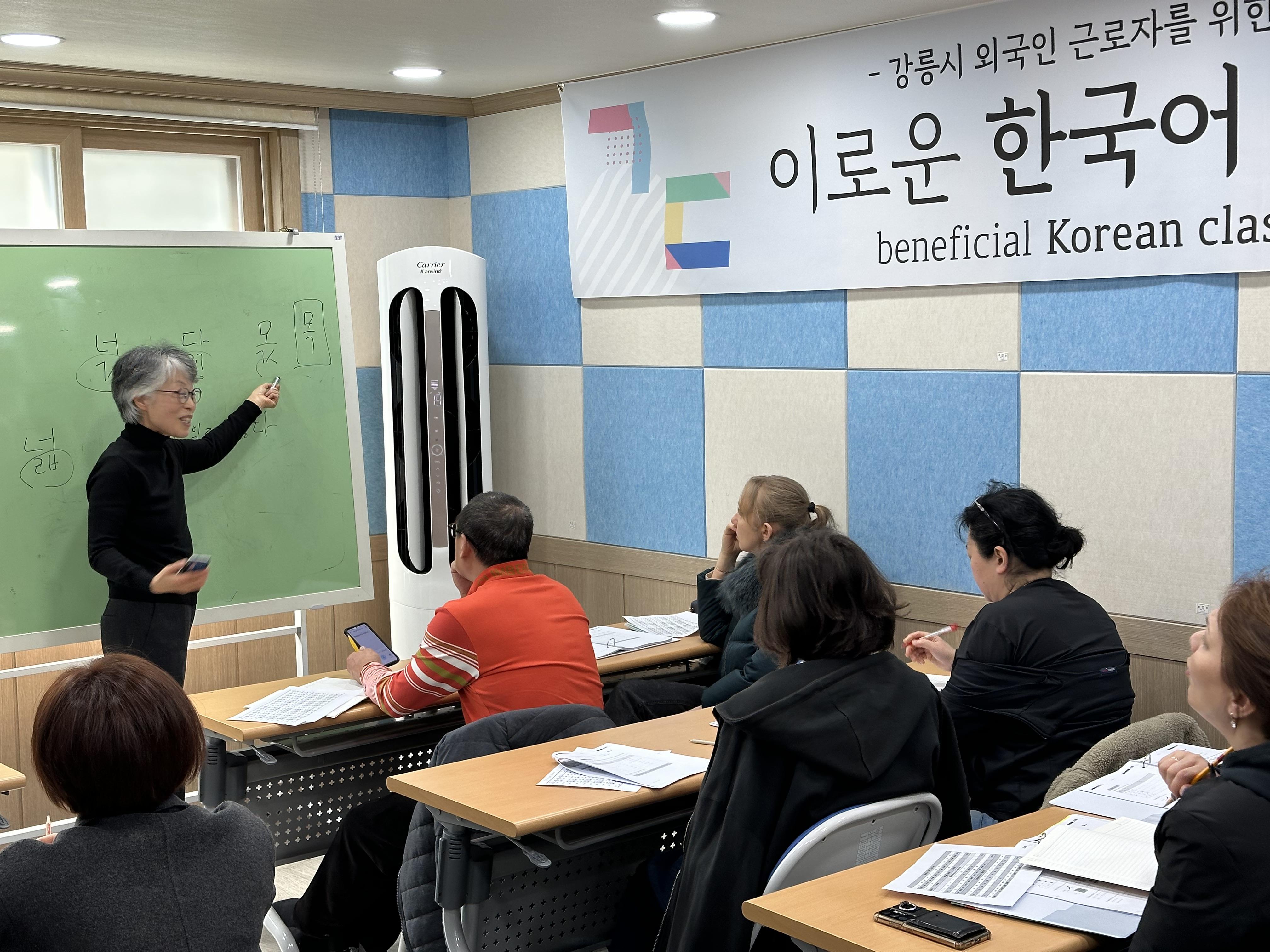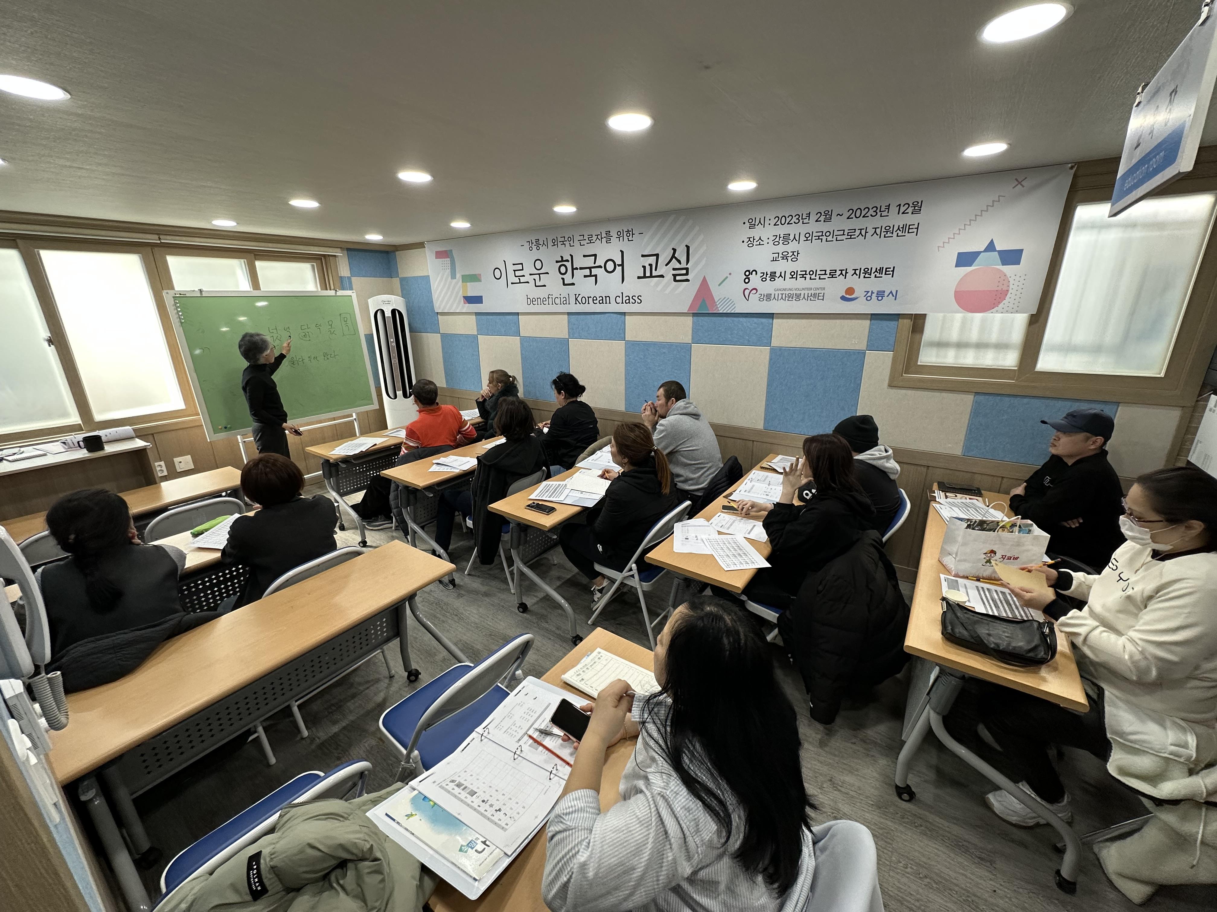 강릉시 외국인근로자 지원센터는 오늘 이로운 한국어 교실 일요일 오후반을 운영하였습니다.