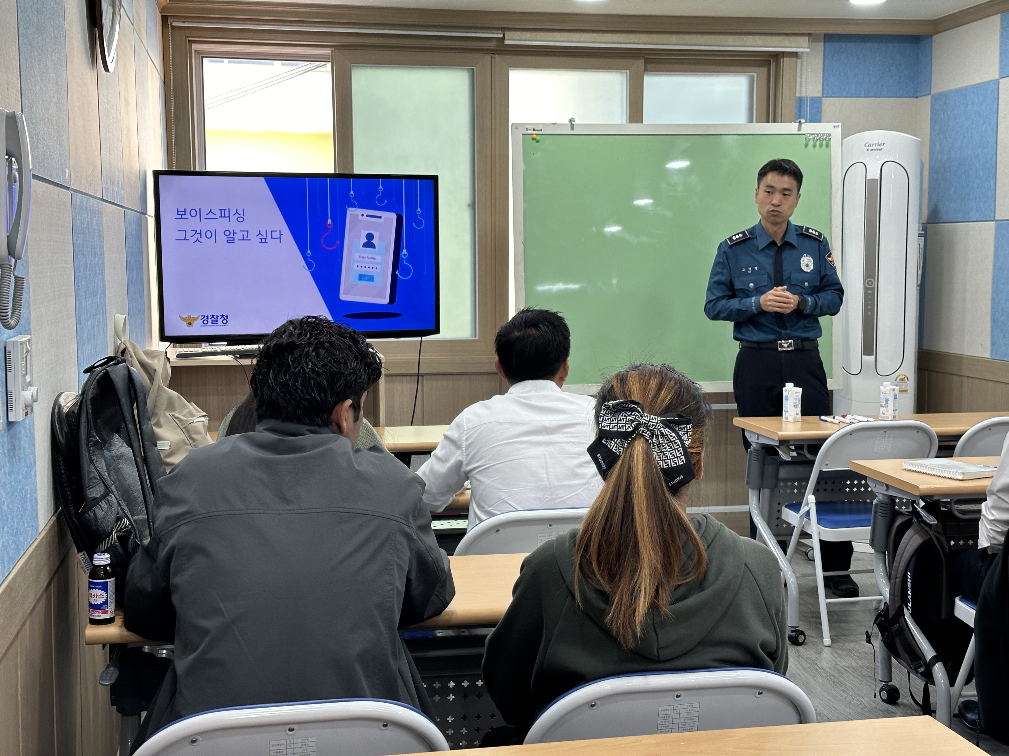 본격적 강의가 시작되면서, 보이스피싱은 한국말을 잘 못하면 되려 안당한다면서 안심을 시켰지만 우리 외국인근로자는 한국어가 출중한 관계로 주의 깊게 들어야 한다고 했습니다. 특히 강릉사례를 중심으로 특강을 해주어서 외국인근로자도 경각심을 갖고 듣게 되었습니다.