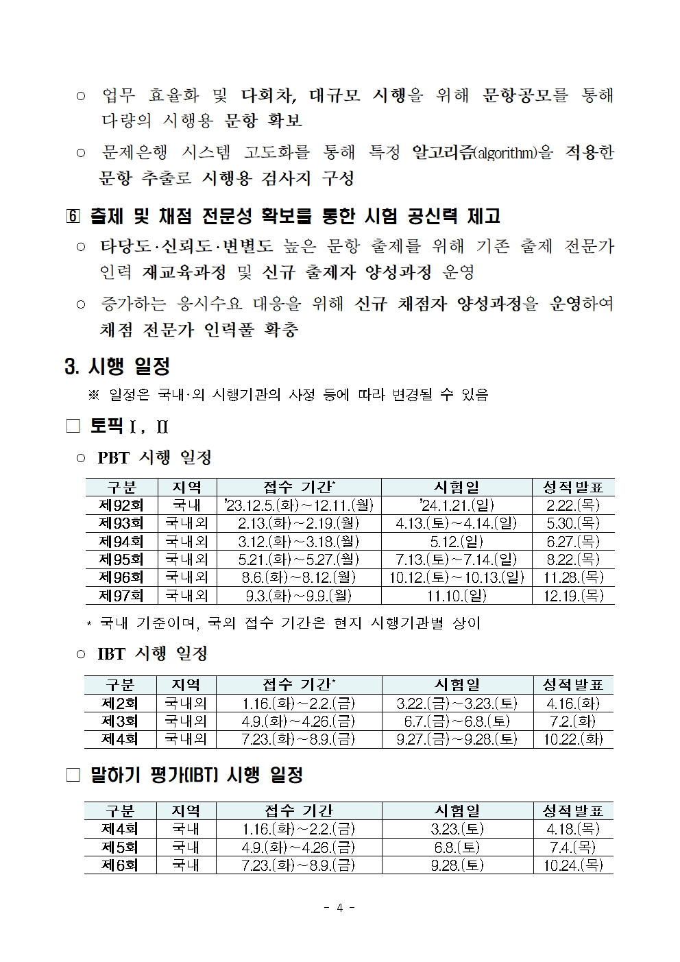 교육부에서는 지난 10월 2024년 한국어능력시험(TOPIK)응시 계획을 발표하였습니다.