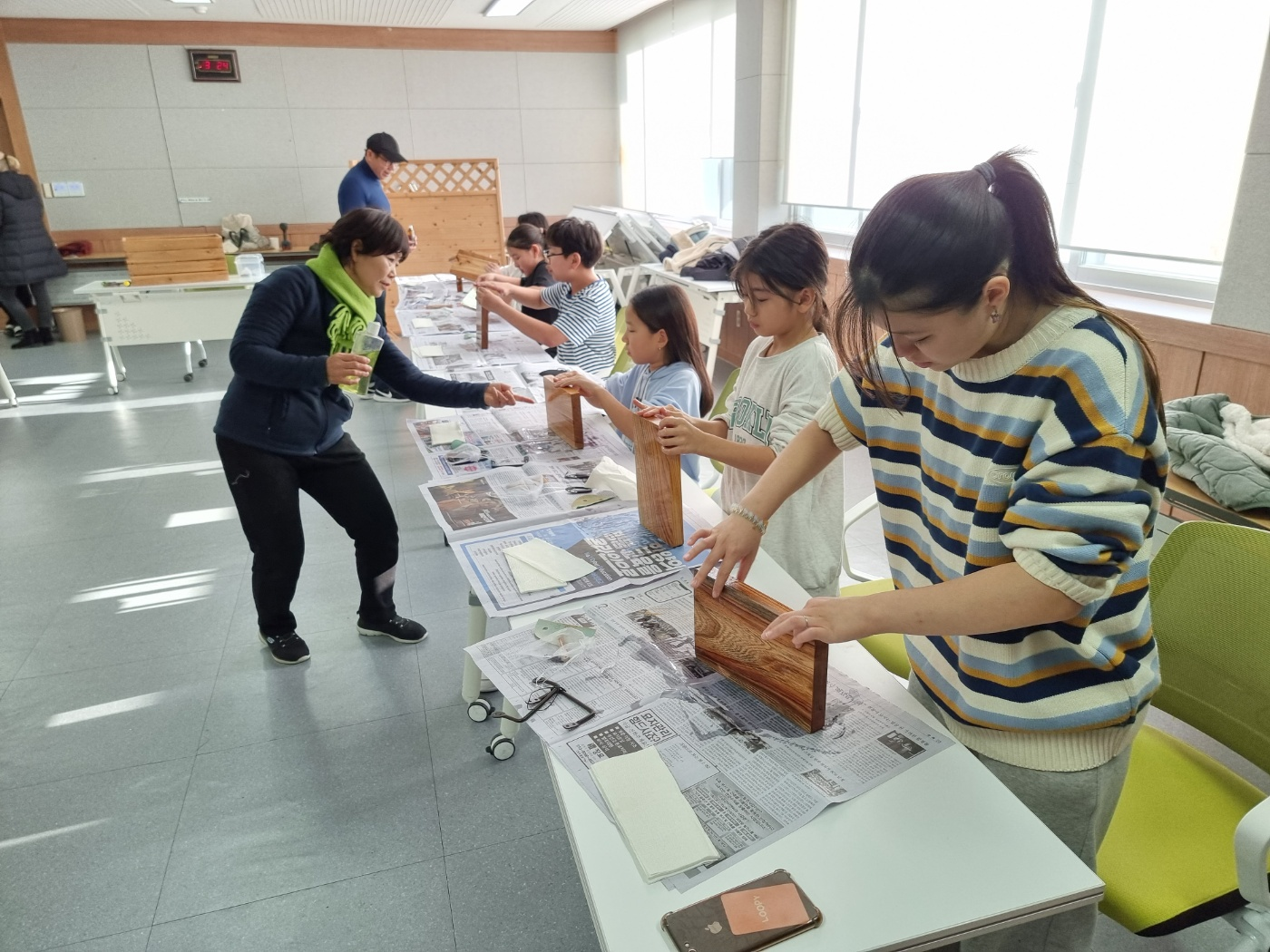강사님께서 미리 다듬어 오는 목재를 사포로 다듬는 일부터 체험합니다.