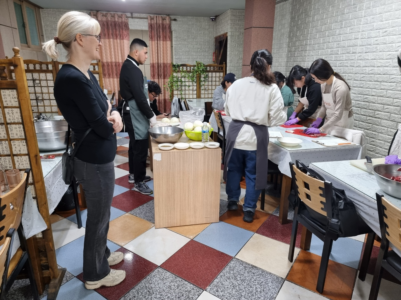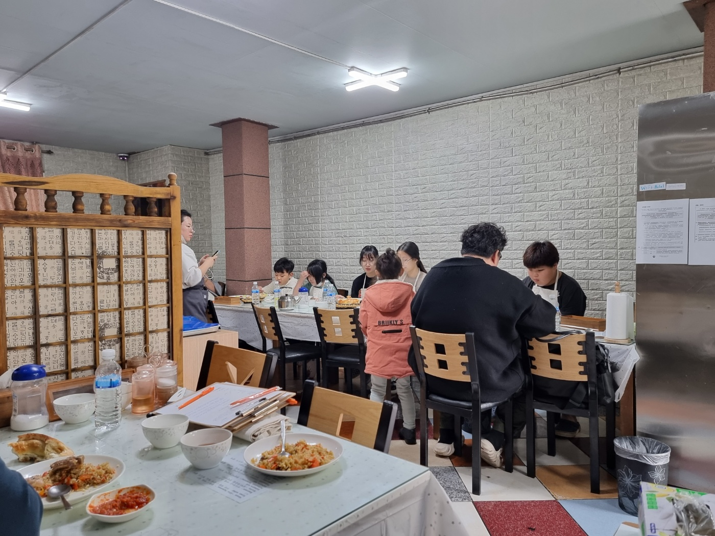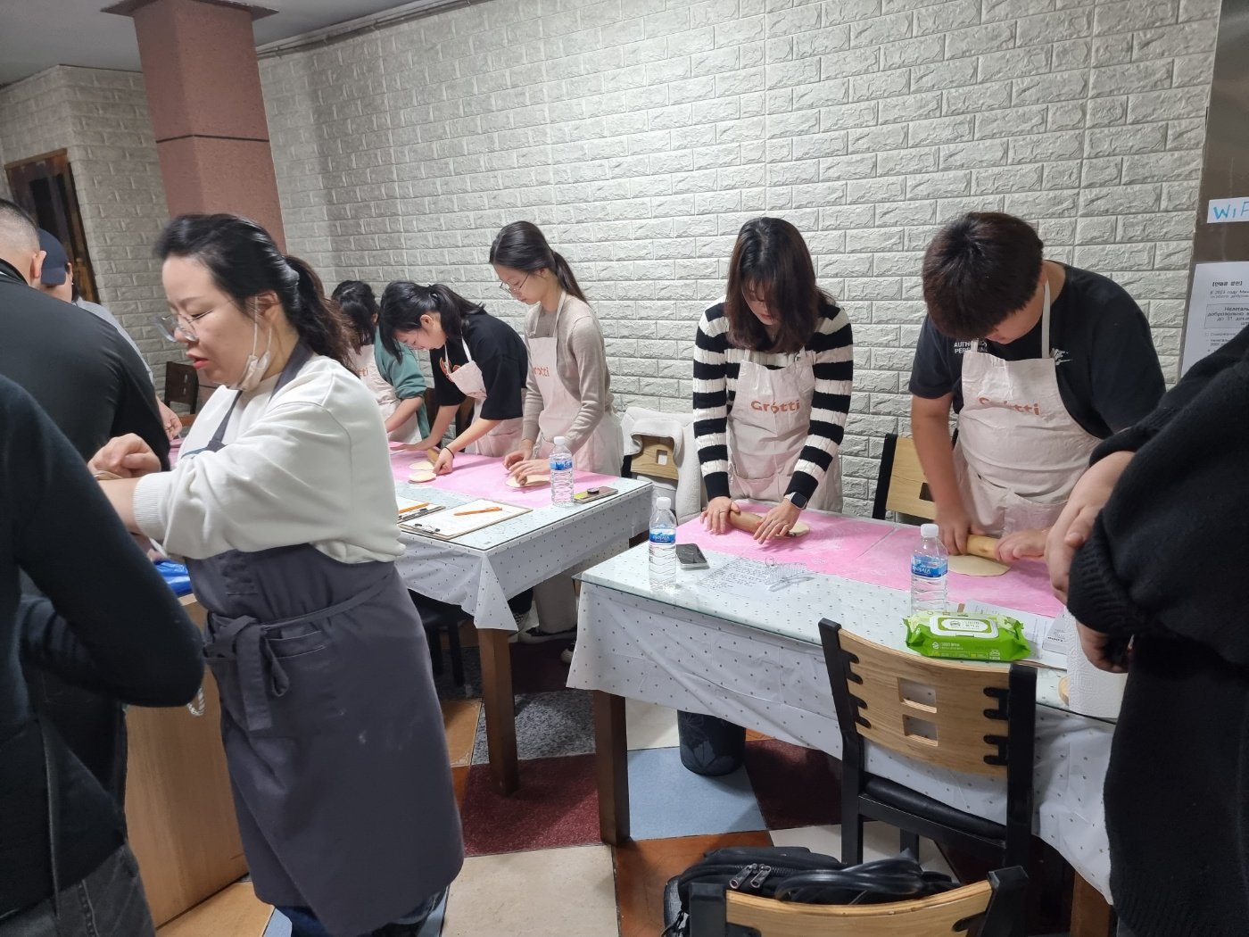 센터에서 상담테이블을 옮기고, 반죽을 해 놓고 내국인 학생들을 기다렸습니다.