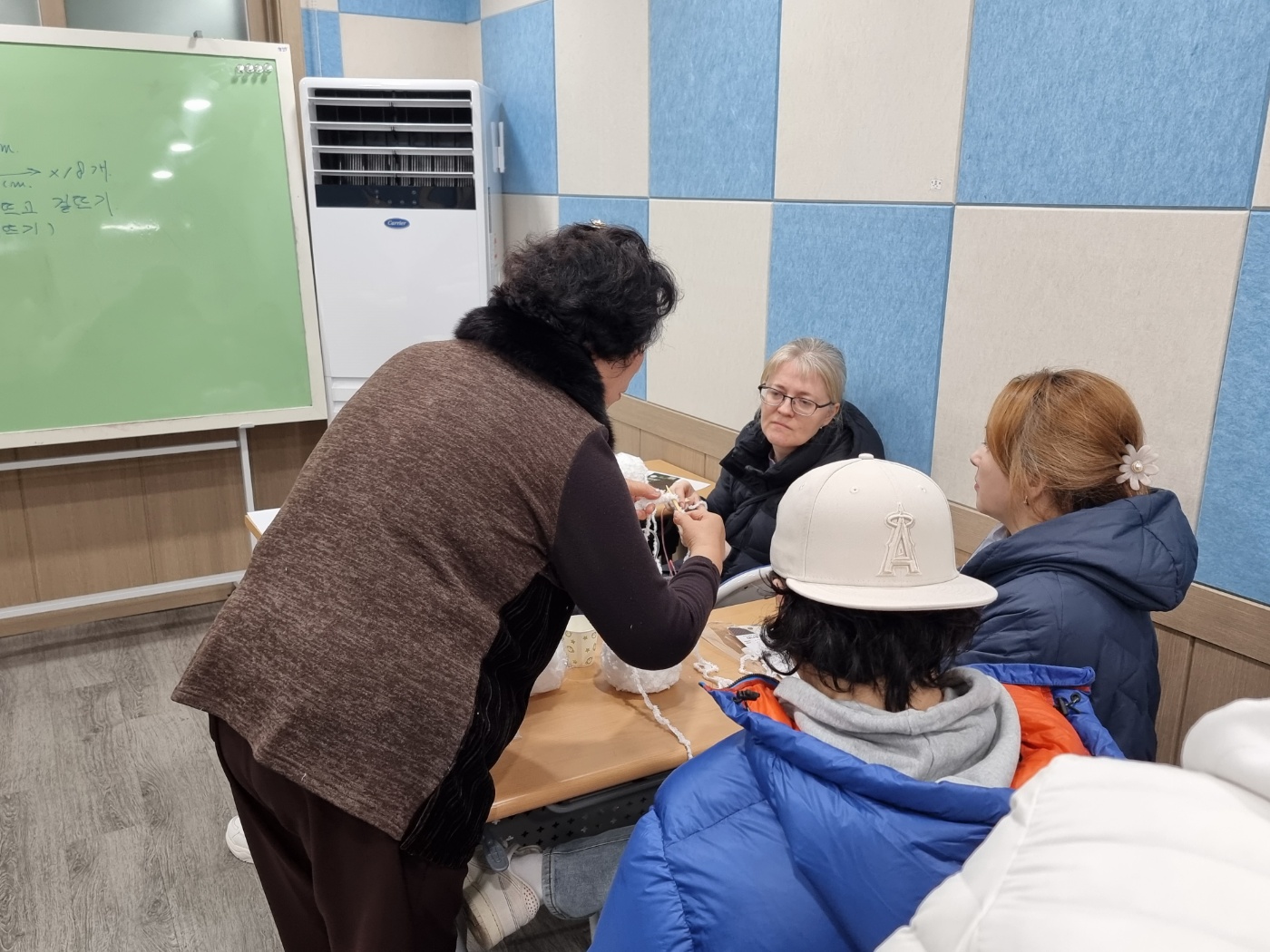 어려운 한국말로 설명하는 뜨게질 용어도 손모양으로 이해하며 배우고,