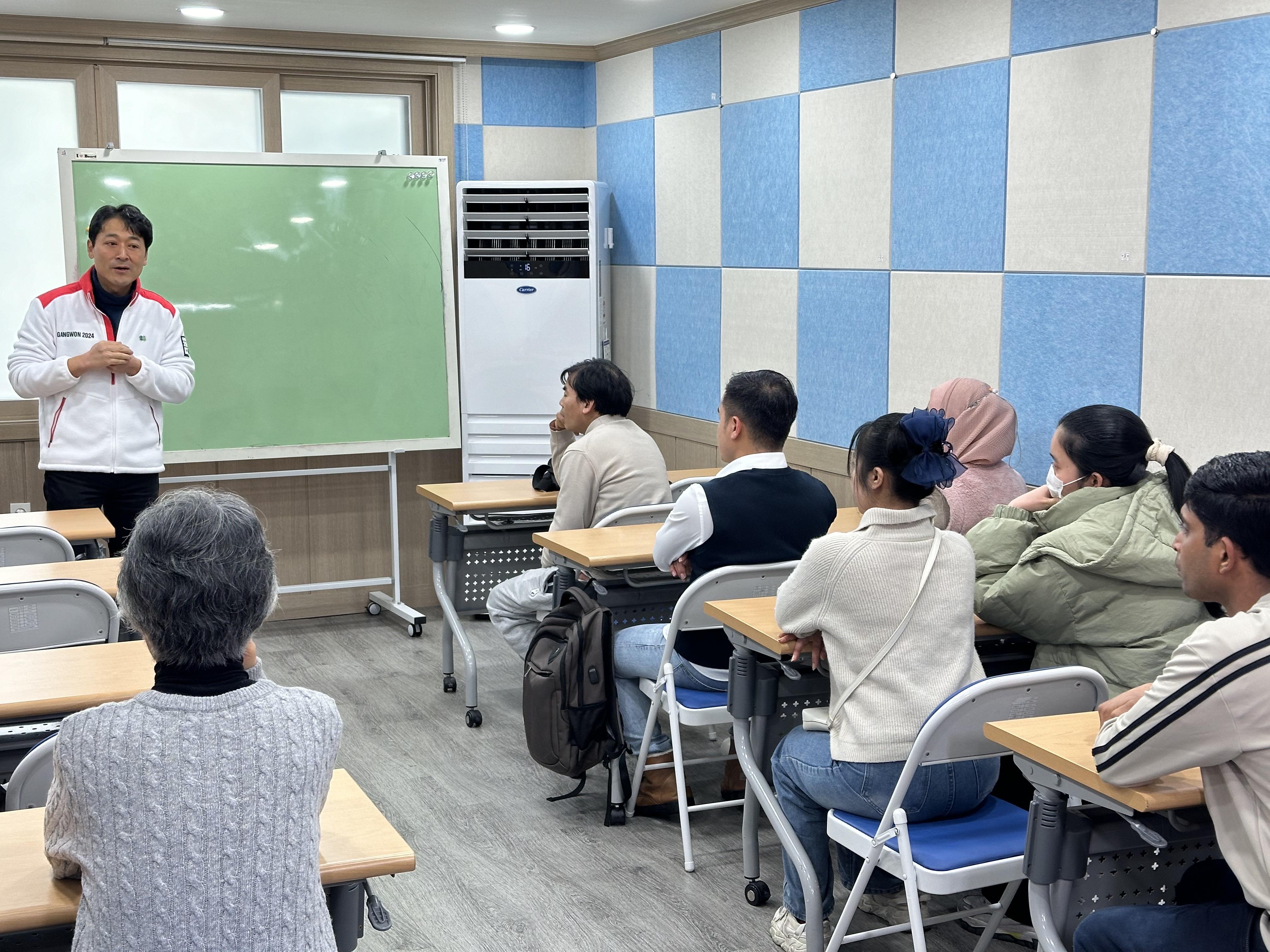 다양한 사업을 모두 소개했으면 좋겠지만, 시간이 부족해서 우선 외국인근로자에게 적합한 프로그램인 평생교육 프로그램을 설명해 주었습니다. 나중에 강릉영동대학에서 공부를 하게 될 경우에 학점으로 전환할 수 있다며 적극적으로 권하였습니다.
