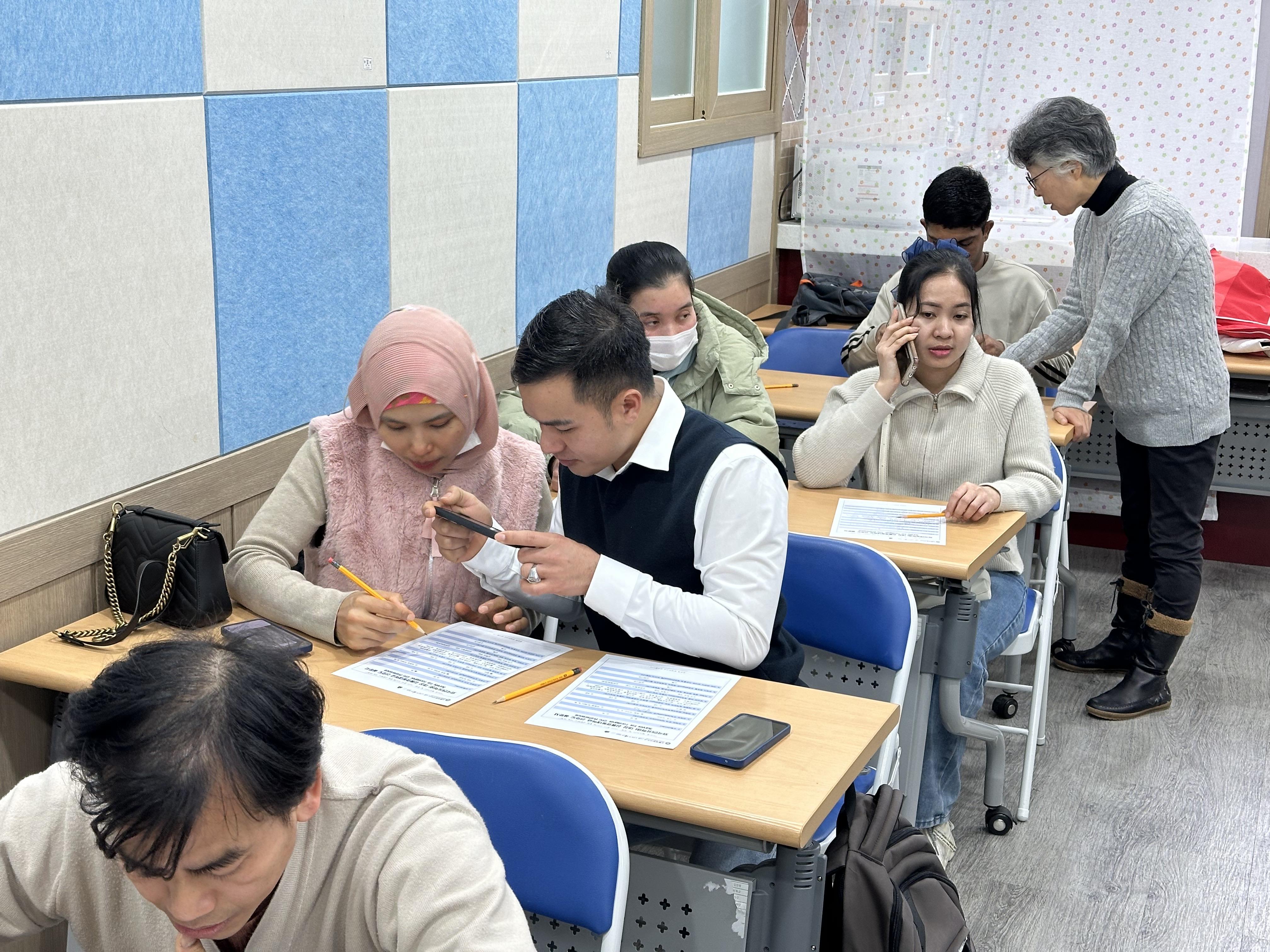 일요일오후반에는 지난 주가 개강인줄 알고 오신 외국인근로자 3분이 수업에 참여했습니다. 수업 후 2024 청소년동계올림픽 경기를 보러가신다고 좋아합니다. 홍보가 잘 되서 만은 외국인근로자가 찾아왔으면 합니다.