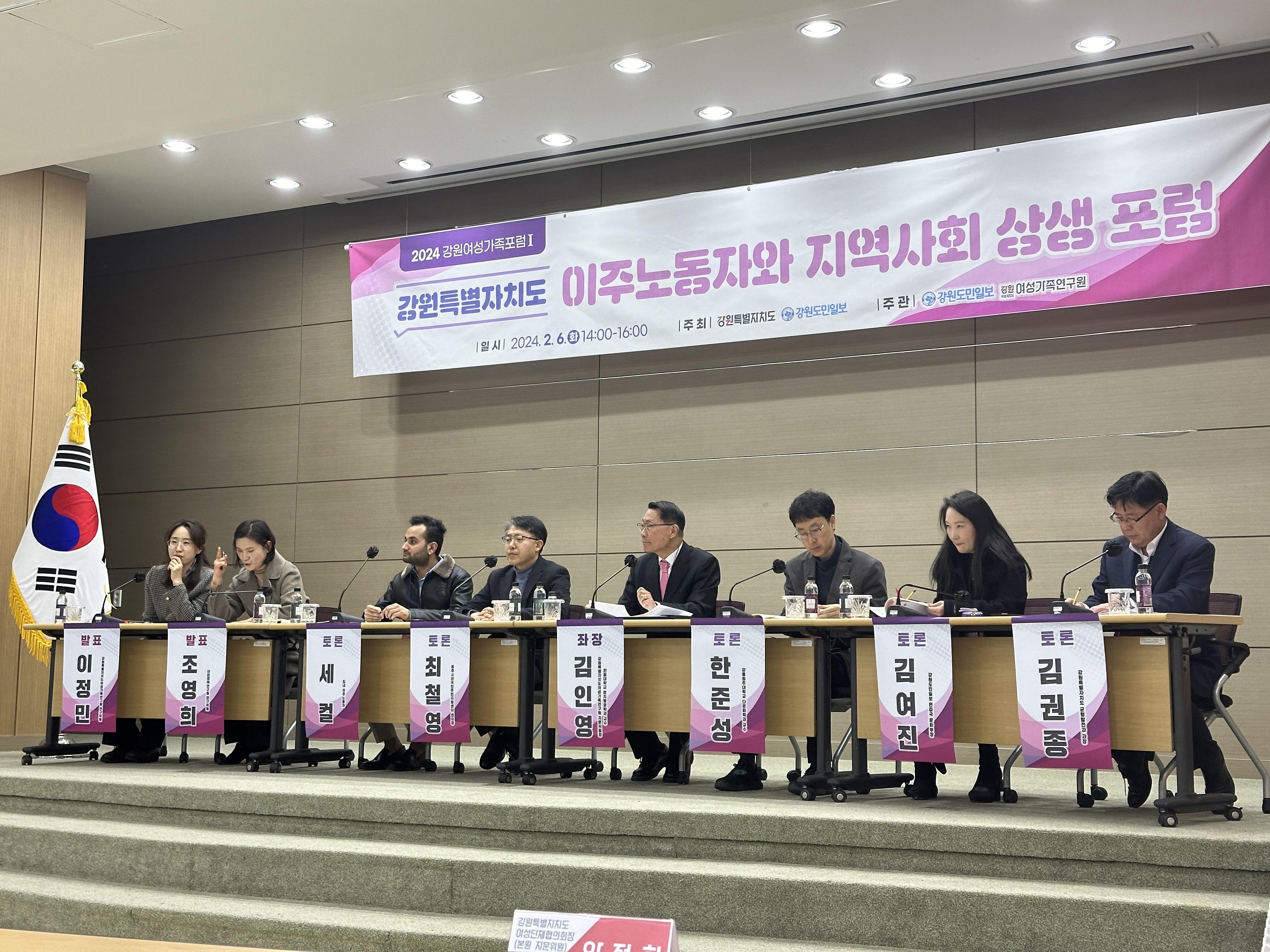 강원특별자치도 이주노동자와 지역사회 상생 포럼이 2월 6일 오후 2시 부터 오후 4시까지 춘천에 있는 강원특별자치도 여성가족연구원에서 개최되었습니다.