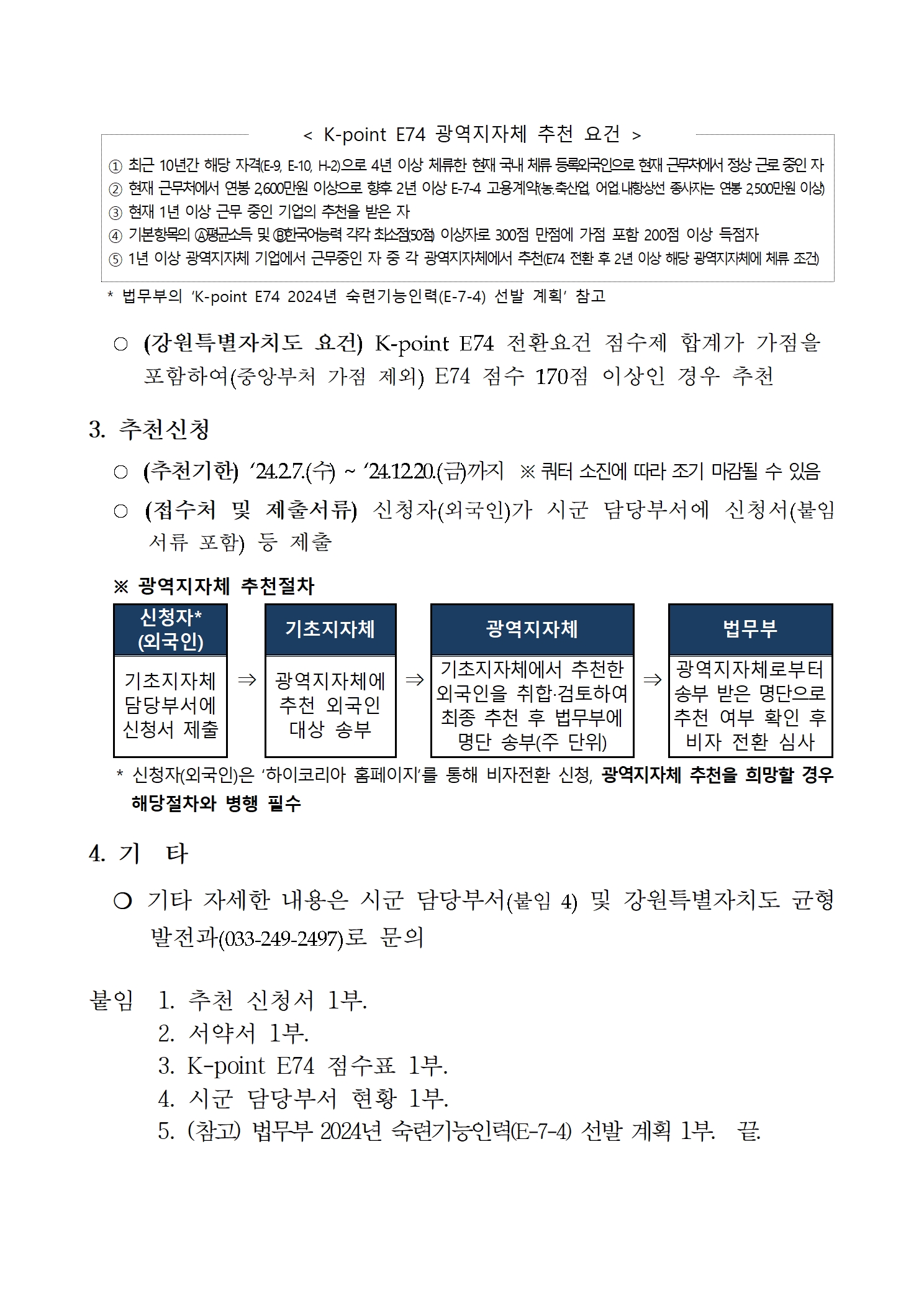자세한 내용은 홈페이지와 강원특별자치도 균형발전과 033-249-2497로 해 주시기 바랍니다.