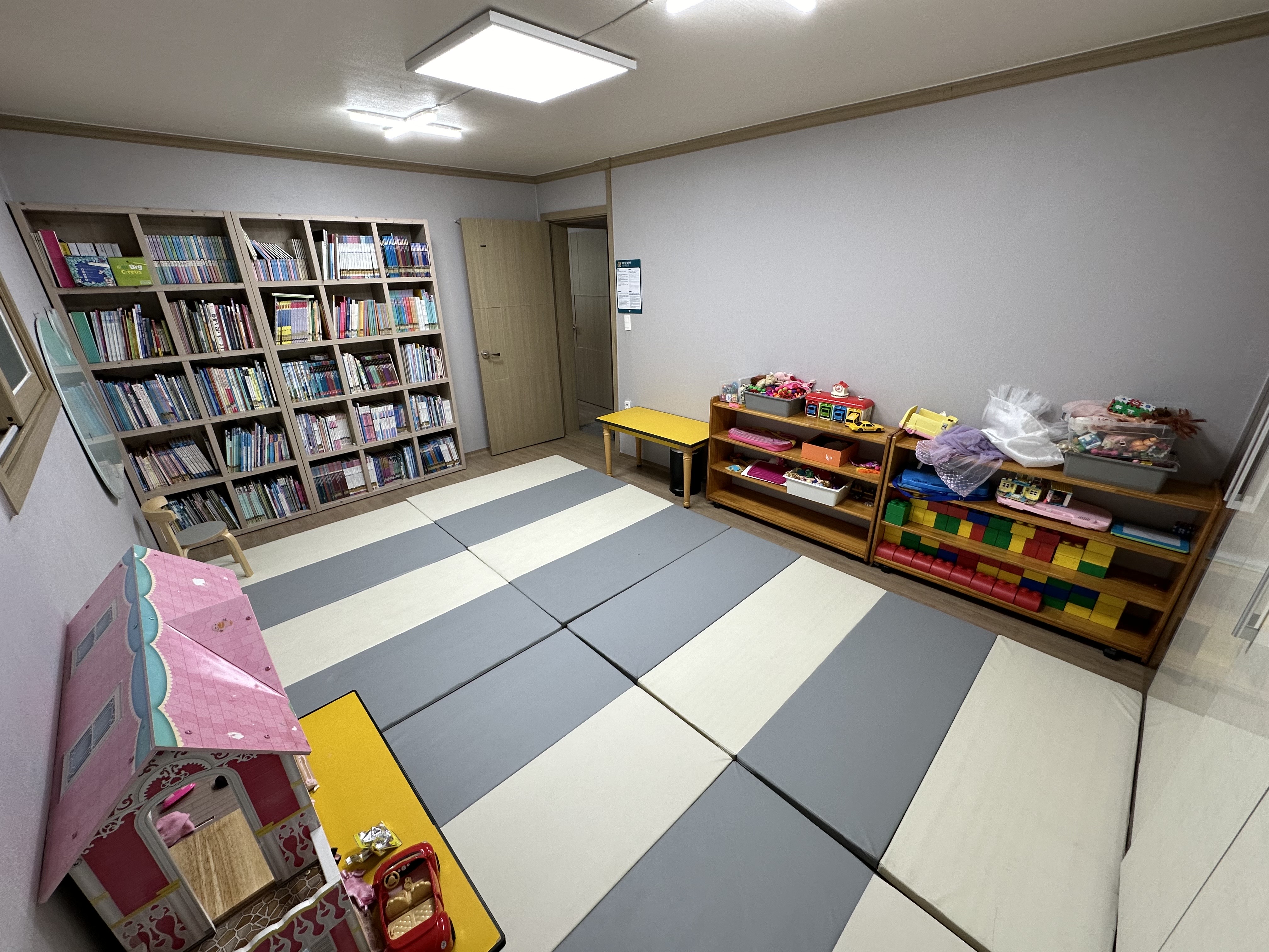 2층에는 교육장, 회의실, 라운지, 놀이방이 있습니다.