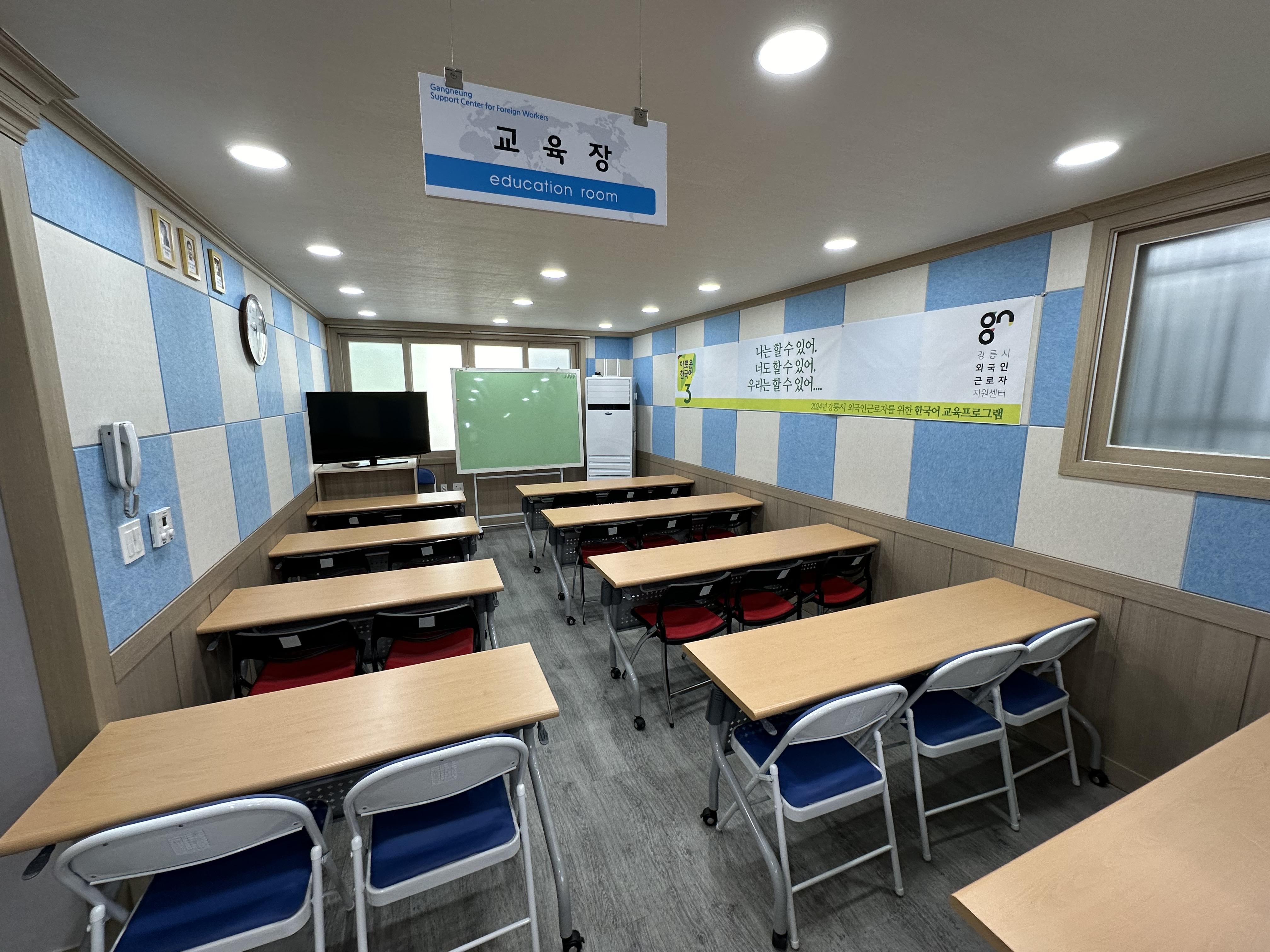 2층에는 교육장, 회의실, 라운지, 놀이방이 있습니다.