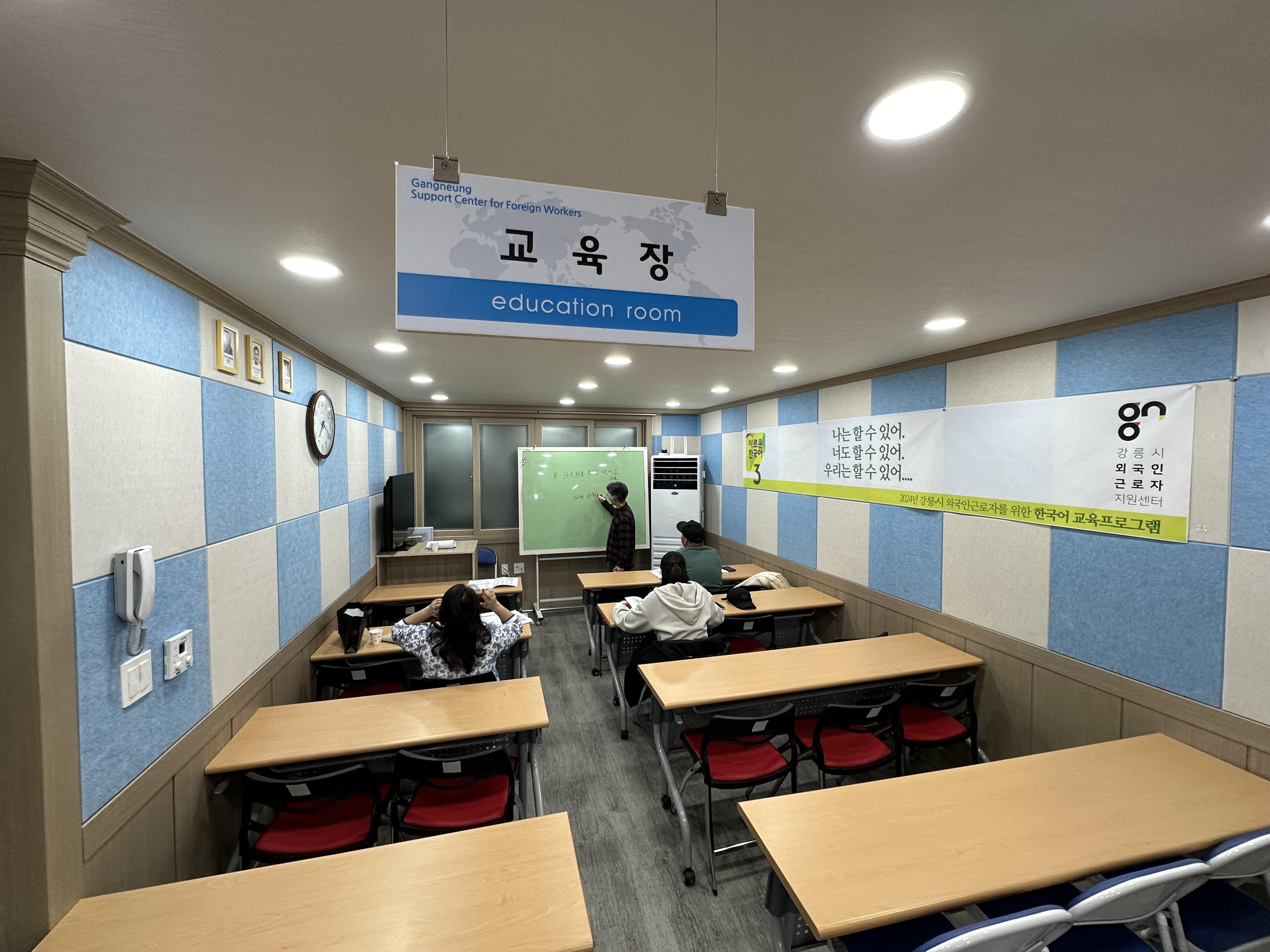 한국어를 처음 접하는 외국인근로자를 위해 일요일오후 4시에 한글입문반을 운영하고 있습니다. 3명의 한국어 자원봉사자가 수업을 진행하고 있습니다. 입문반도 수준 차이가 있기 때문에 2개반으로 나눠 운영하고 있습니다.