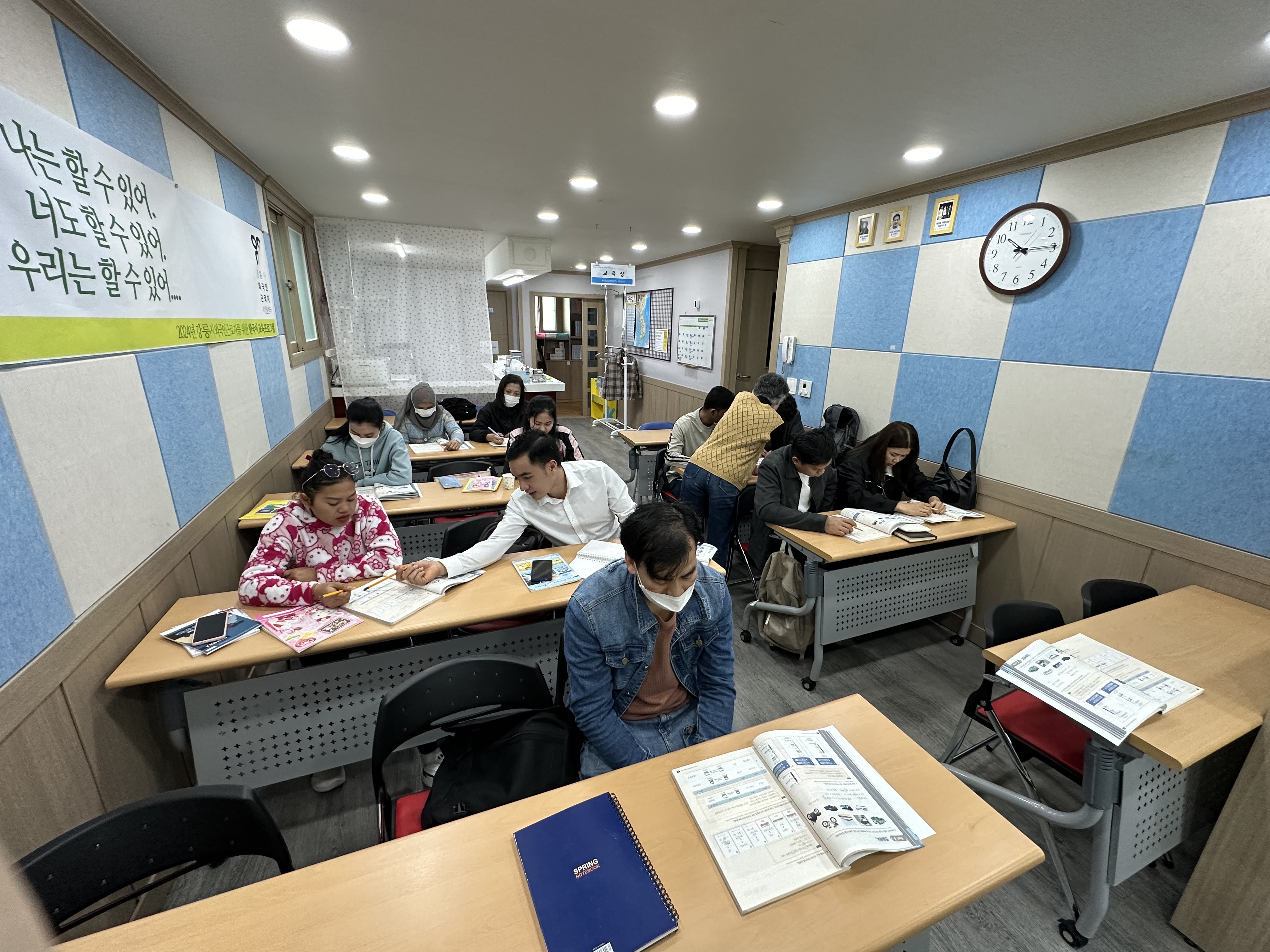 굳은 날씨에도 한국어를 공부하러 오시는 외국인근로자가 있습니다. 컨디션이 좋지 않아서 약을 먹고 자다가 수업시간에 늦었다고 하네요. 아프지 말아야 하는데...걱정입니다.