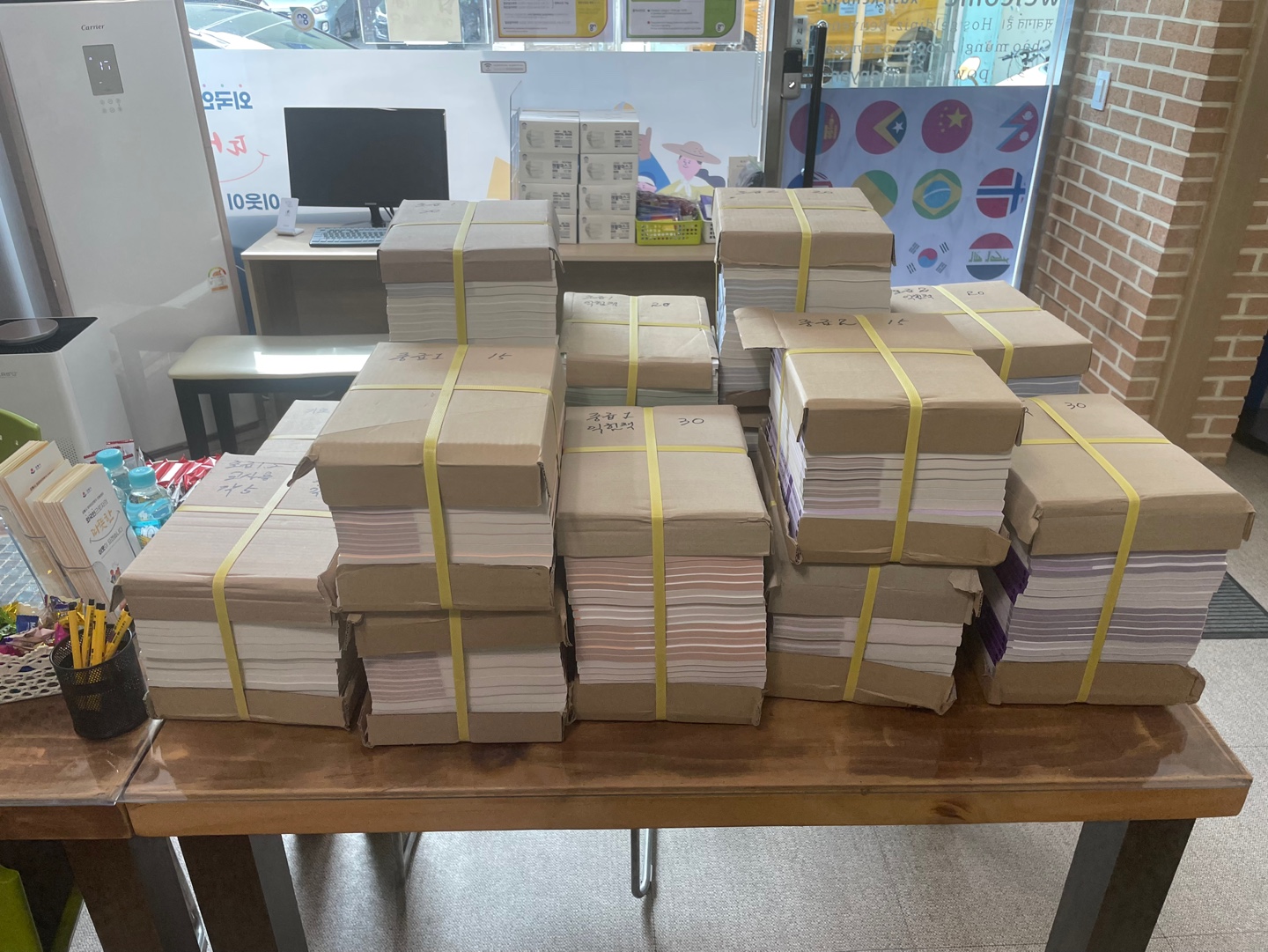 학부모가 될 예정인 외국인노동자들도 교재를 갖고 공부할 수 있게 되었습니다.