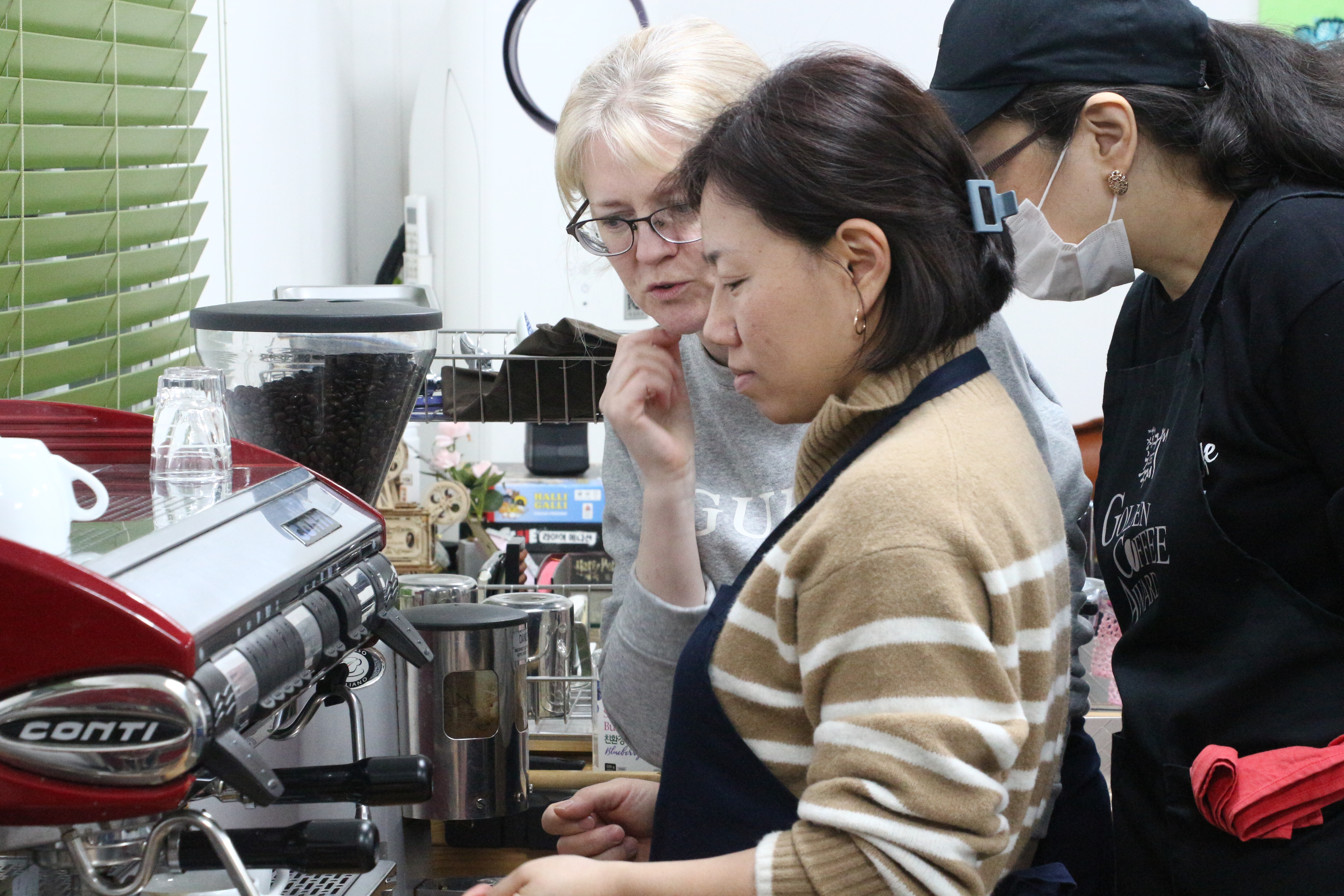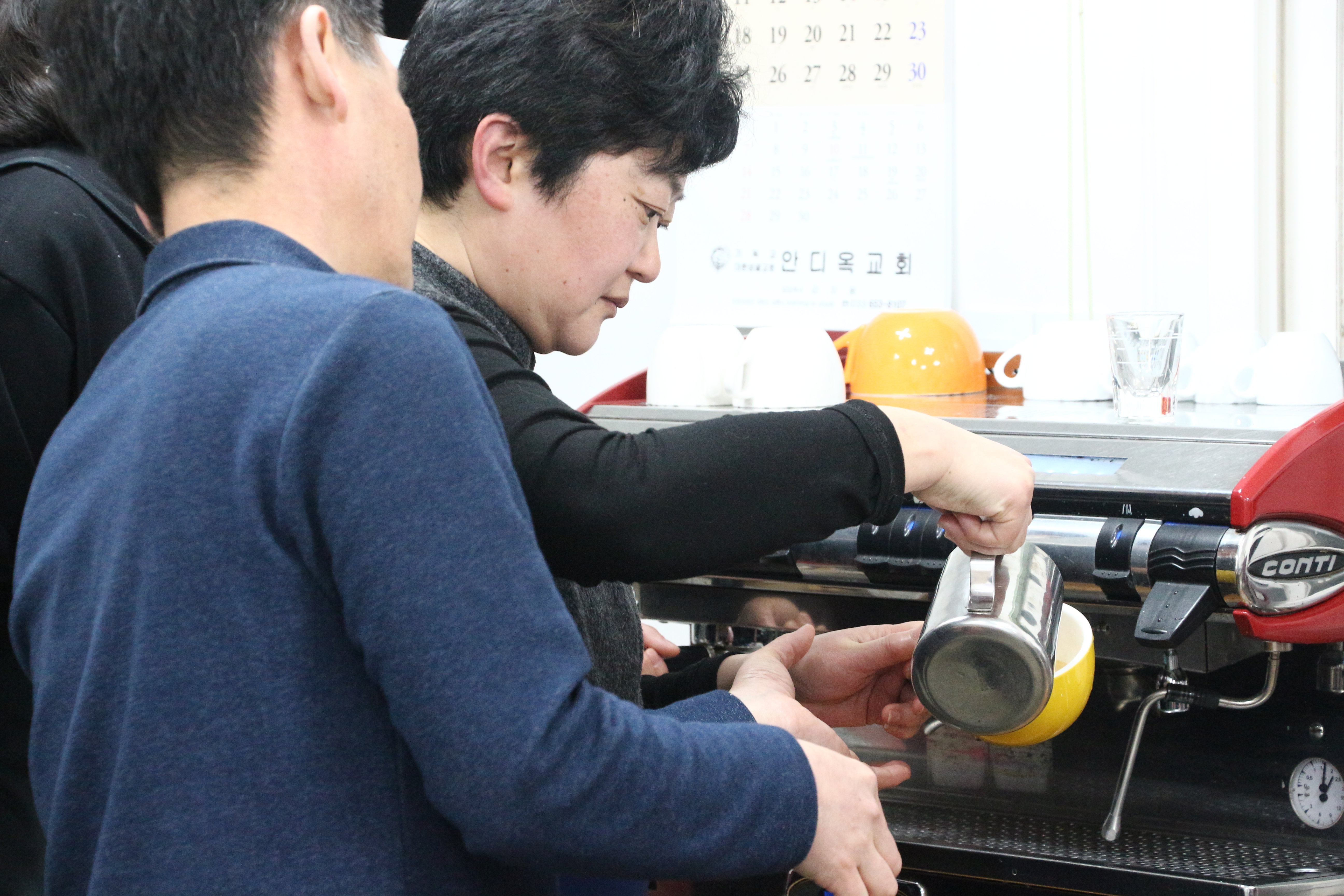 반복을 하긴 하는데...처음처럼 만듭니다..안되겠는지 강사가 멋있게 한잔 내려봅니다.