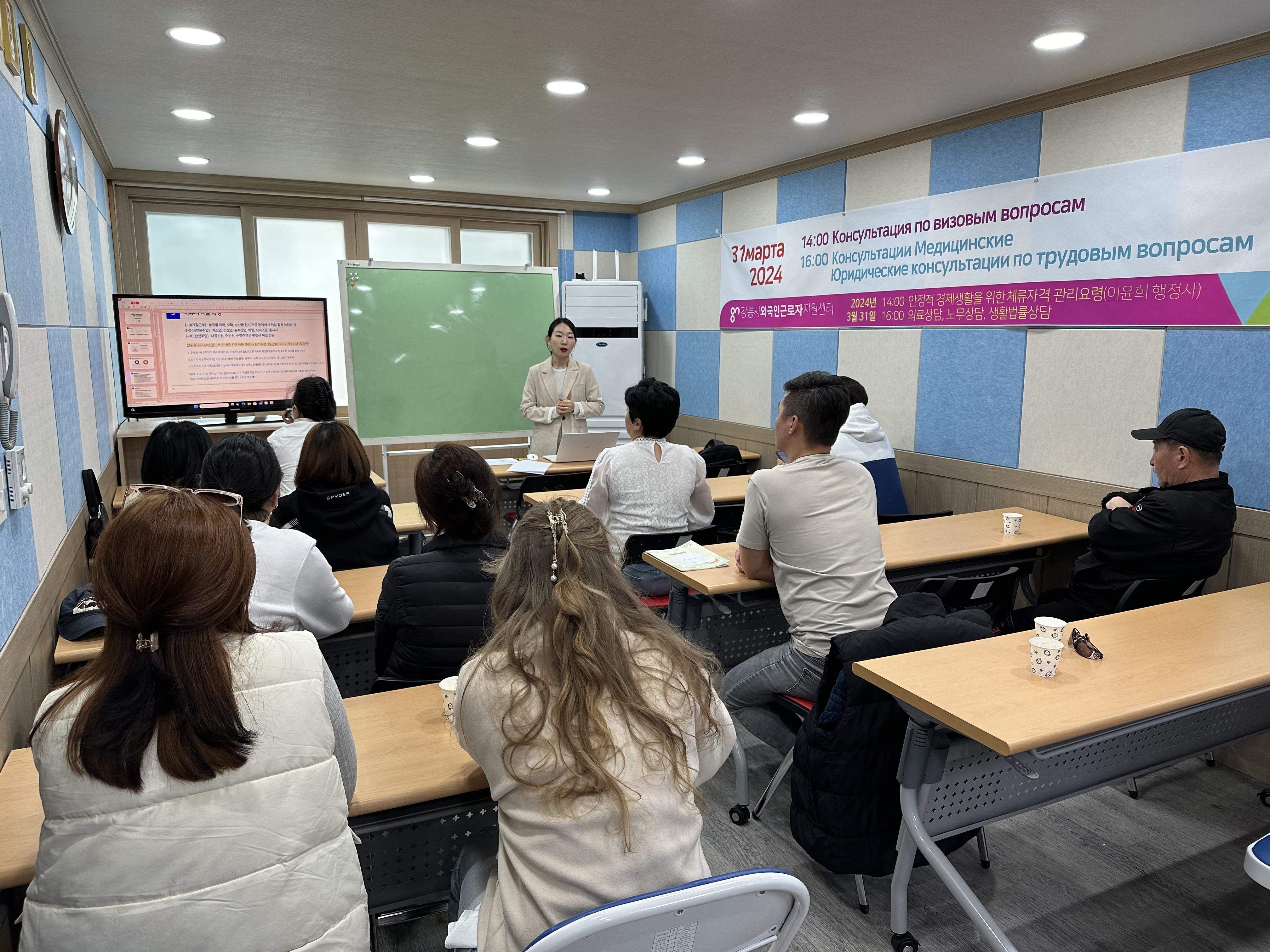40분간 체류자격에 대한 관리요령과 경제활동에 대한 강의를 하였습니다. 이후 개별 컨설팅을 진행했습니다.