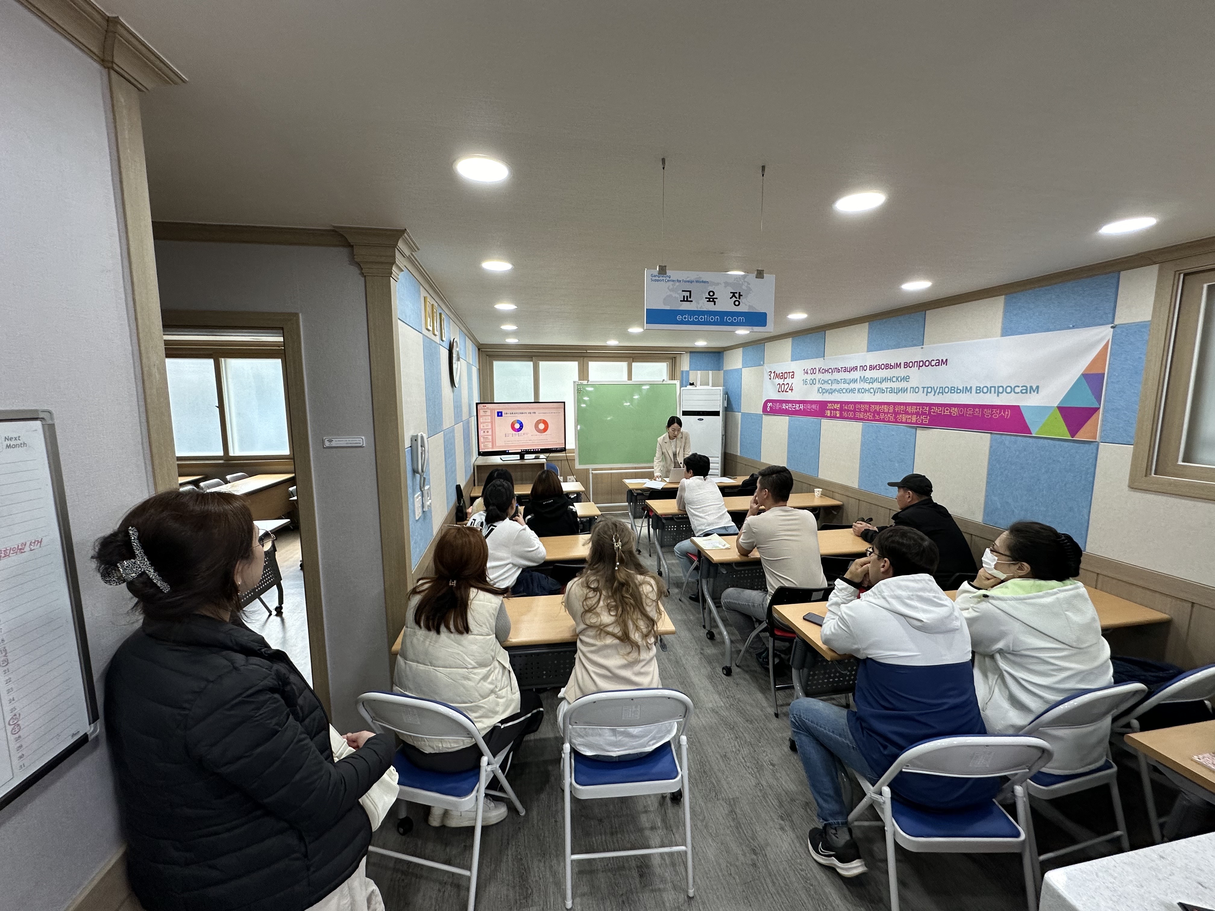 40분간 체류자격에 대한 관리요령과 경제활동에 대한 강의를 하였습니다. 이후 개별 컨설팅을 진행했습니다.
