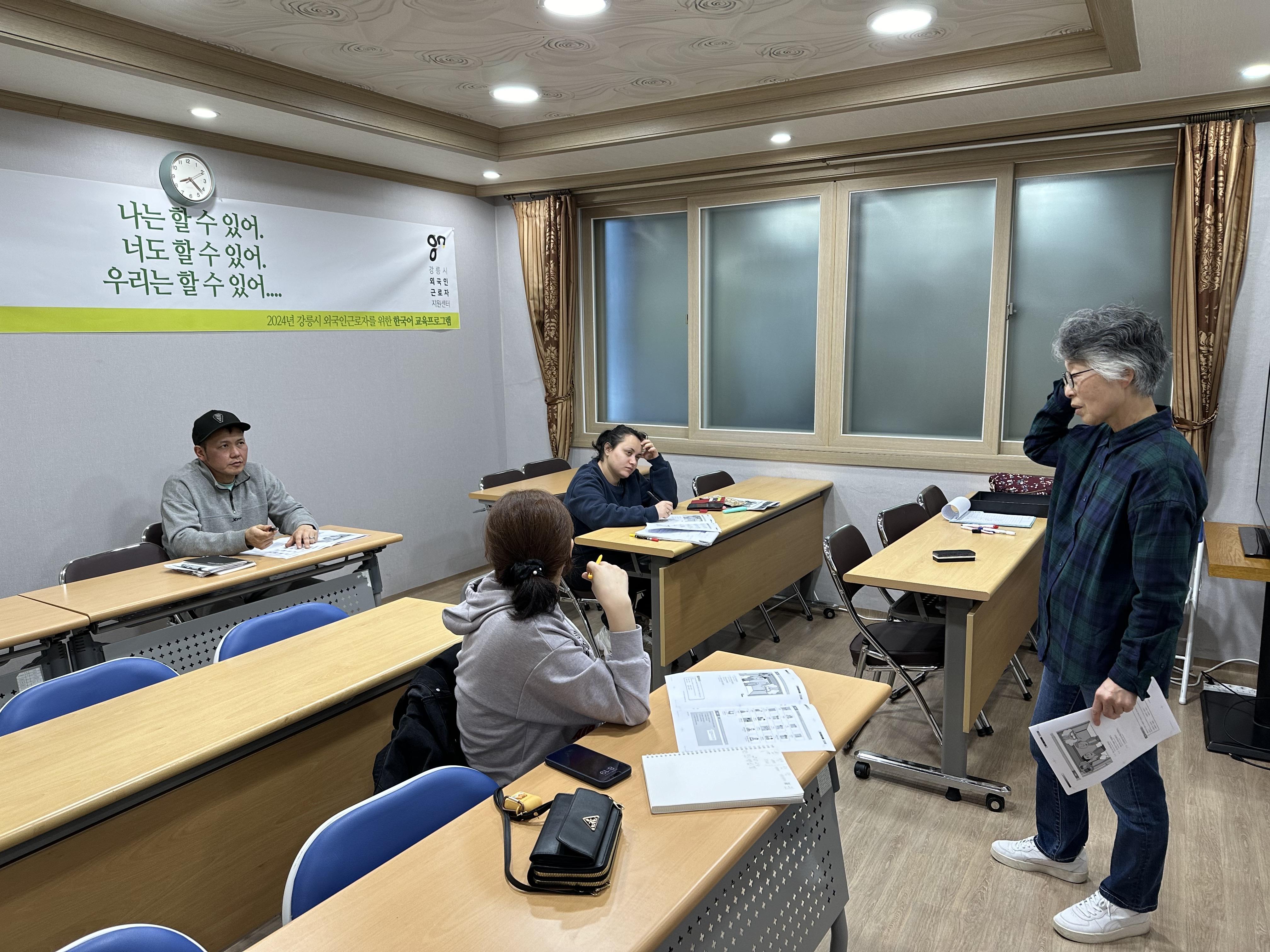 일하는 외국인근로자를 위해 야간에 운영하고 있는 화요일저녁반 수업에 드디어 한 명이 늘었습니다. 한국어도 잘해서 수업에 통역도 해주었다고 합니다. 이번 주 수업은 다들 피곤해 보입니다. 그래도 지치지 않는 강사의 열정으로 분위기가 쳐지지는 않네요. 늘 응원합니다.