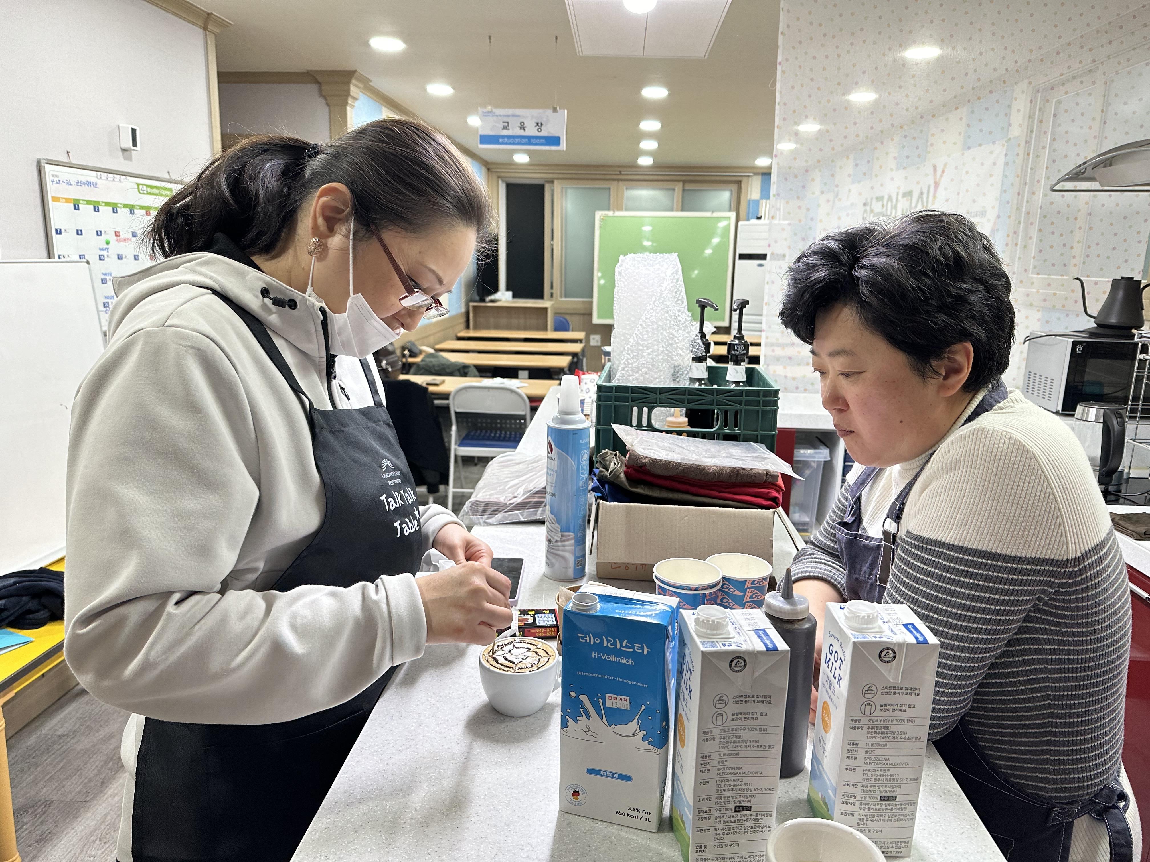 강사가 커피머신을 센터로 보내주었고, 센터에서 부족한 기자재를 보충해 외국인근로자가 조금 더 가까운 곳에서 수업을 하게 되었습니다.