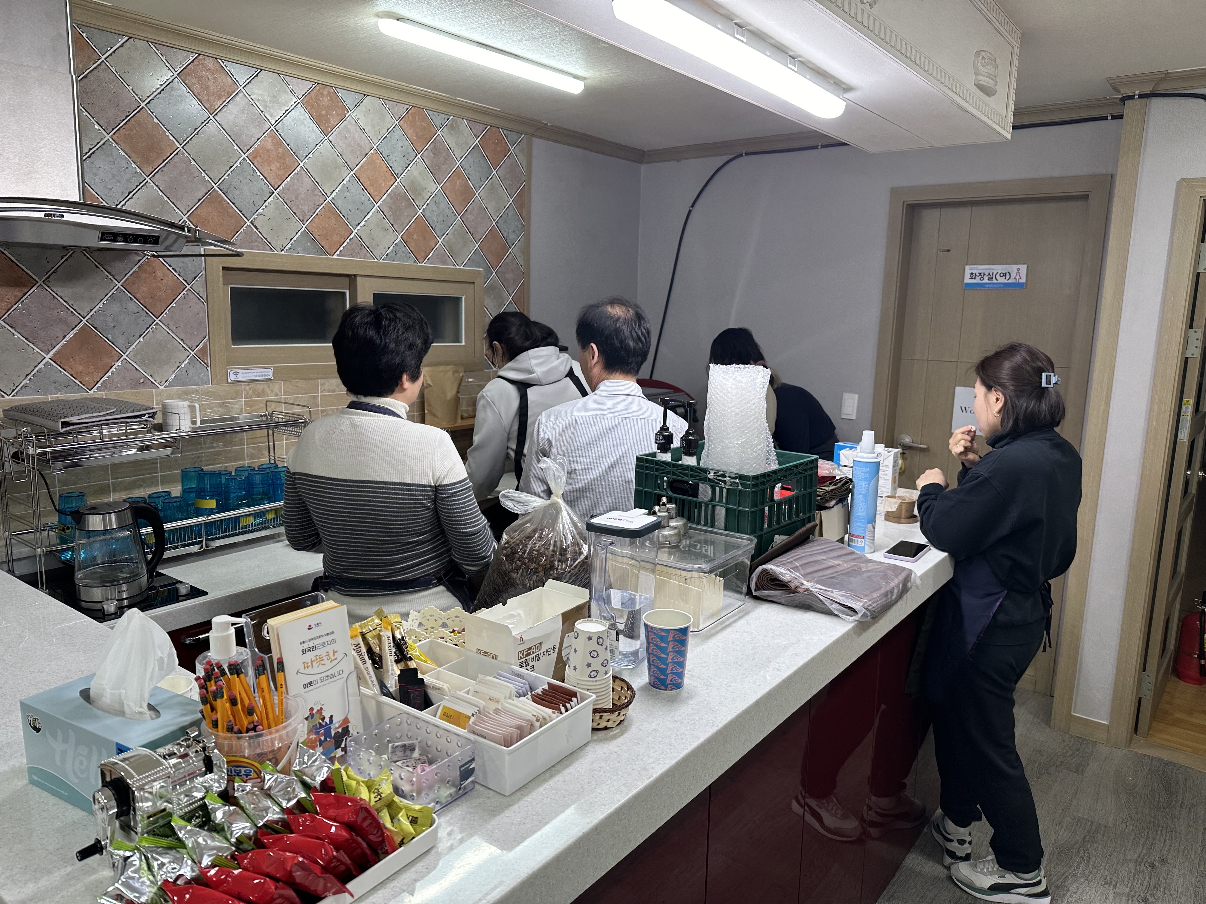 전용공간이 아니다 보니, 좁고~낮고~어둡고 하긴 해도...즐겁기는 마찬가지 입니다. 옆에서 한국어수업을 하고 있는 데도 호탕한 웃음소리가 끊이지 않습니다.