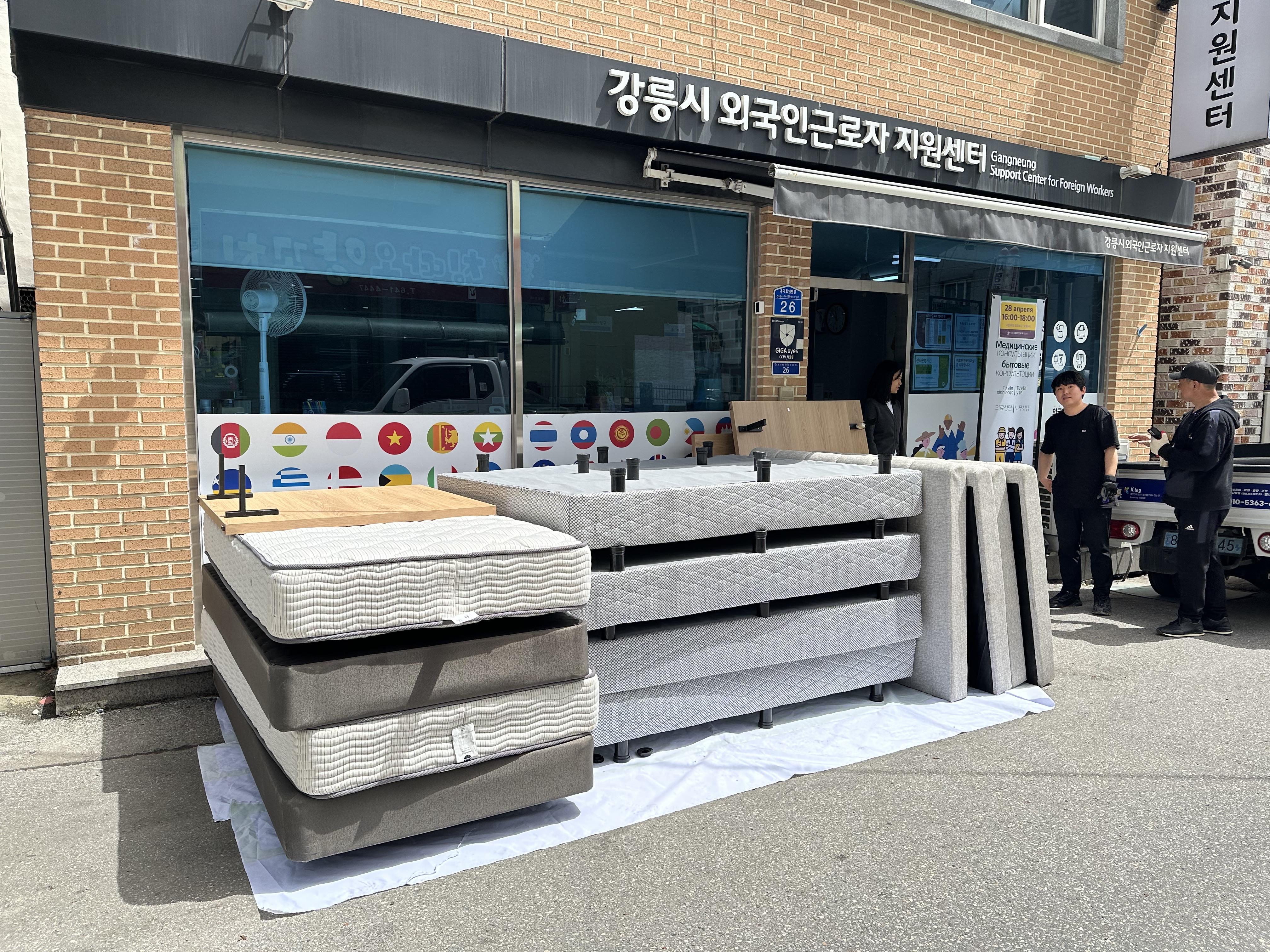 문화비전 21(심훈섭 대표, 강릉시 외국인근로자 지원센터 운영위원)에서 외국인근로자에게 나눠주라며, 중고 침대 12개를 기증했습니다.