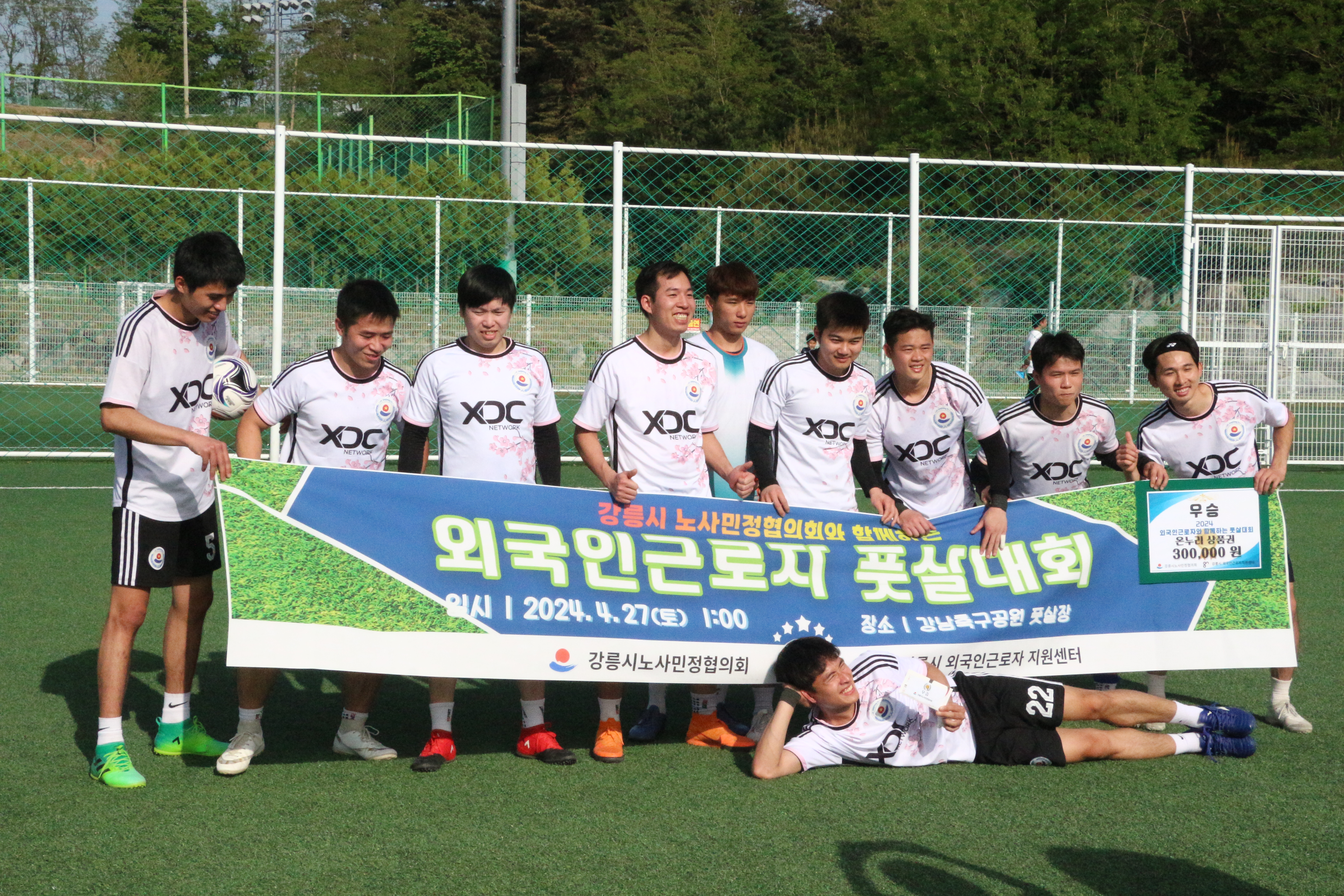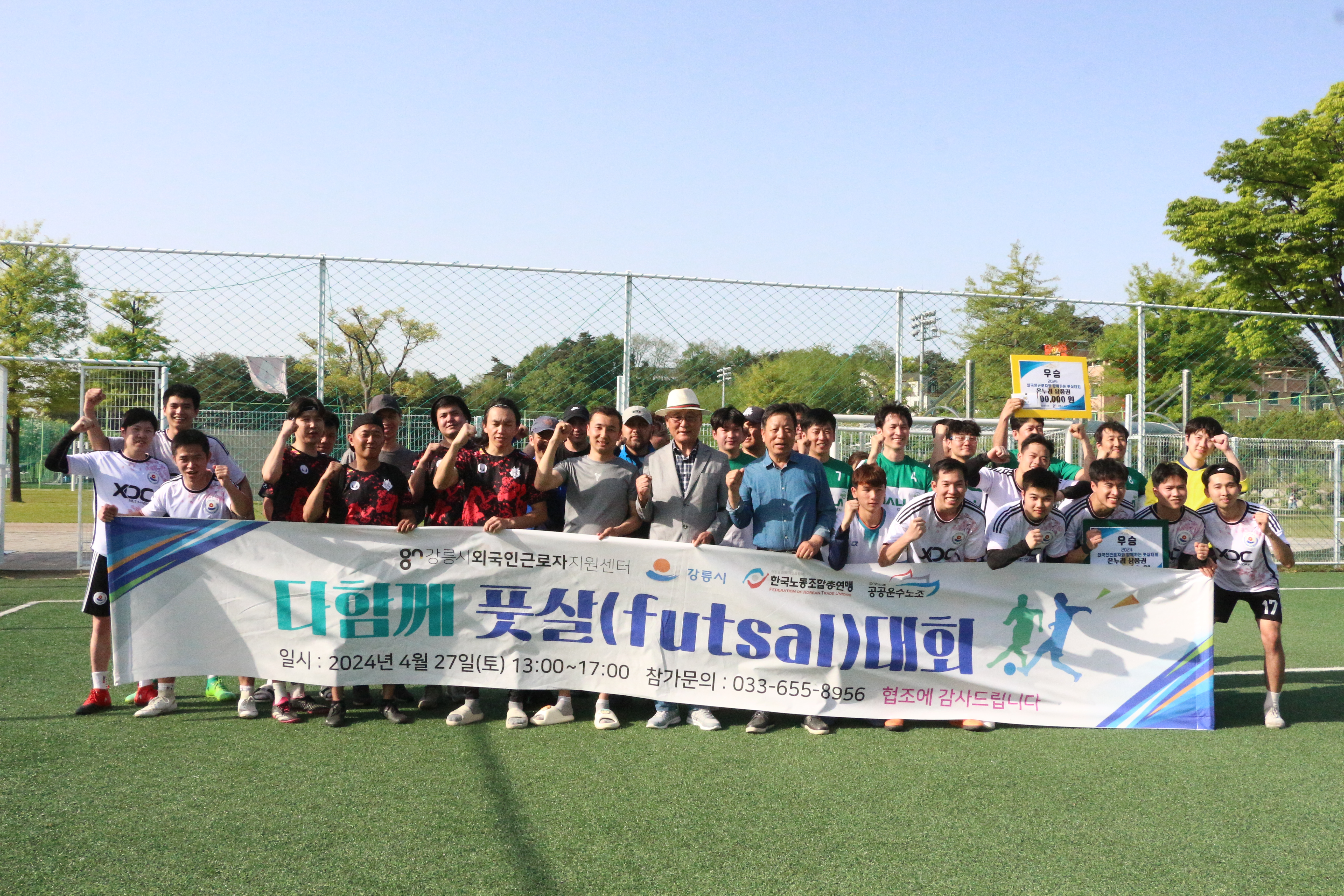 매주 남대천에서 풋살을 즐기는 외국인근로자로 구성된 누리팀과 INTER 등 2팀, 강릉원주대학교 베트남 유학생팀(GNVN), 한라시멘트팀, 공공운수노조 희망연대 팀 이렇게 5팀이 참여했습니다.