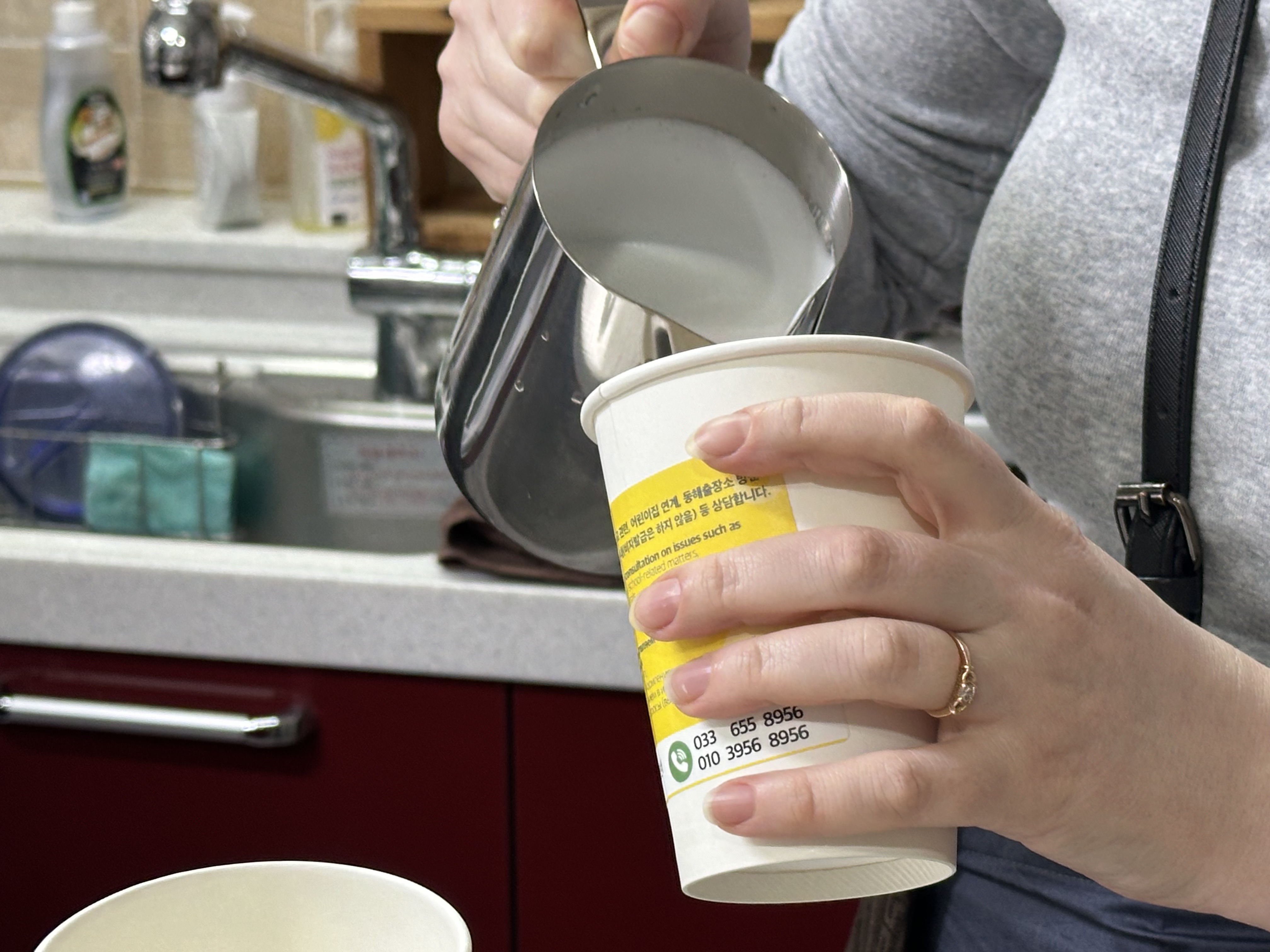 기획할 때 까지만 해도, 날씨가 더워서 아이스라떼를 준비했었습니다. 강사에게 황금비율도 익혀가며 그날 만을 기다려 왔는데요...갑자기 추워진 날씨에 따뜻한 라떼로 바꿔서 대접하기로 했습니다.