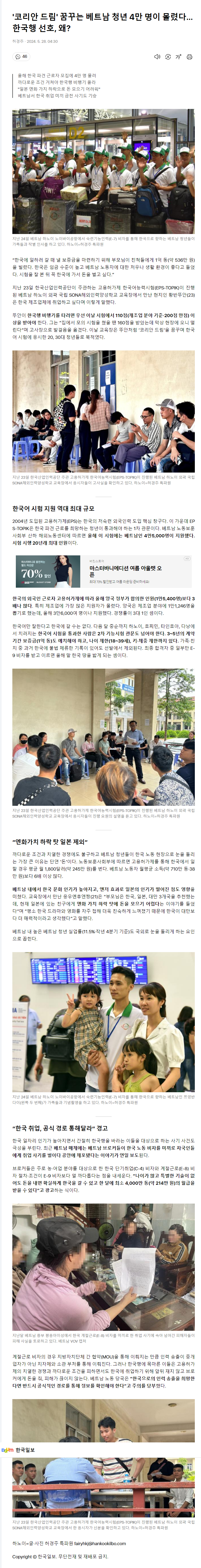'코리안 드림' 꿈꾸는 베트남 청년 4만 명이 몰렸다… 한국행 선호, 왜? (daum.net)