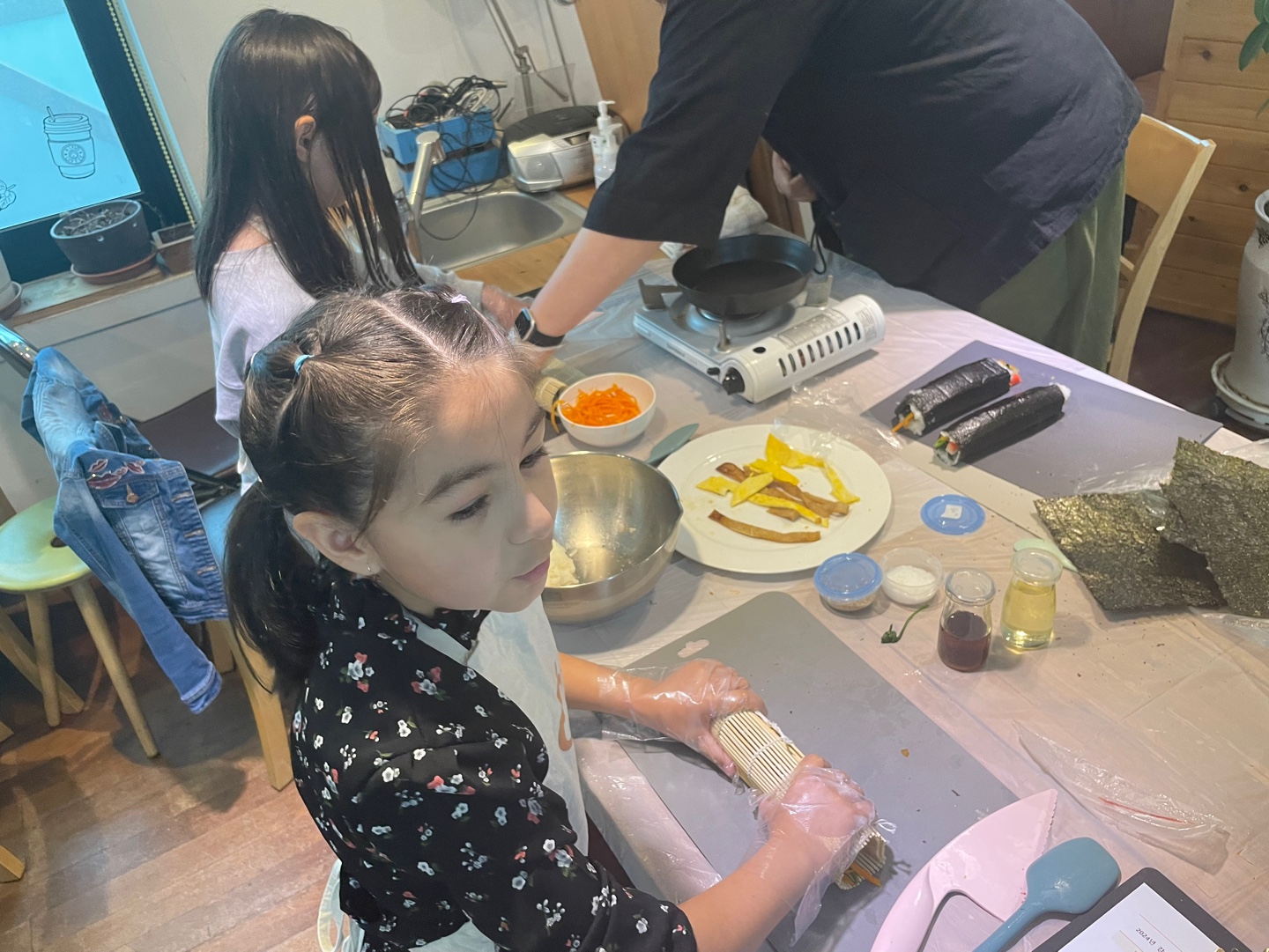 자기가 만든 김밥도 맛있게 시식하고,