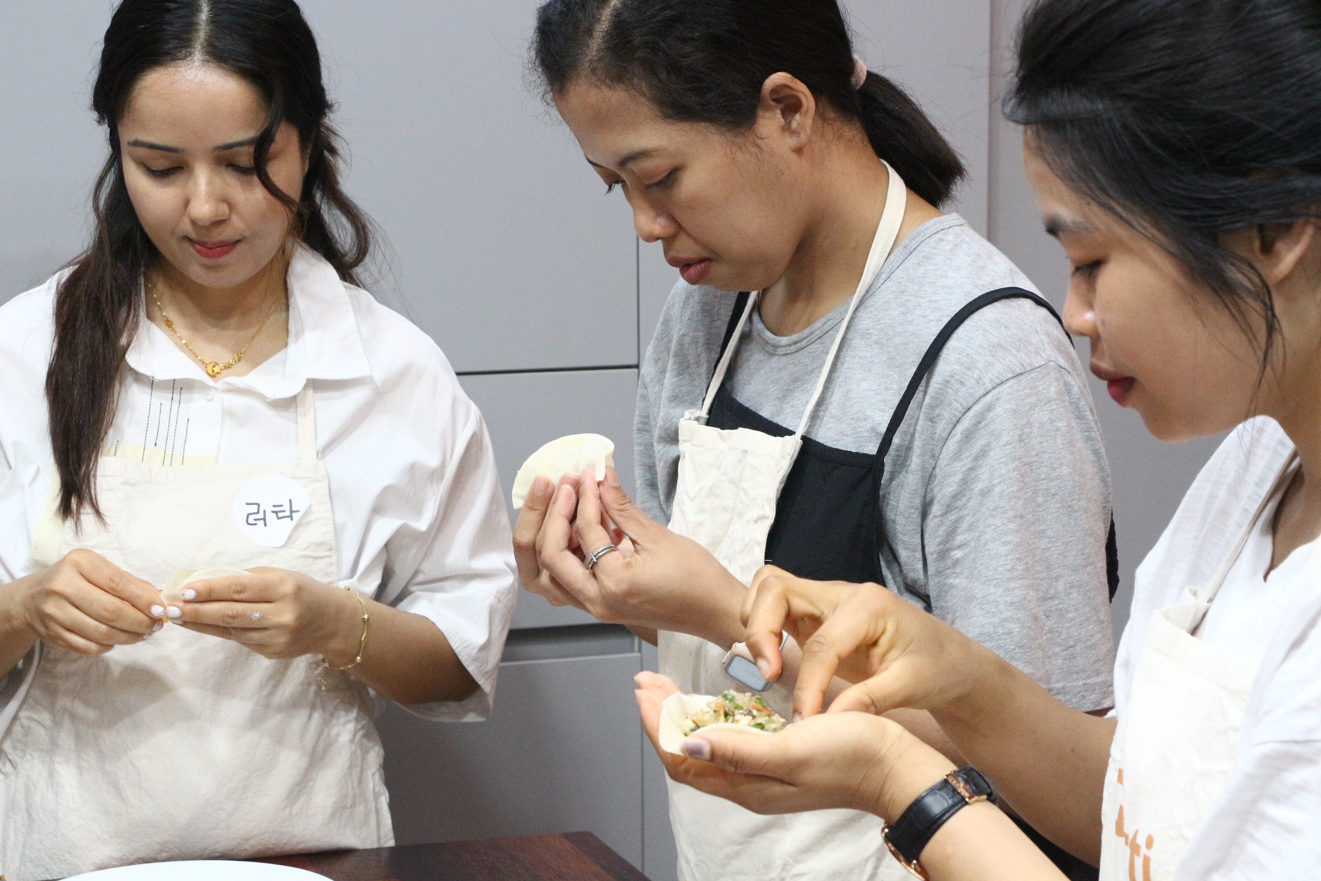 강릉시 외국인근로자의 즐거운 여가활동과 자기 개발을 위해 진행되고 있는 저녁이있는삶 한식교실 네번째 수업을 진행했습니다. 깊은 맛이 나는 3년된 묵은지를 넣은 채식만두를 만들었습니다.
