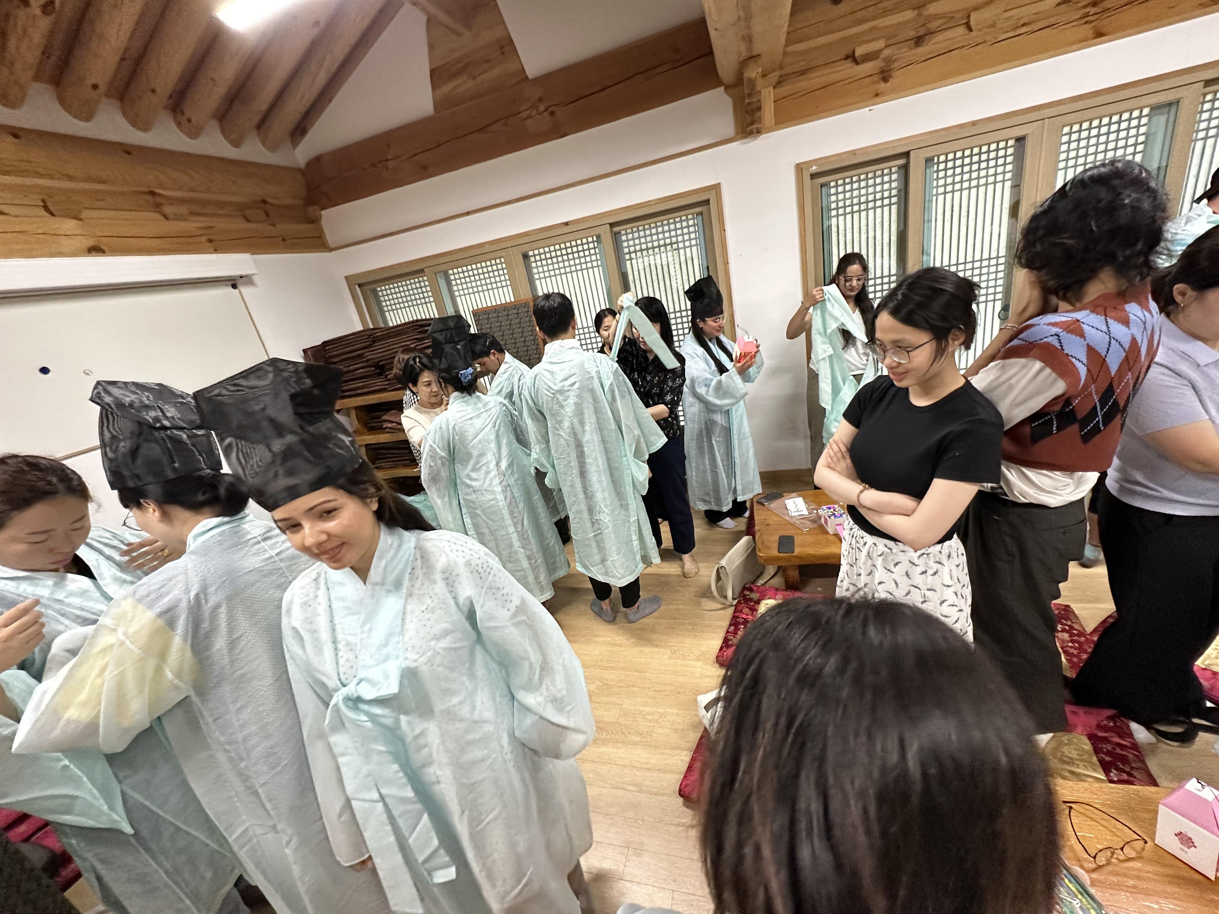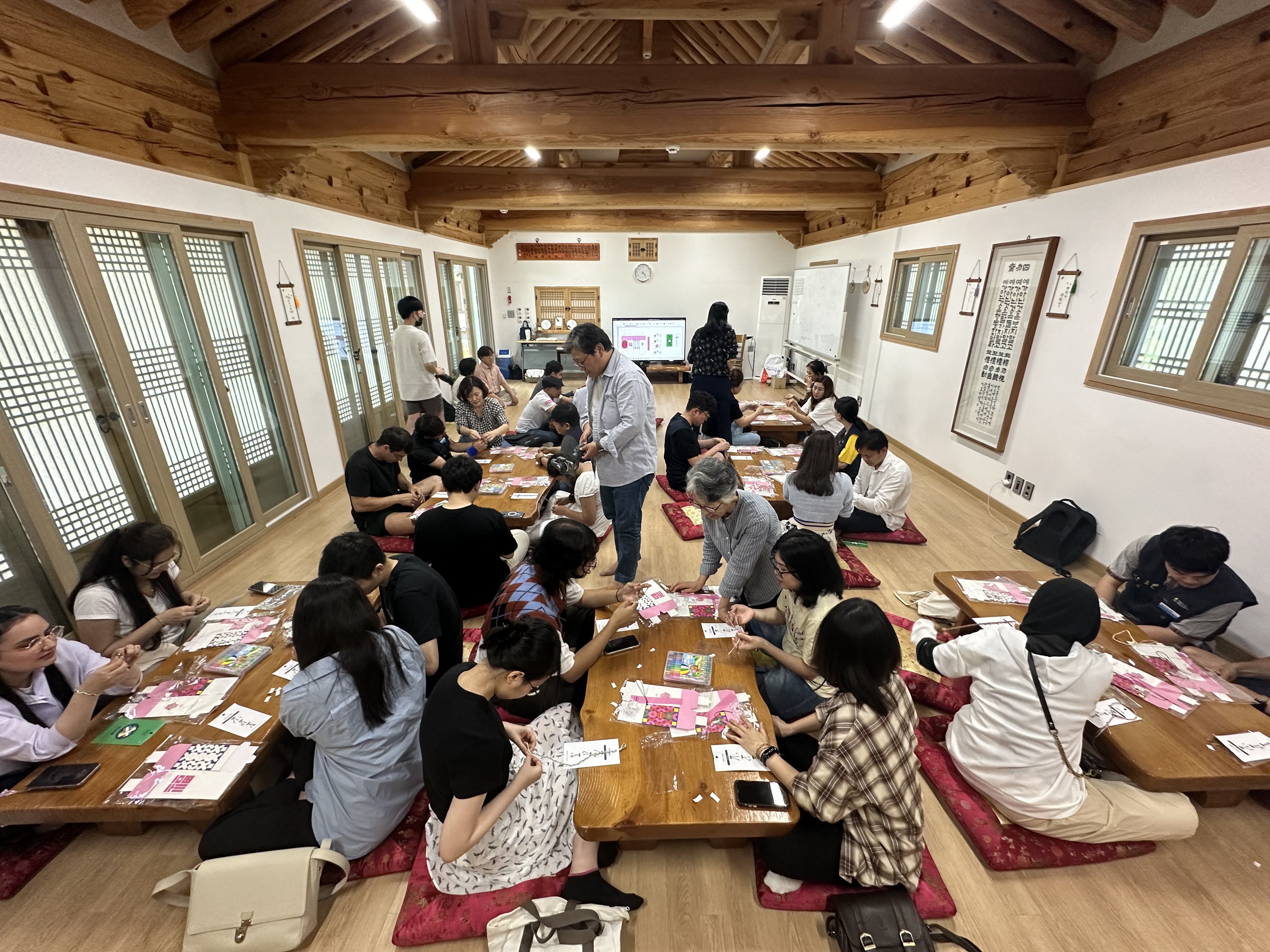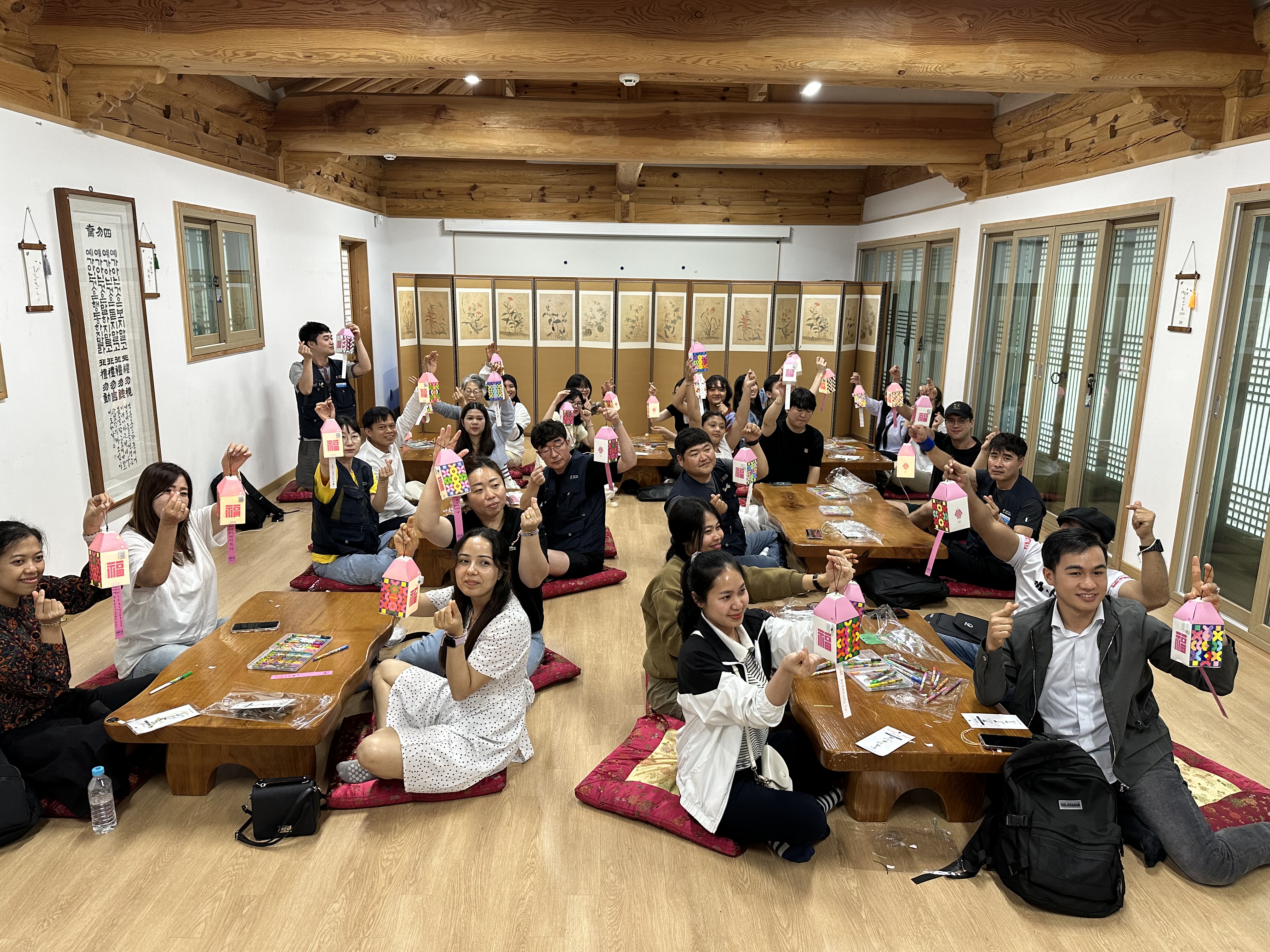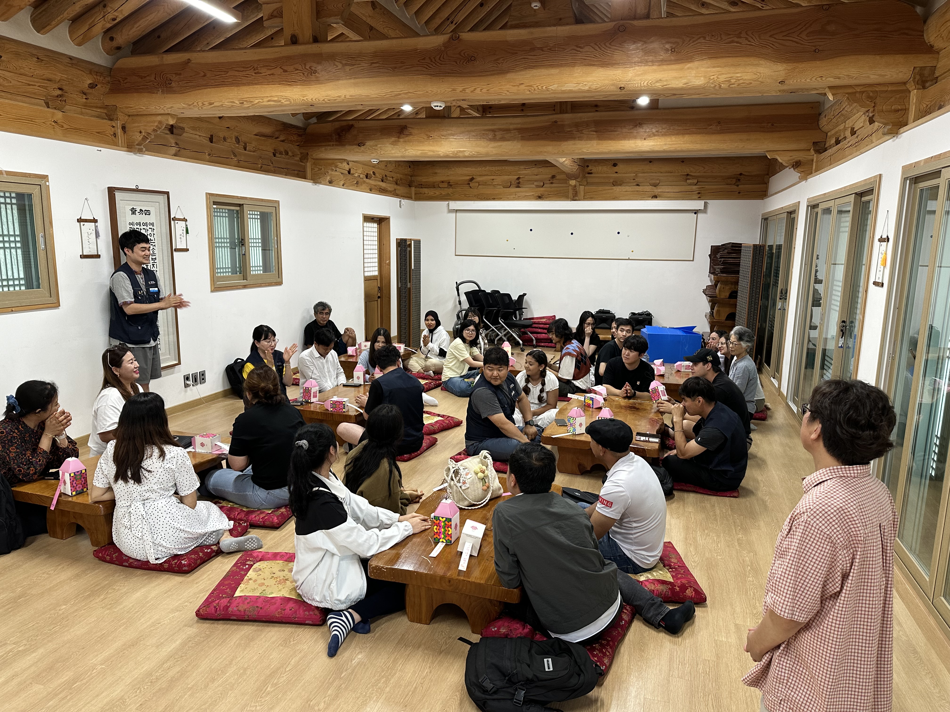 다양한 사업을 추진하고 있는 희망연대본부에서, 강릉시 외국인근로자와 함께 할수 있는 프로그램을 고민해 한옥에서 한국전통에 관한 것을 해 보는 것이 어떨까 했습니다. 보통은 축구나 체육대회를 많이 생각했을 텐데요 이렇게 책상에 마주 앉아 얼굴을 익히는 프로그램도 신선했습니다.