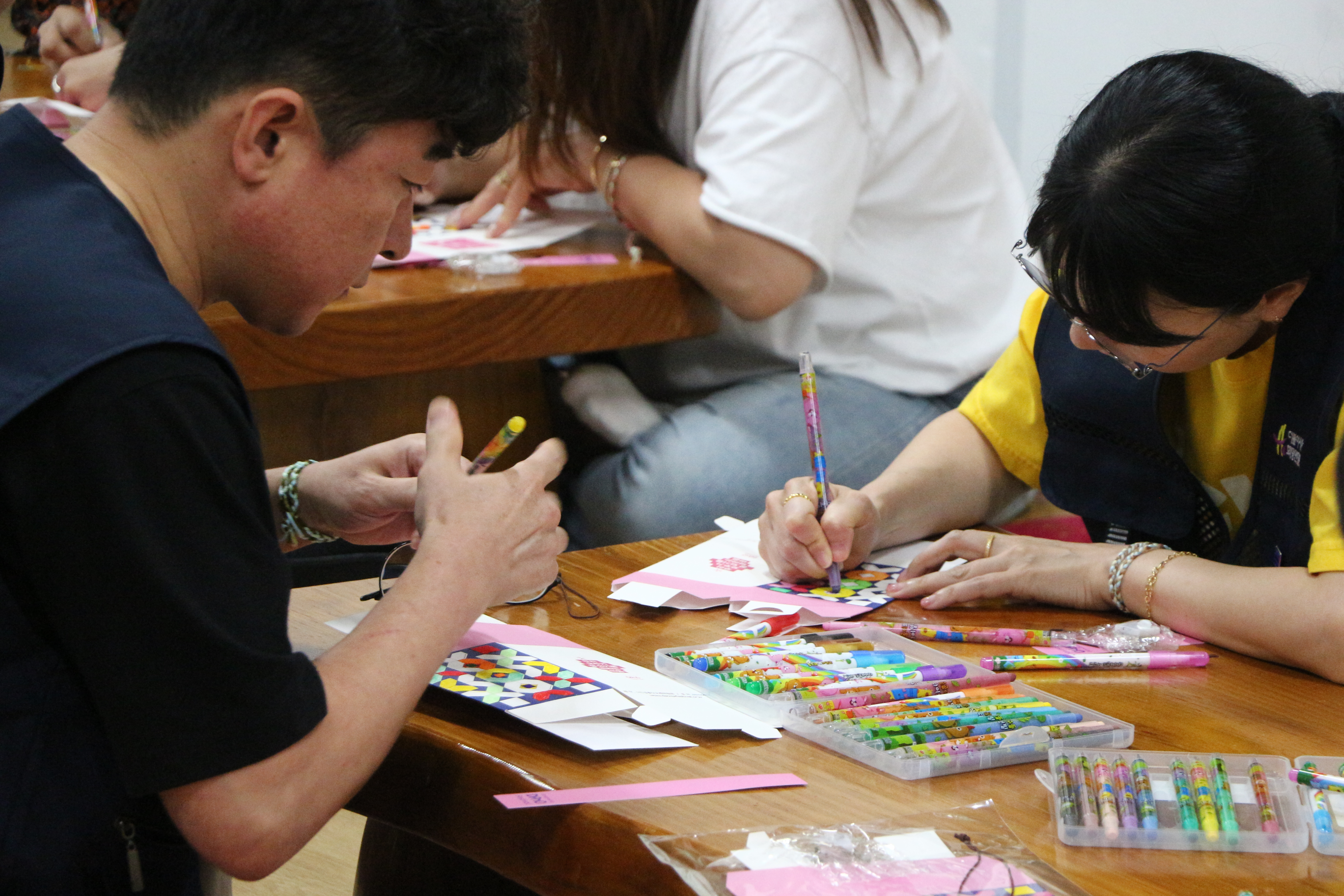 초등학교 때나 해 봤을 법한 색칠 공부였습니다. 이것을 하면서도 서로 색깔도 추천해 주고...보기 좋았습니다. 등을 접는 것이 좀 어려웠습니다. 이것은 먼저한 동지의 도움으로 약속한 시간내 모두 마무리 할 수 있었습니다.