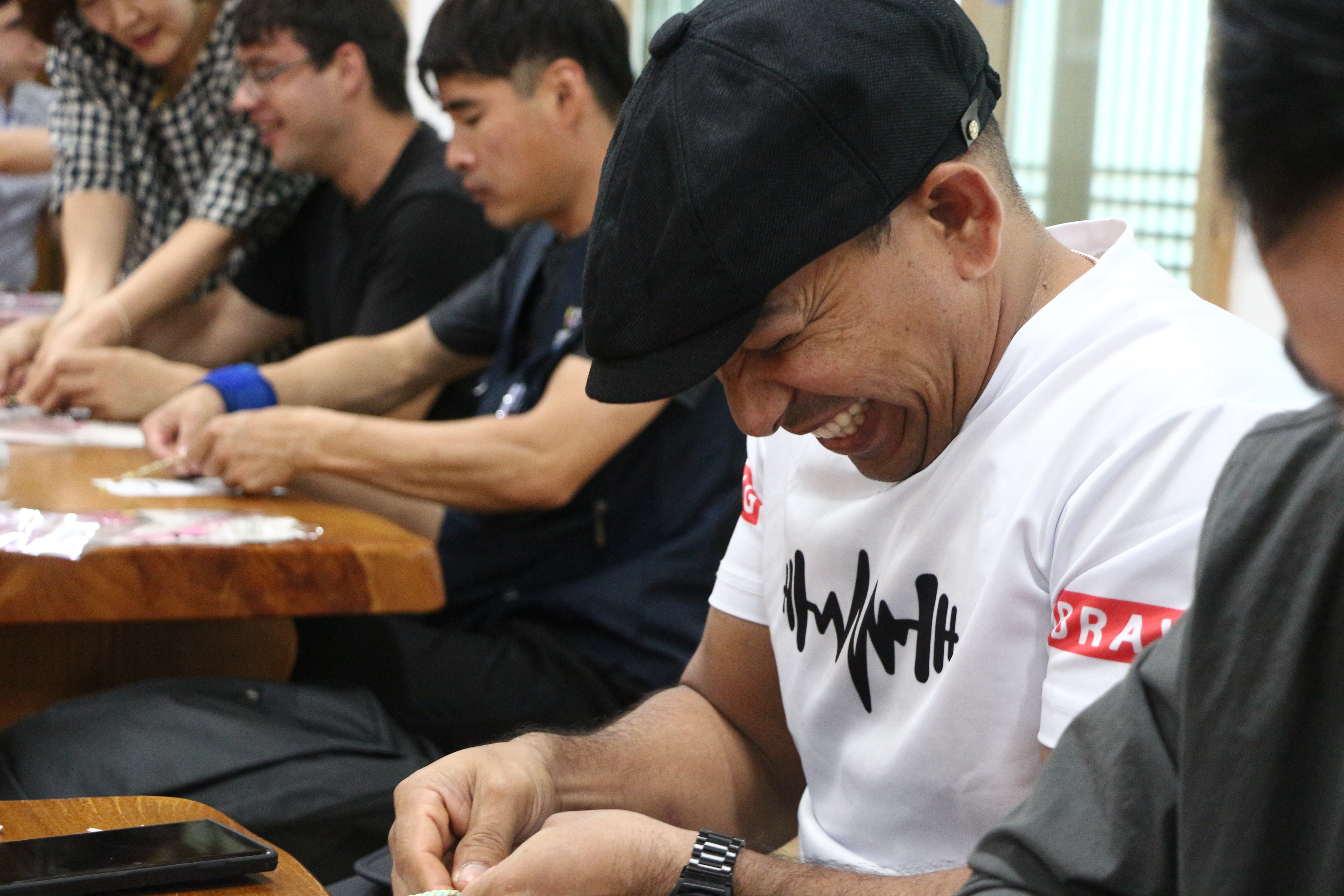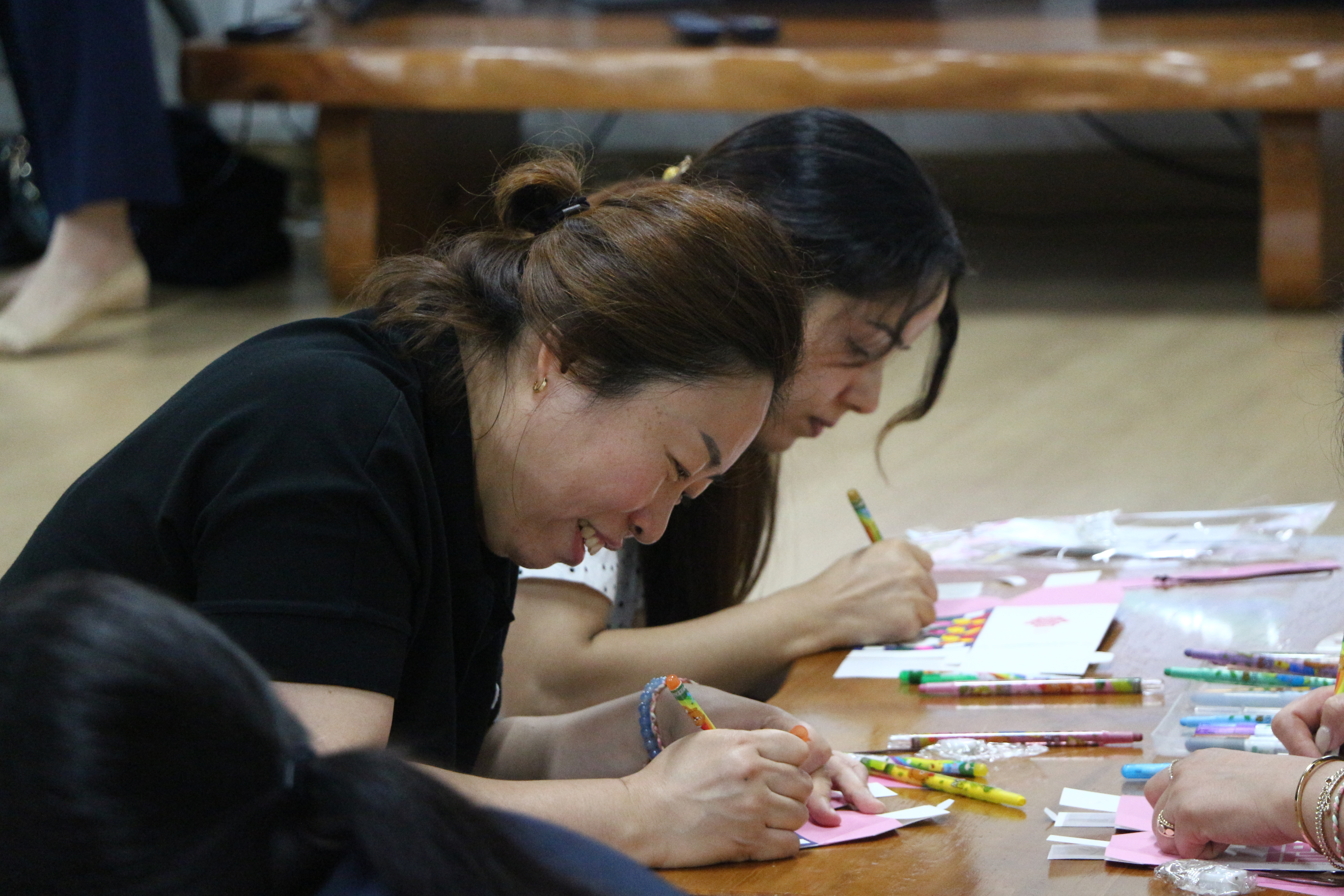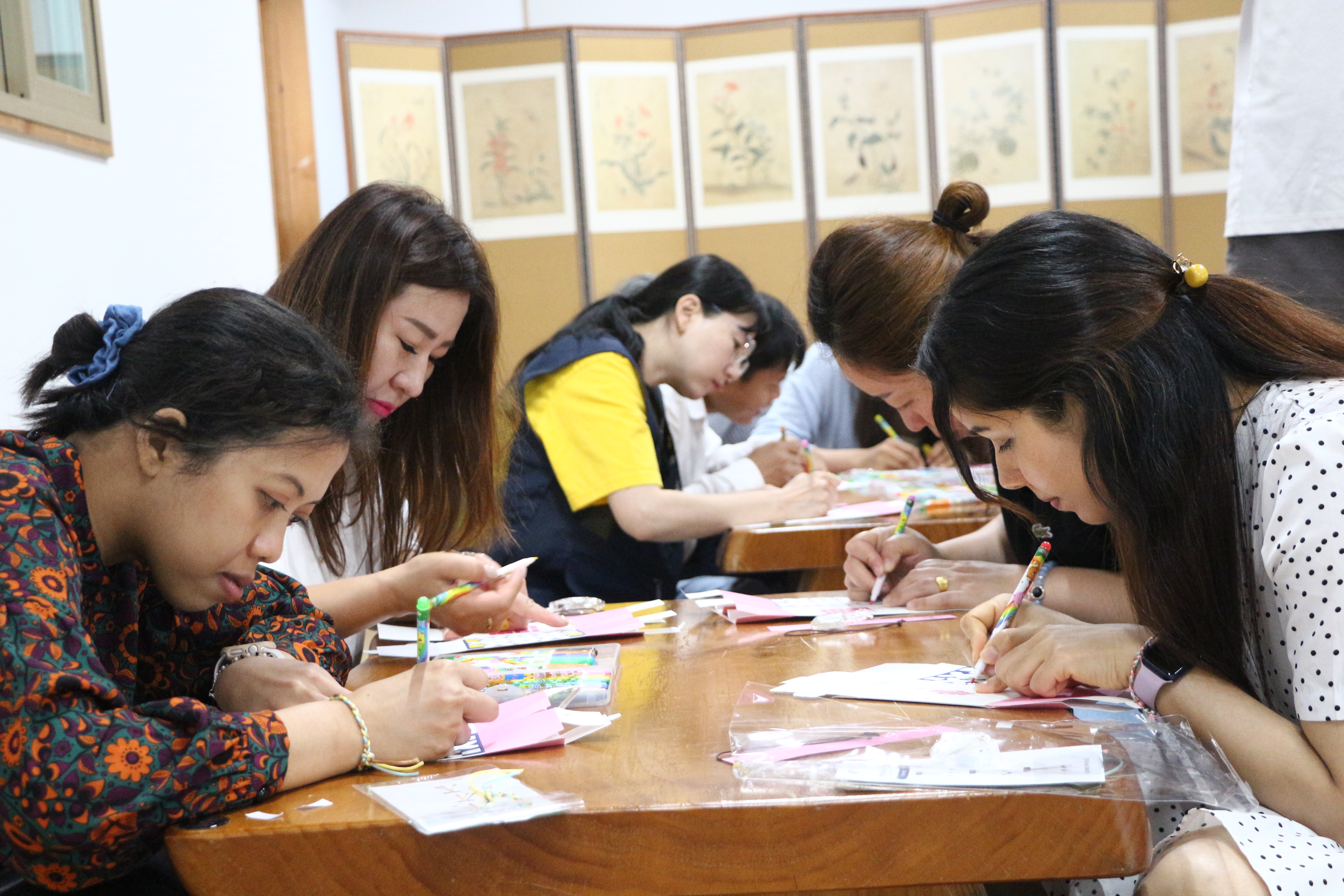 다양한 사업을 추진하고 있는 희망연대본부에서, 강릉시 외국인근로자와 함께 할수 있는 프로그램을 고민해 한옥에서 한국전통에 관한 것을 해 보는 것이 어떨까 했습니다. 보통은 축구나 체육대회를 많이 생각했을 텐데요 이렇게 책상에 마주 앉아 얼굴을 익히는 프로그램도 신선했습니다.