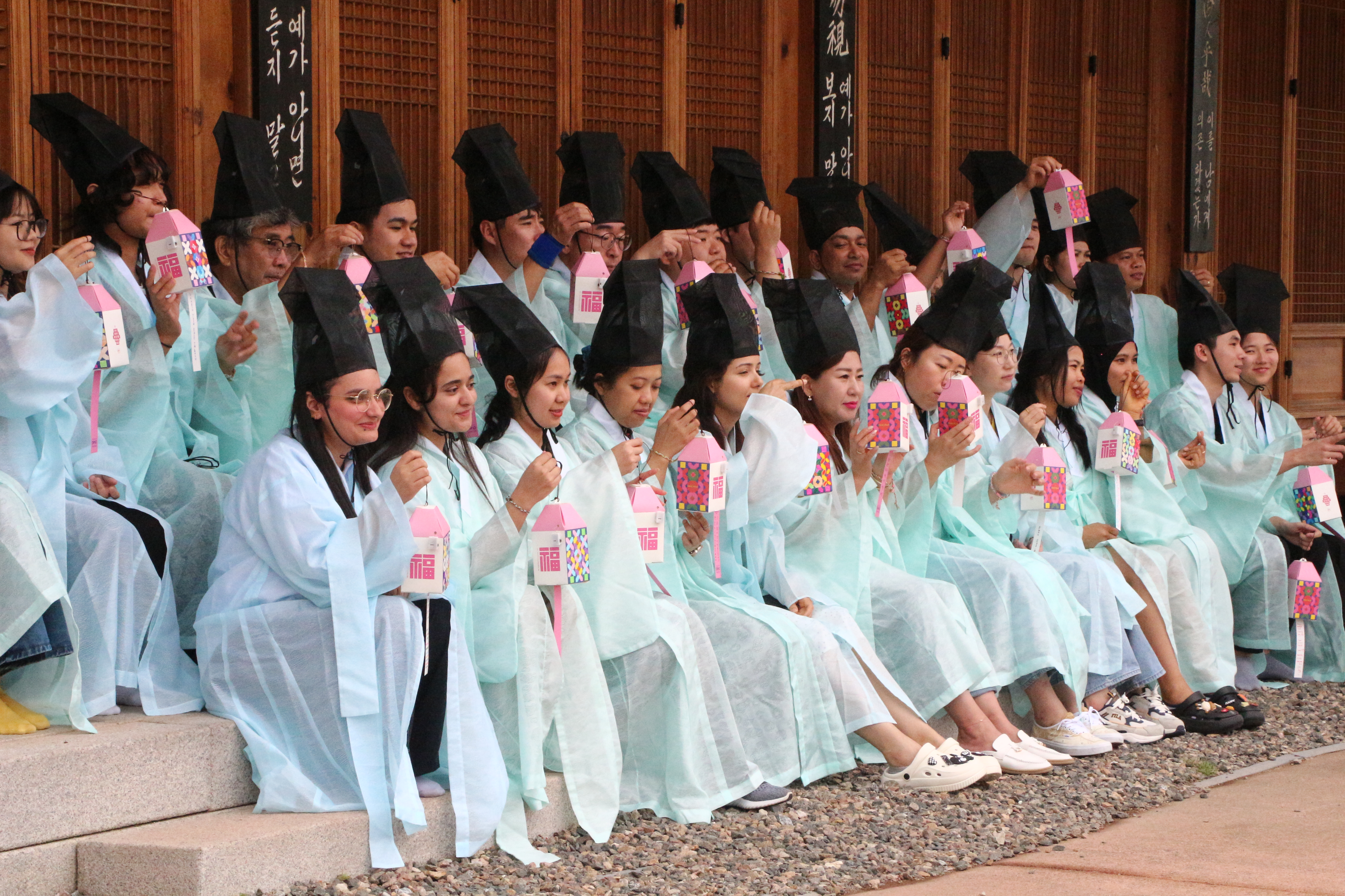 손목에 장명고를 차고, 단오등을 들고 도포와 유건을 쓰고....기념사진을 찍기로 했습니다.