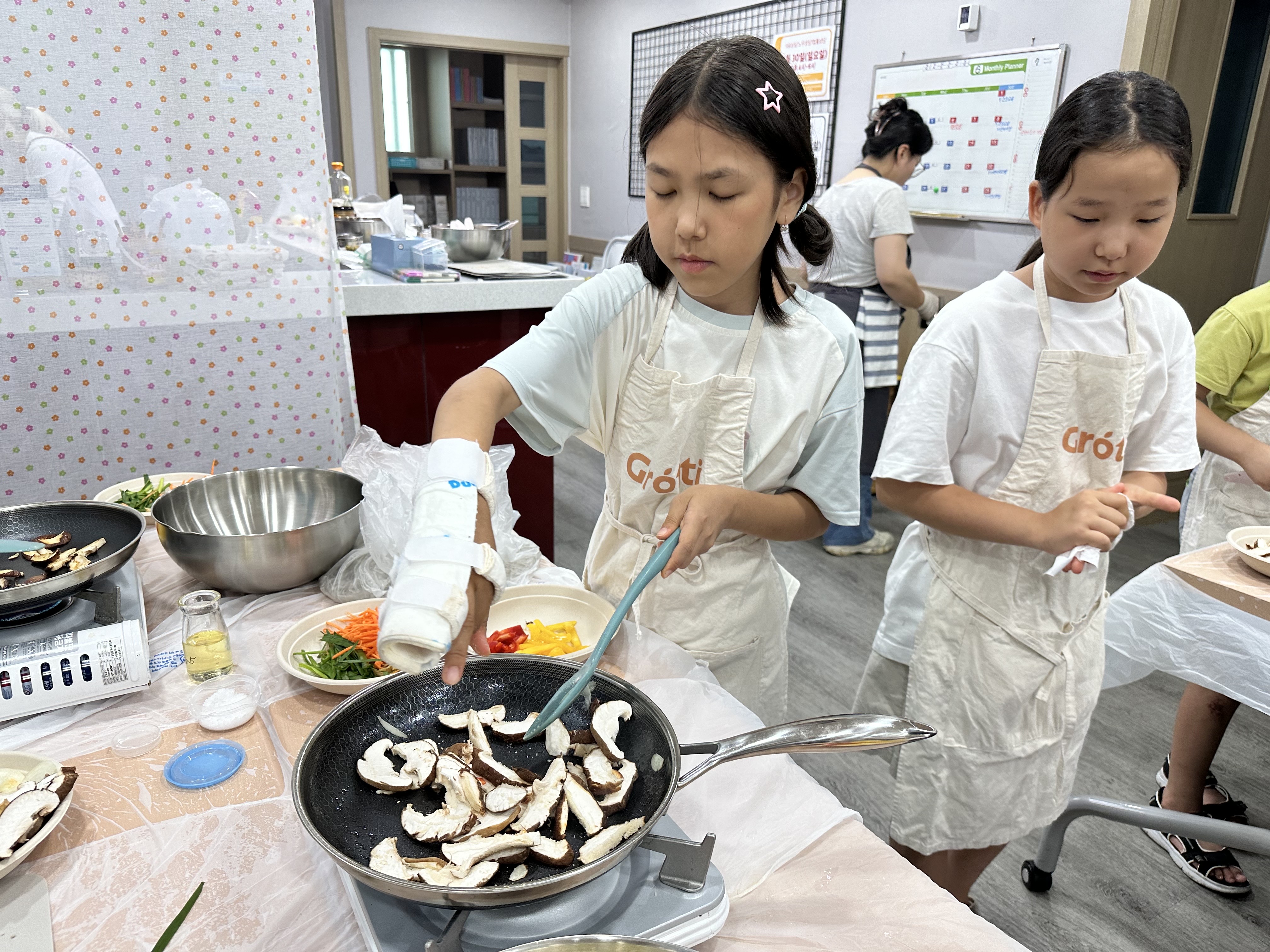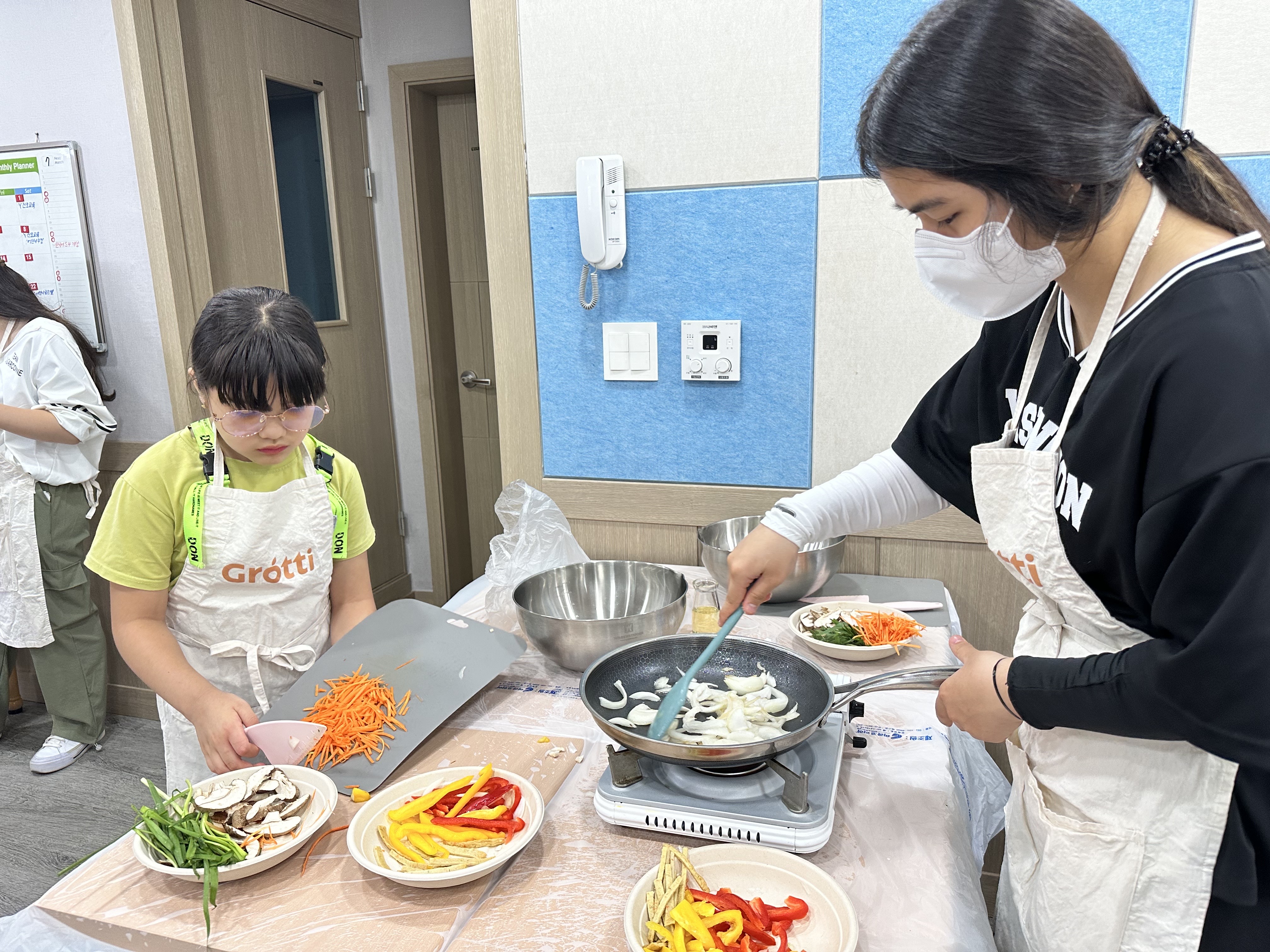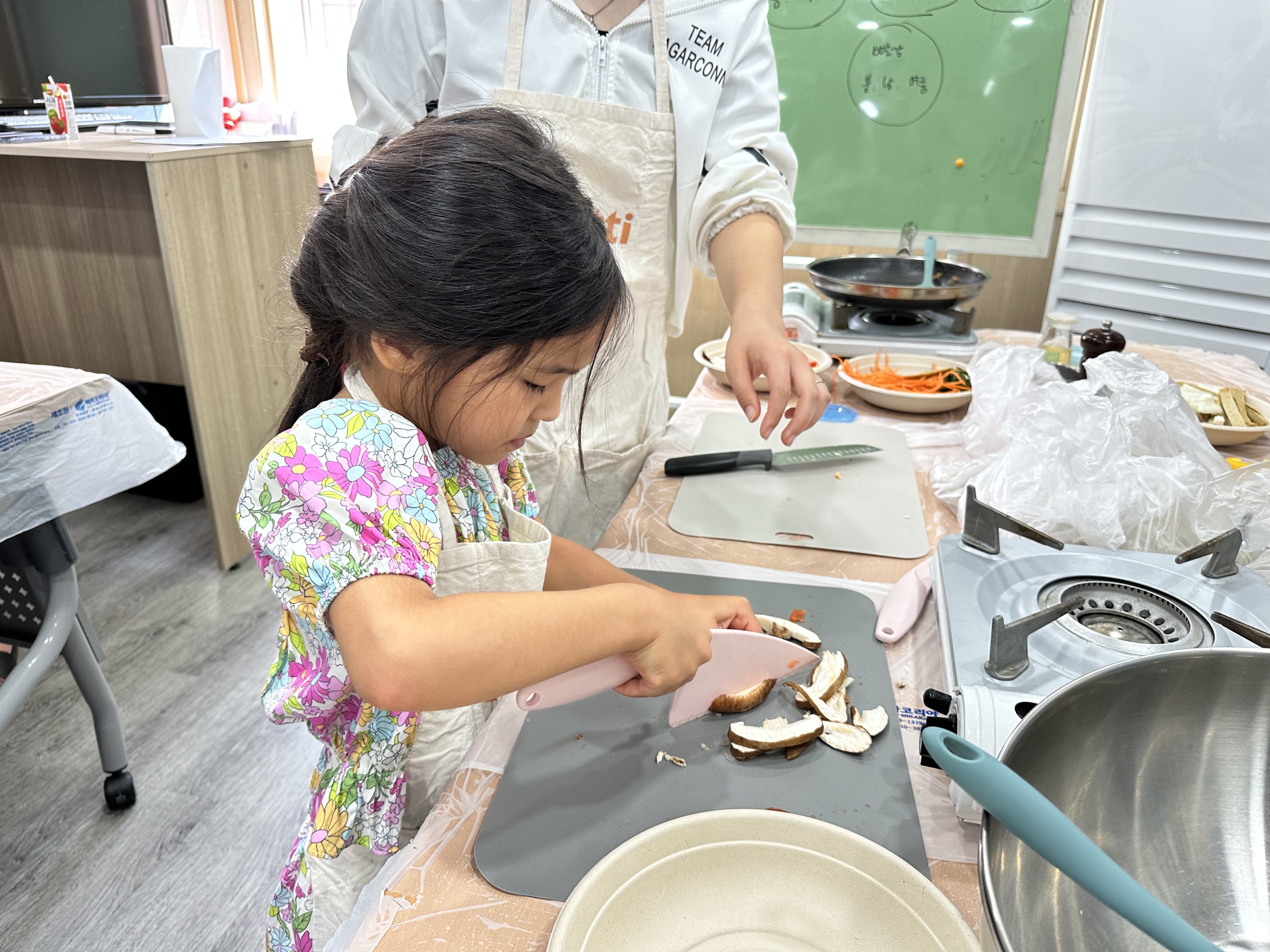 매일 한국어를 공부하던 교육장이 금새 요리공간으로 만들어졌습니다.