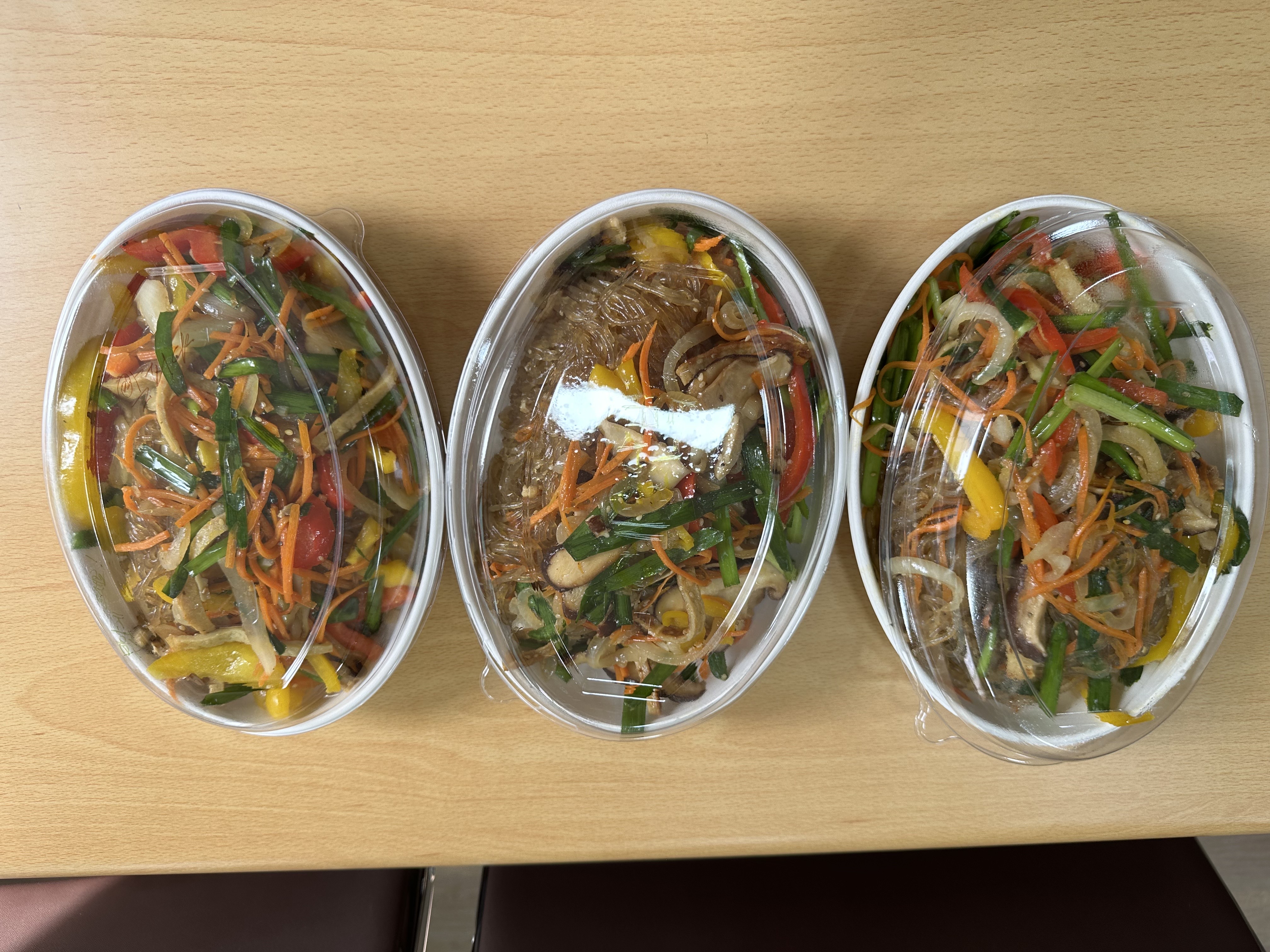 완성된 잡채들이 먹음직스러워 집으로 가져가기 전에 다들 맛보고 이야기 하느라 정신이 없습니다.