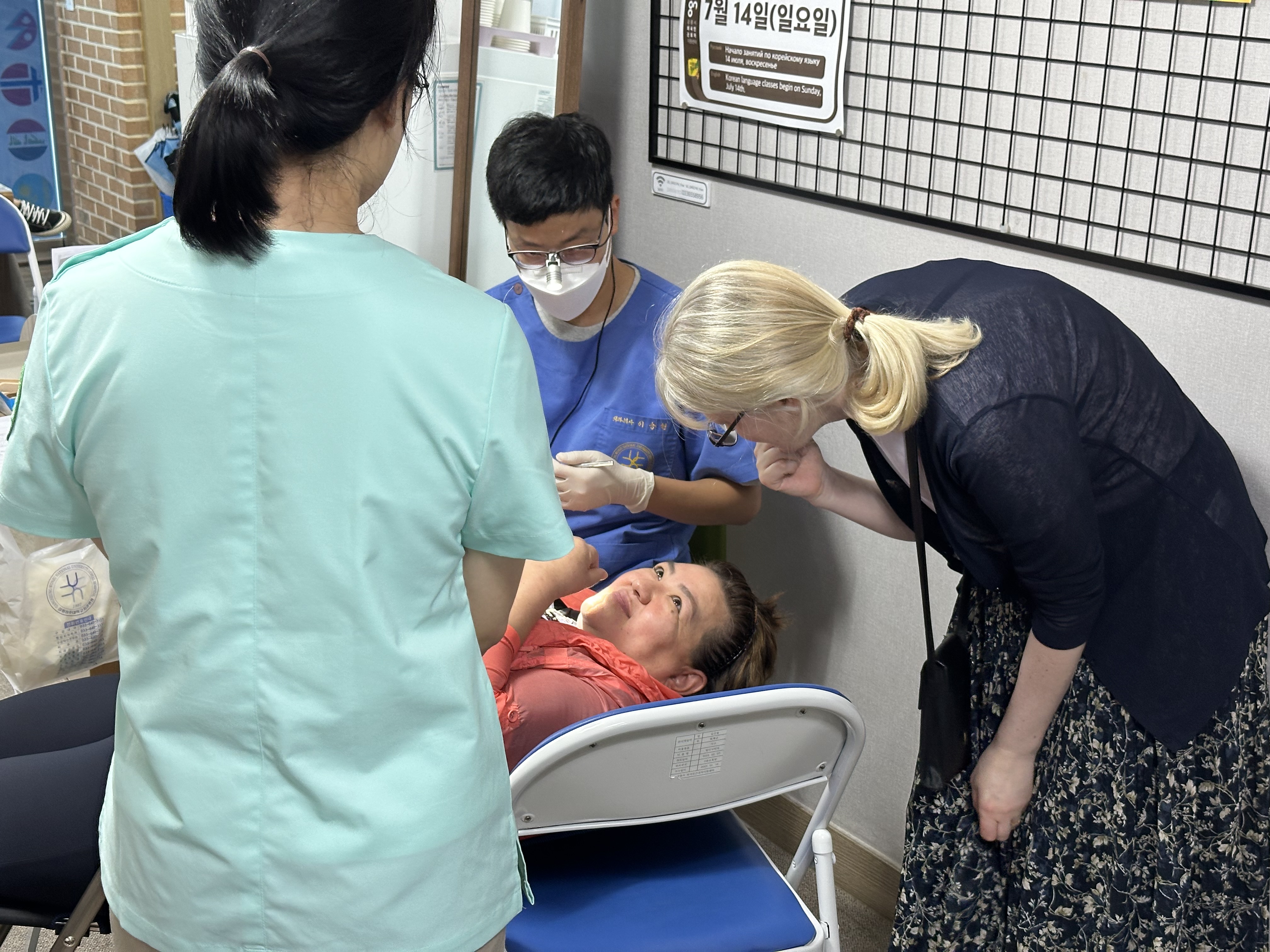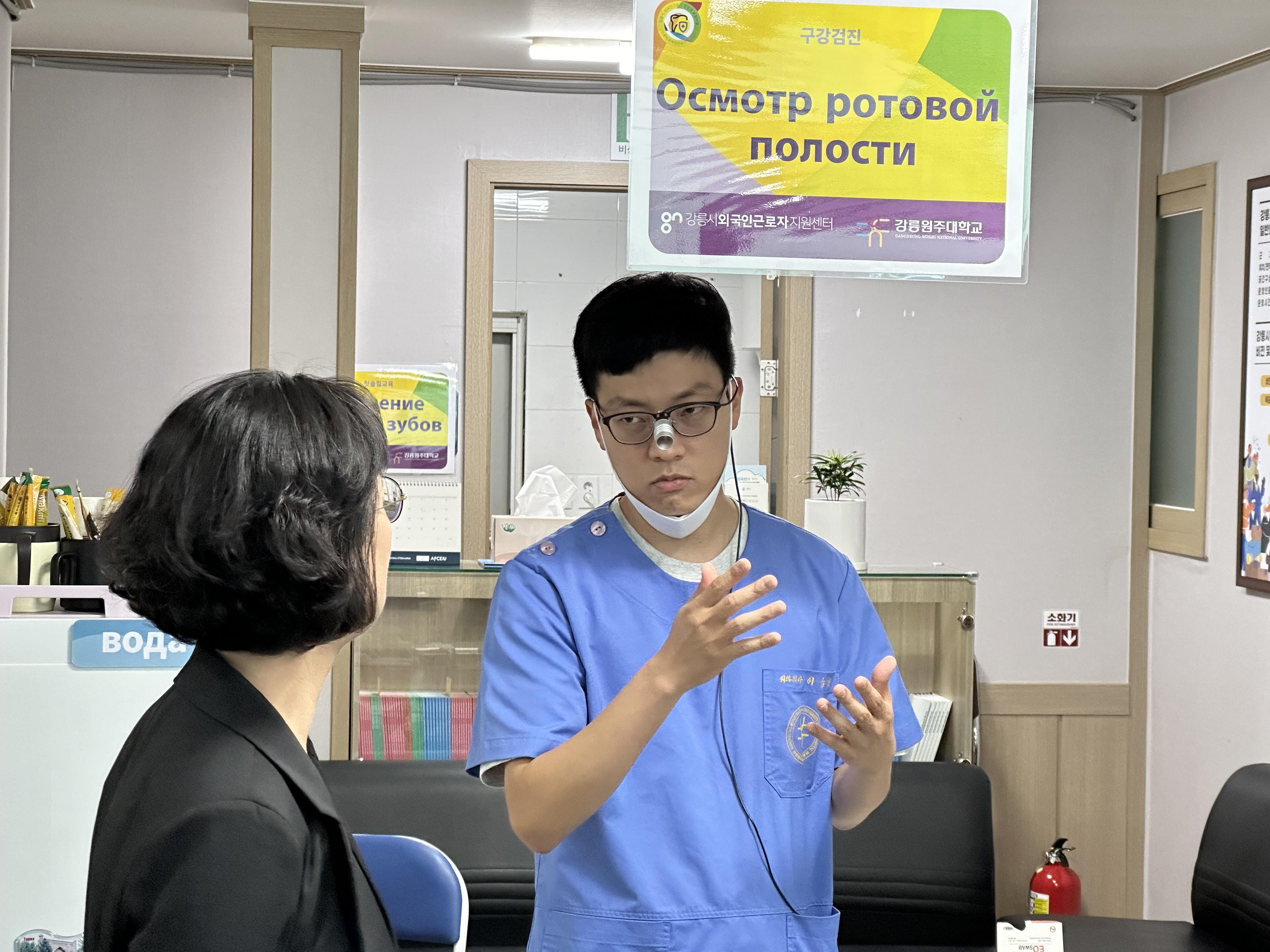 문진표 작성에 비해 구강검진은 기다리는 외국인근로자가 많았습니다. 평소 불편했던 점을 말을 하면 치과의사가 해당 부분을 조금 더 자세히 검진했습니다. 통역사가 검진 내용을 전달해 주고 바로 칫솔질 교육을 받았습니다.