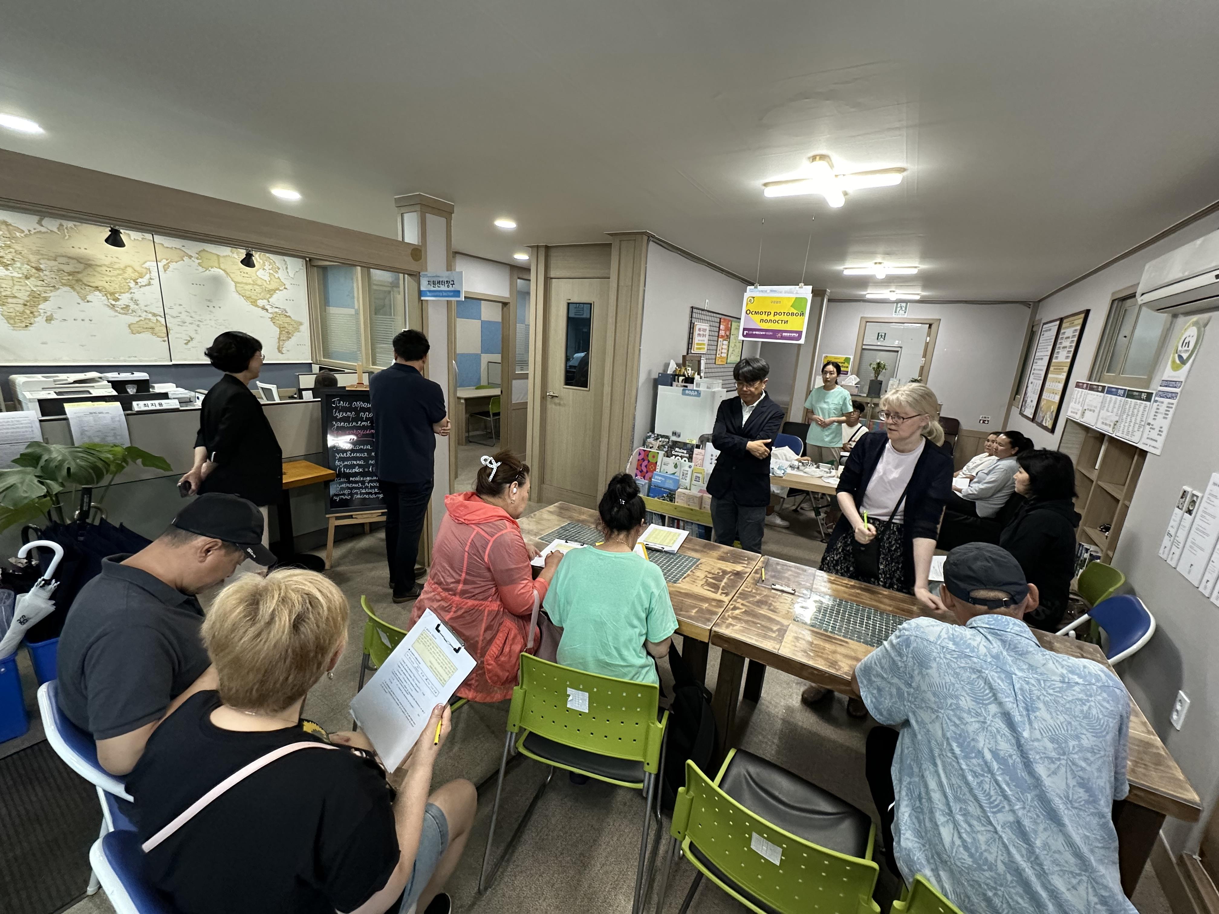 약속한 2시가 되자 예약한 구강검진 신청자들이 센터에 왔습니다.