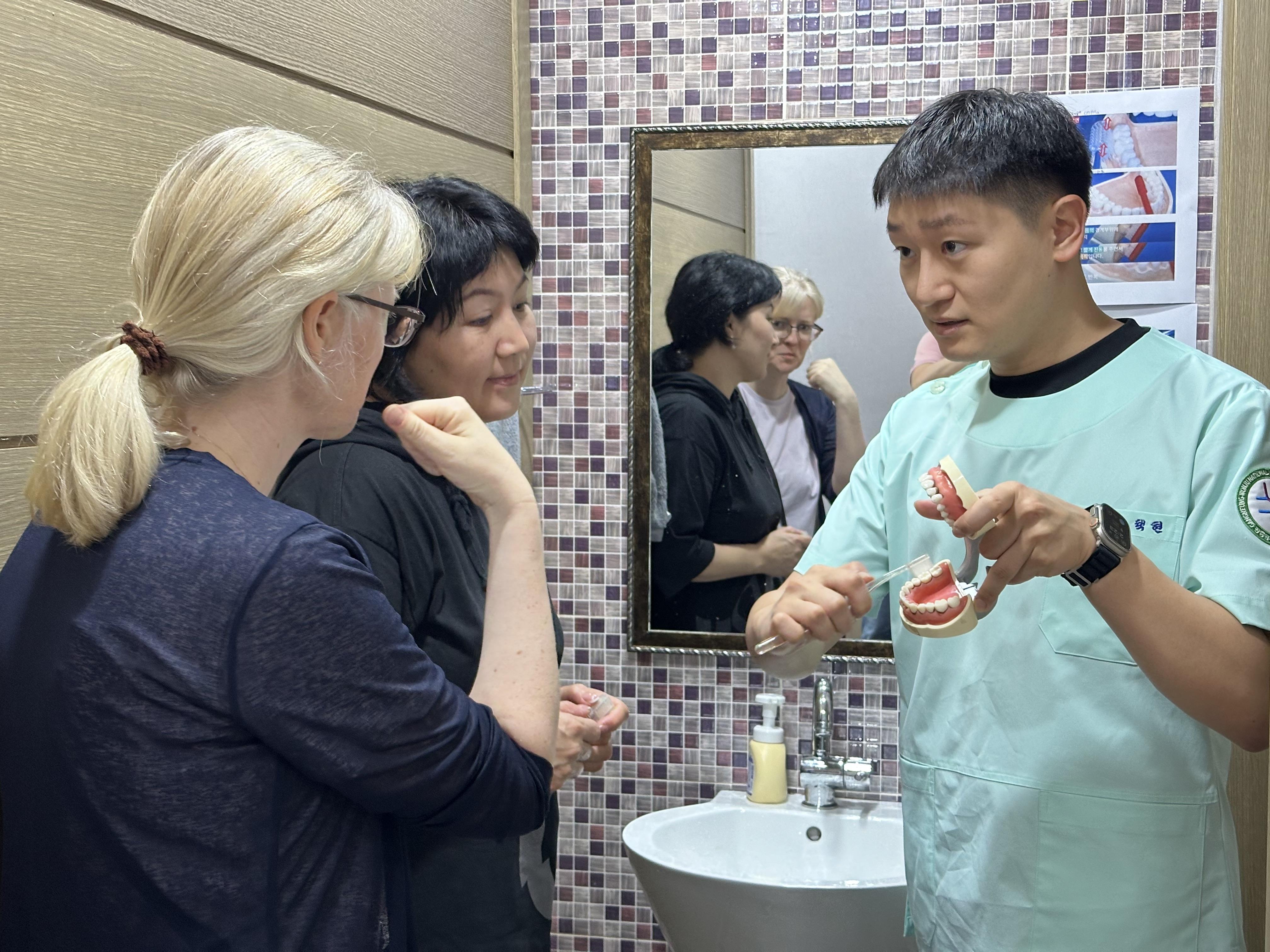 교육을 하면 실습을 해봐야 겠죠? 세면대에서 배운 칫솔질을 해 보았습니다.
