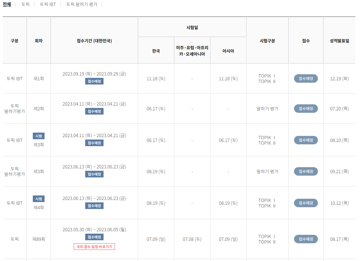 교육부 국립국제교류원에서 시행하고 있는 한국어능력시험(TOPIK) 2023년 상반기 안내입니다.