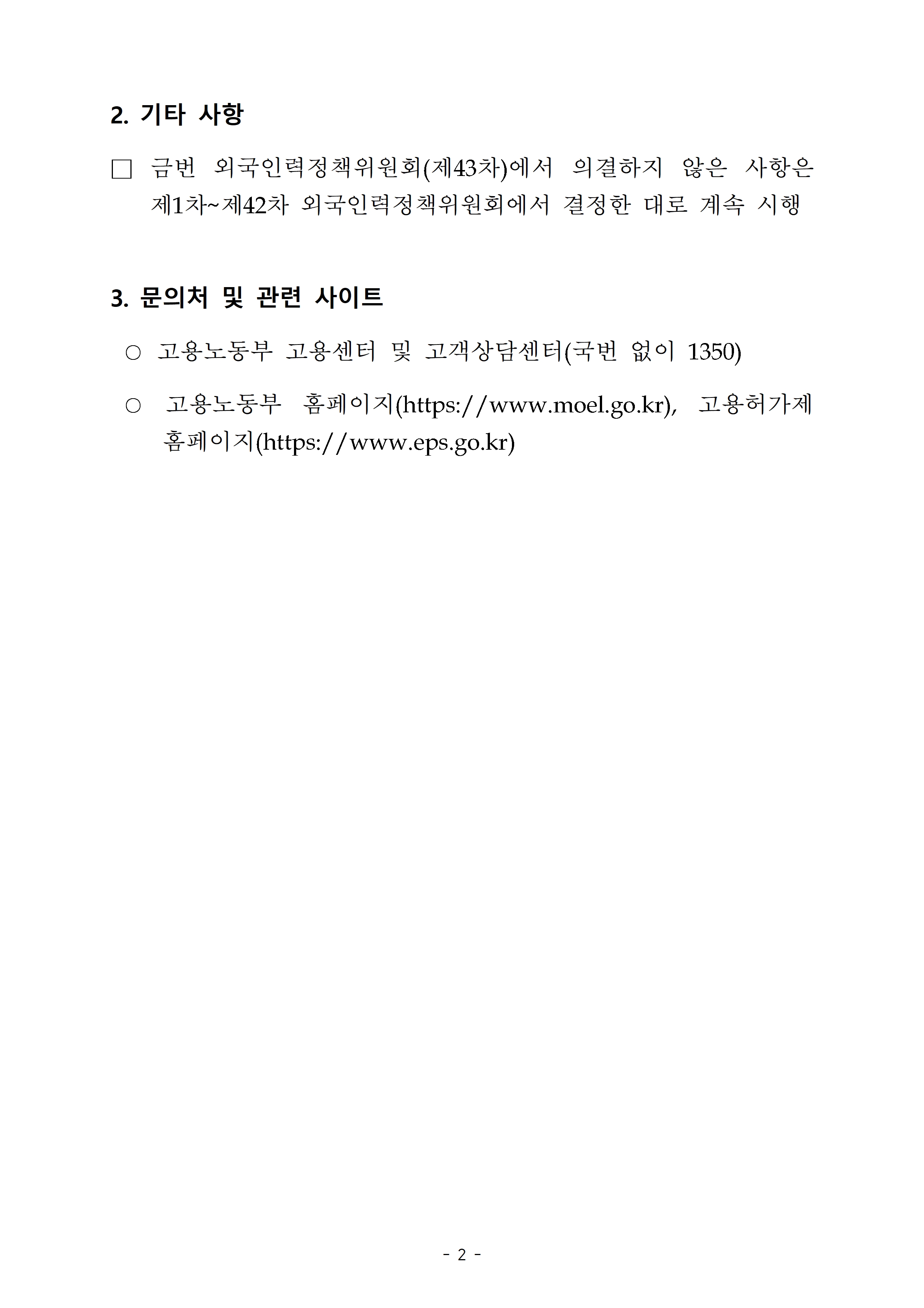 고용노동부의 외국인책위원회 공고사항을 알립니다.