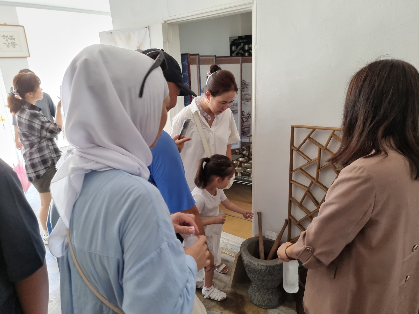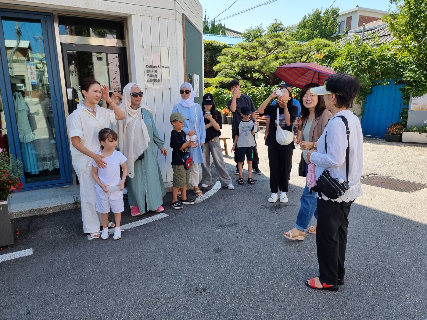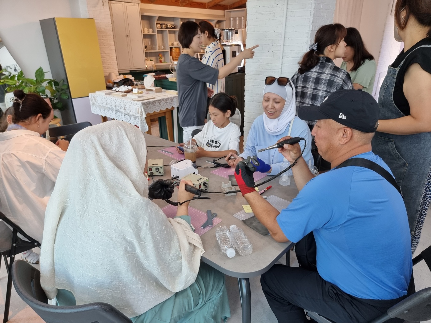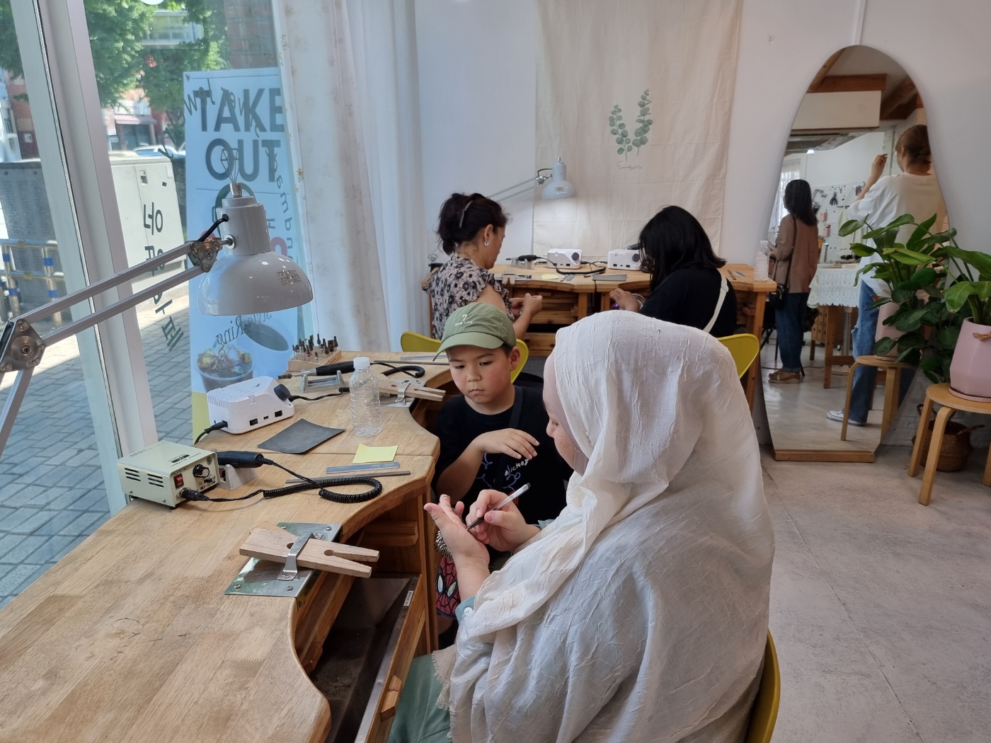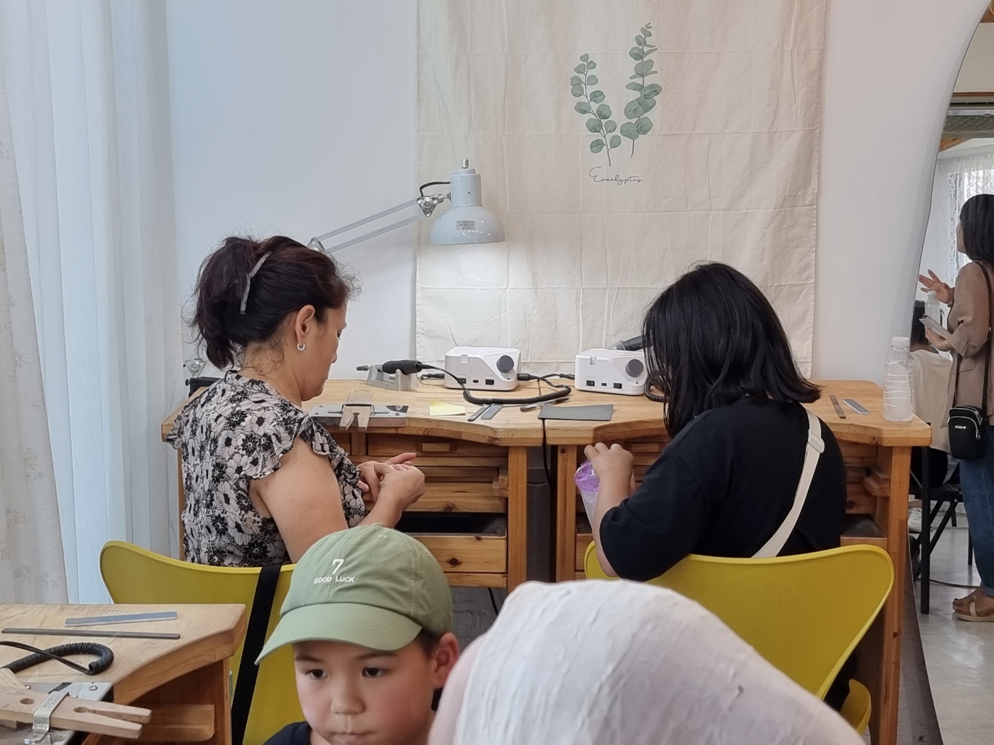지나 주와 같이 명주동을 둘러보고 설명도 듣은 후에 한 은공예 체험입니다.