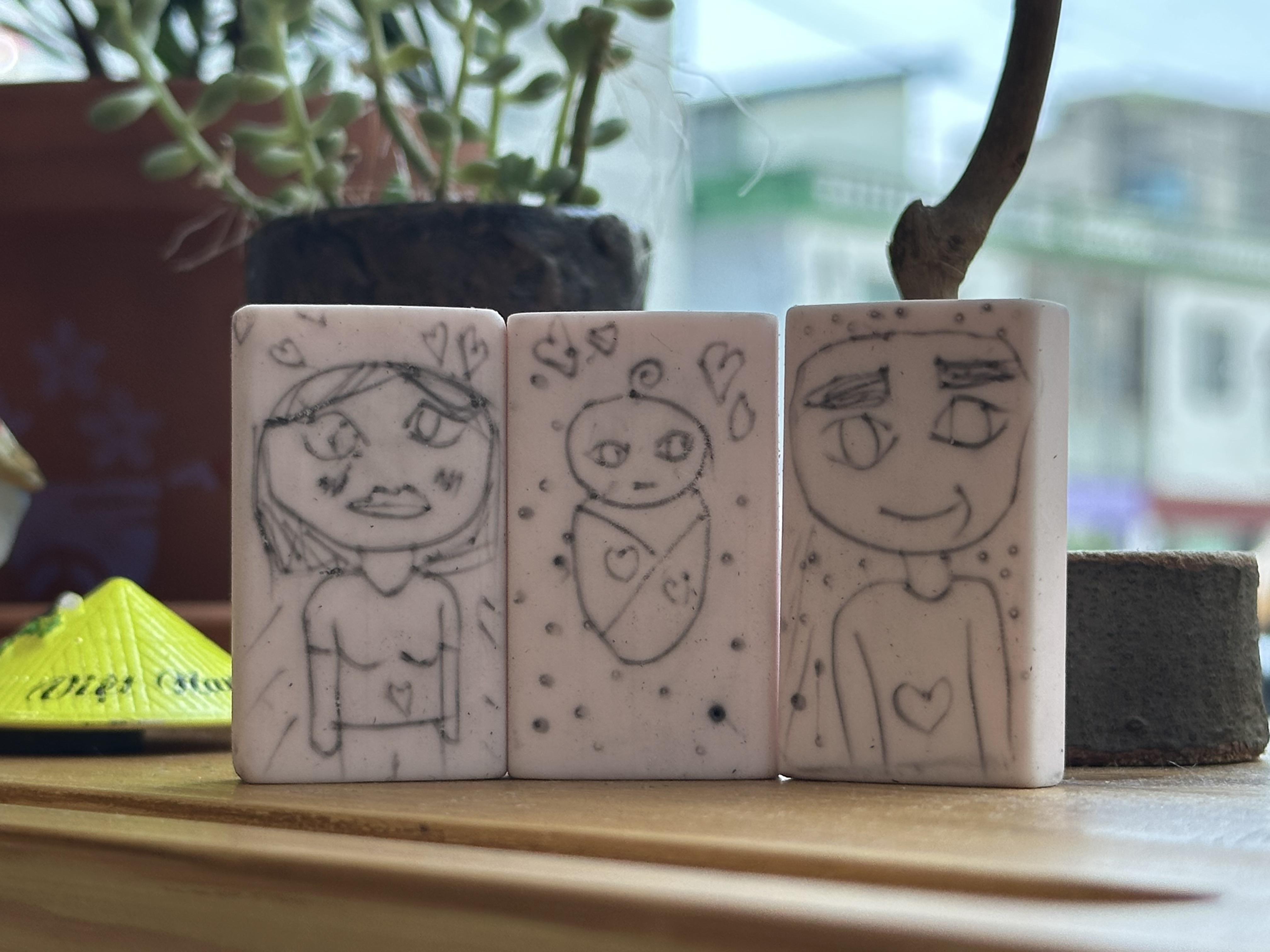 얼마전 새로 지우개와 연필을 다시 채워 넣었습니다. 그 지우개에다가 소소한 작품 하나 그려 놓고 갔습니다.