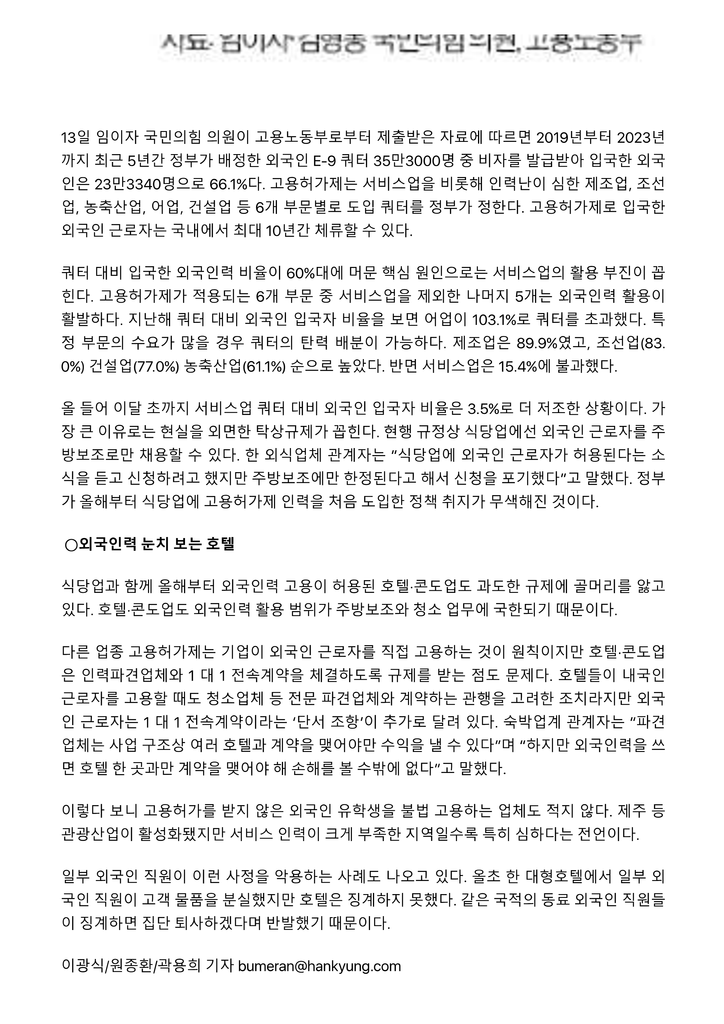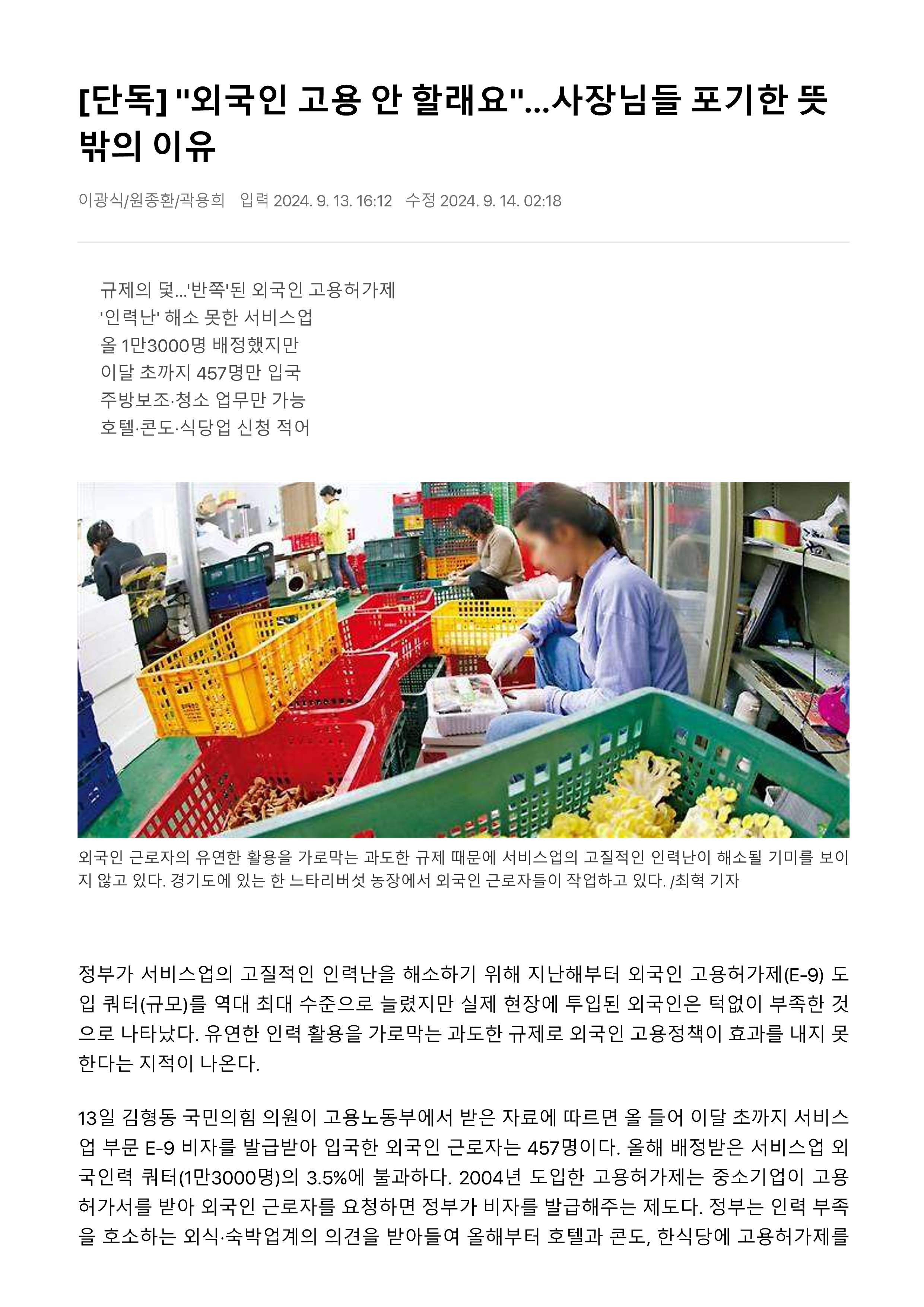 | [연합뉴스] 불러도 대답 없는 외국인력 고용에 정부 목표 ‘무색’ (0) | 2024.09.26 |