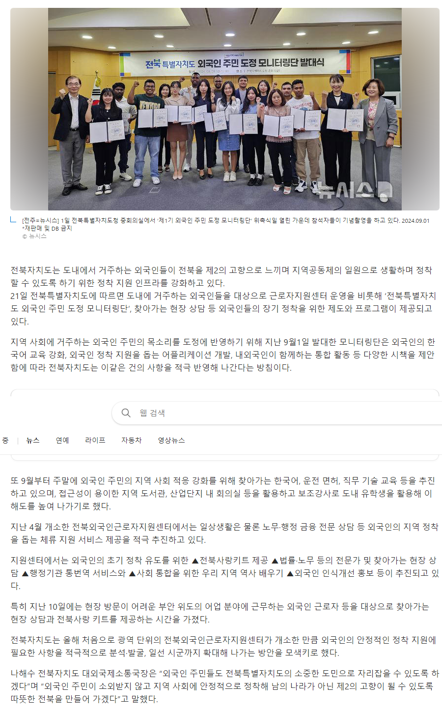 전북자치도, 외국인 정착 돕기 ‘맞춤형 지원' 강화 (msn.com)