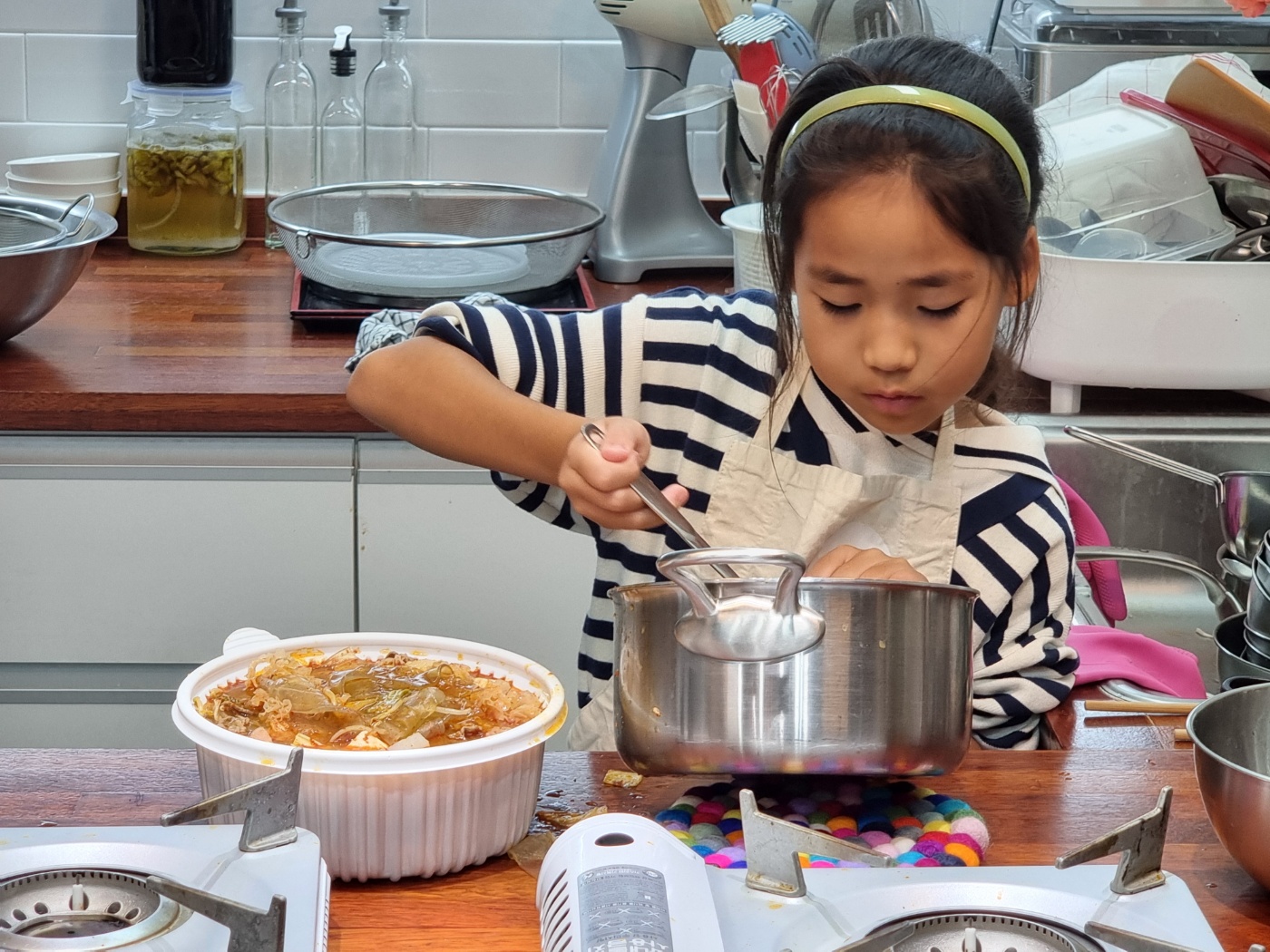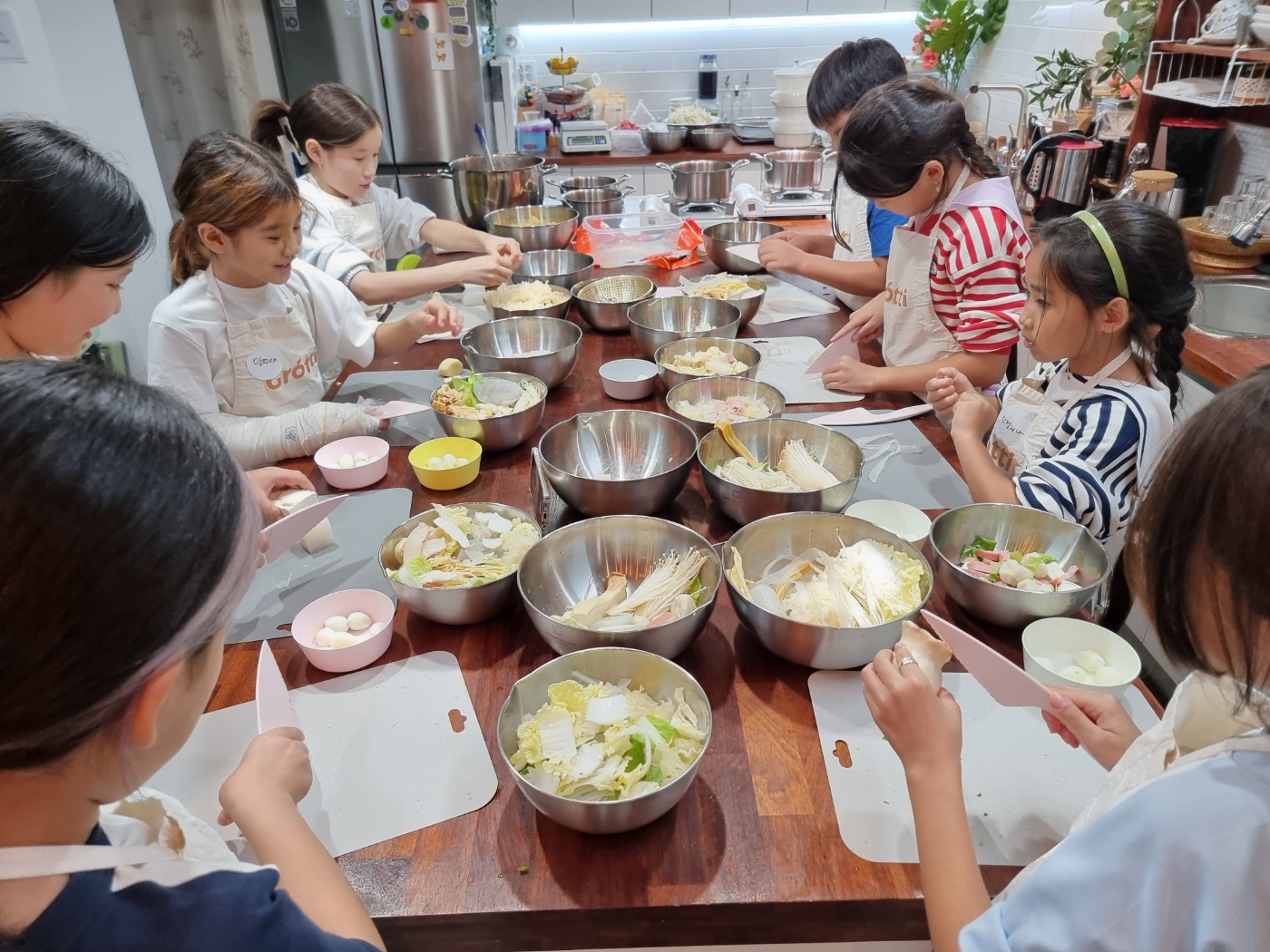 요리를 하는 아이들의 얼굴도