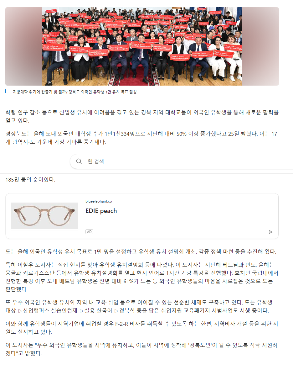 지방대학 위기에 한줄기 빛 될까? 경북도 외국인 유학생 1만 유치 목표 달성 (msn.com)