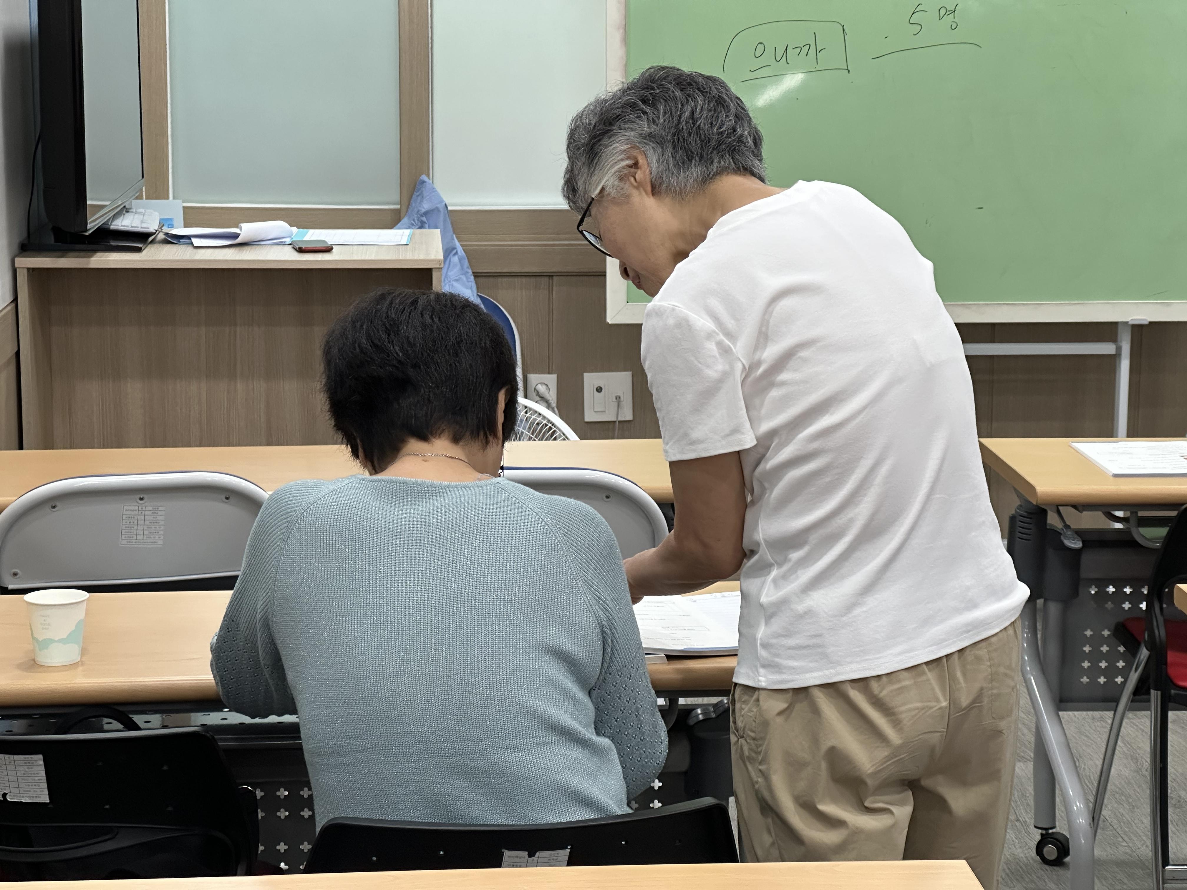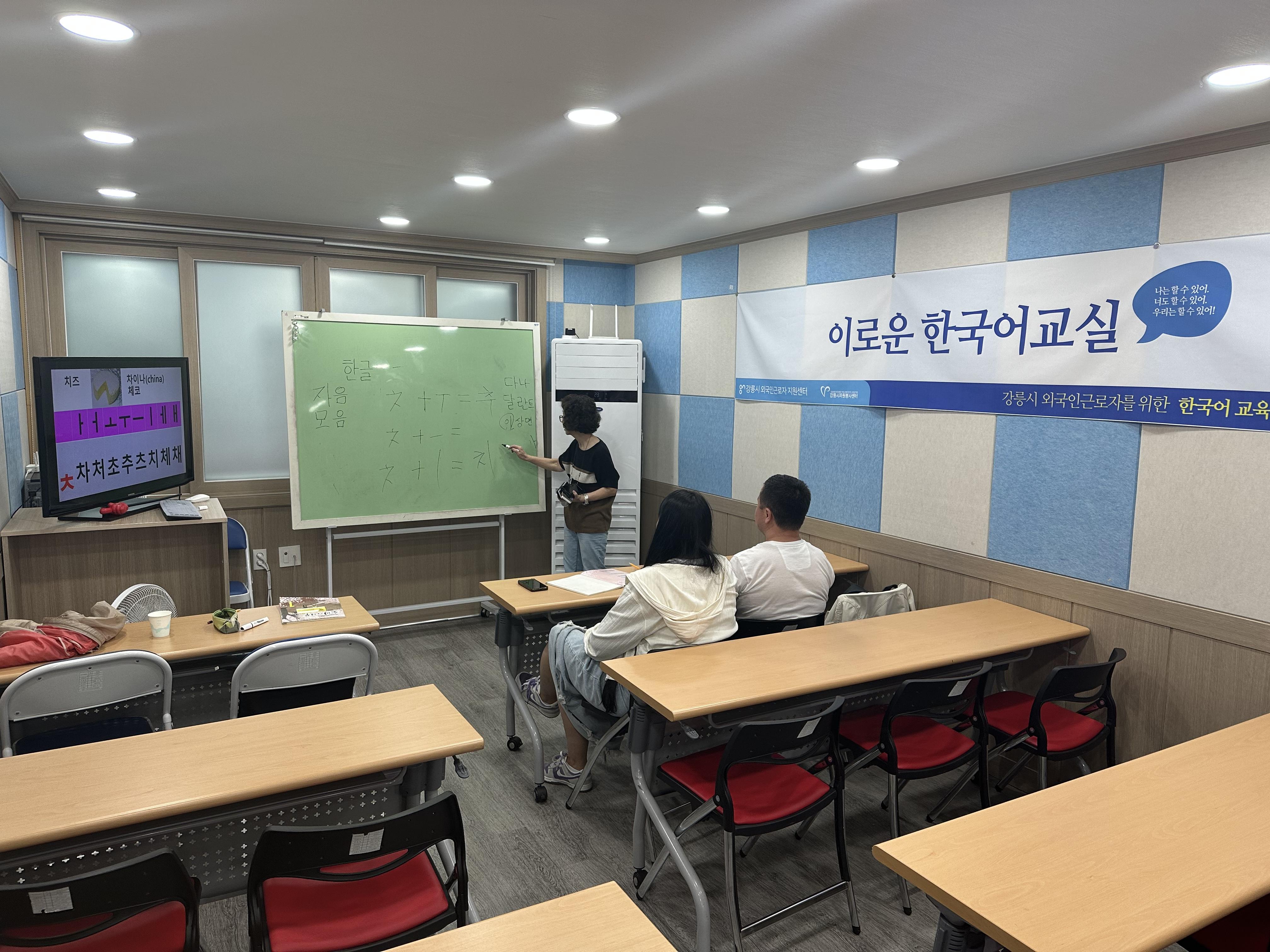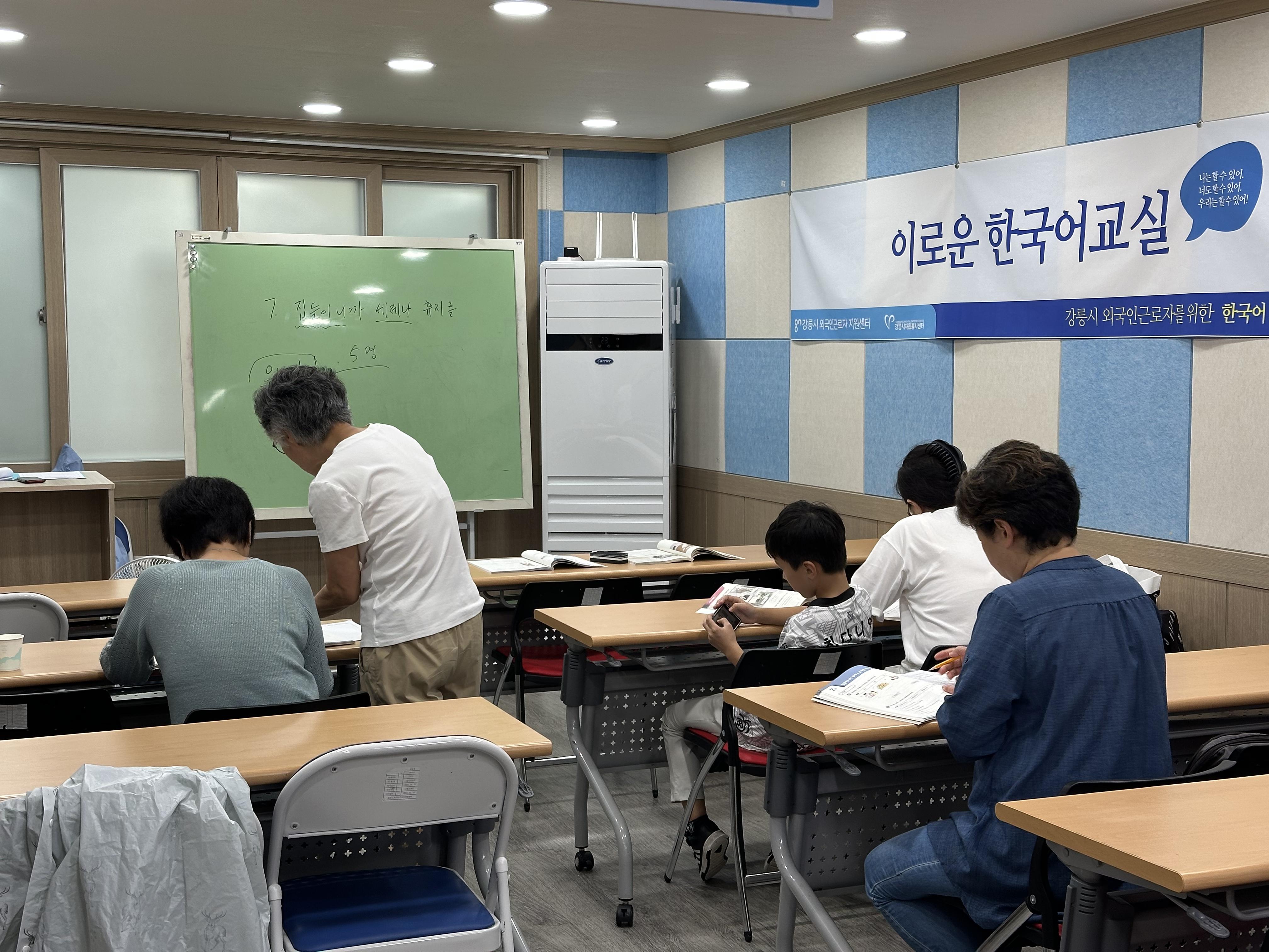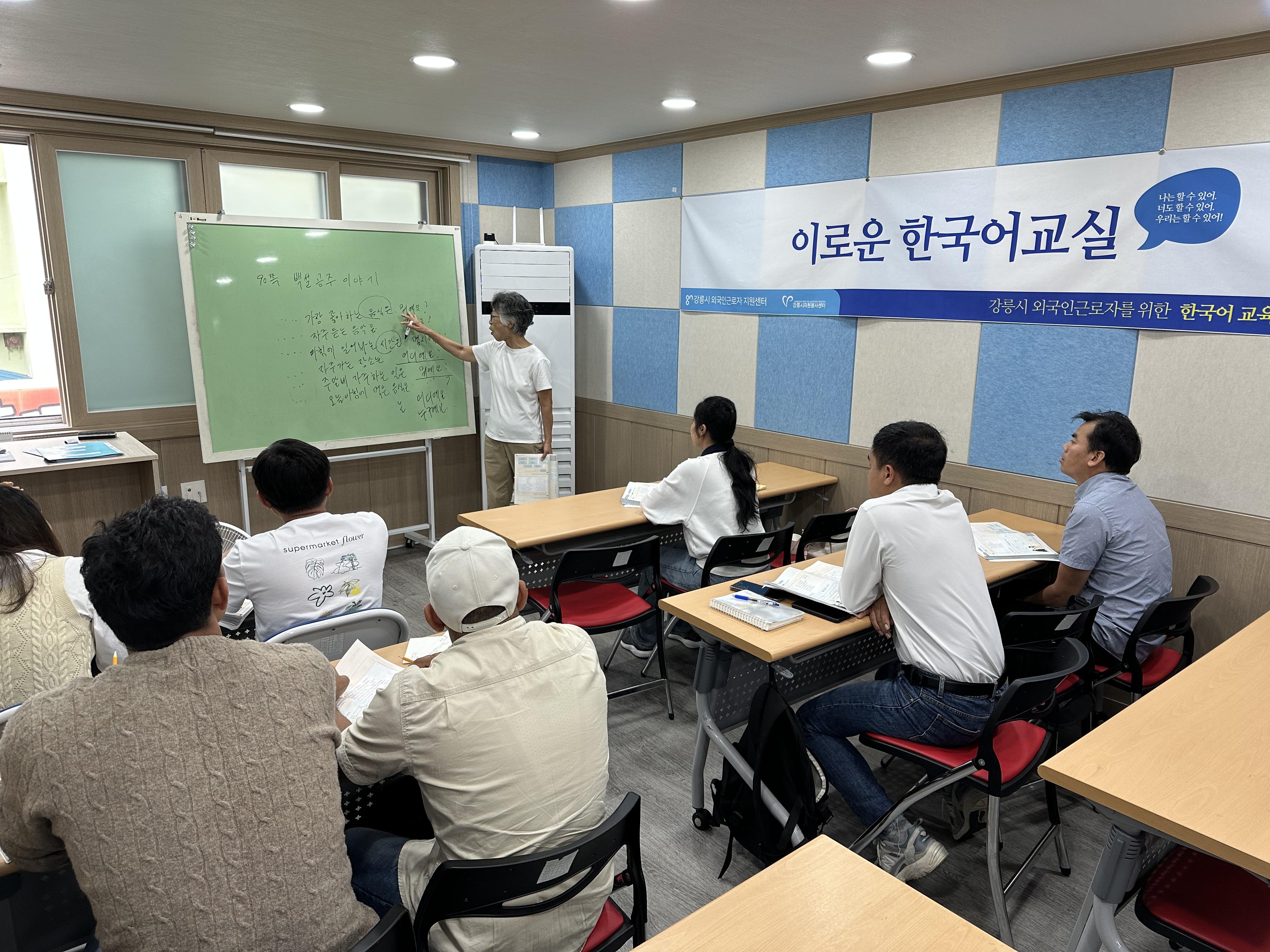 일하는 외국인근로자가 퇴근 후 한국어를 배울 수 있는 화요일저녁반 수업입니다.