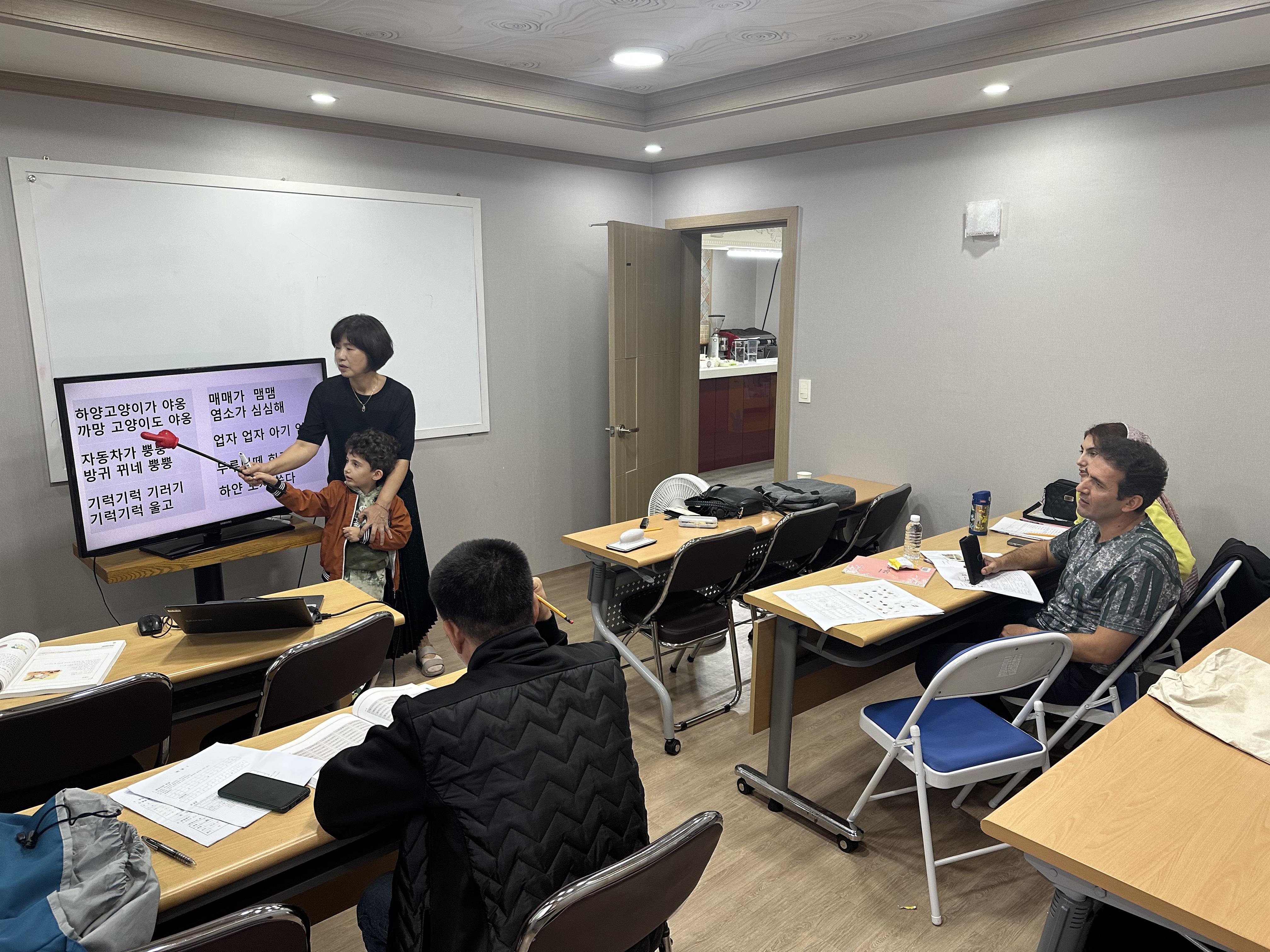 일하는 외국인근로자가 퇴근 후 한국어를 배울 수 있는 화요일저녁반 수업입니다.