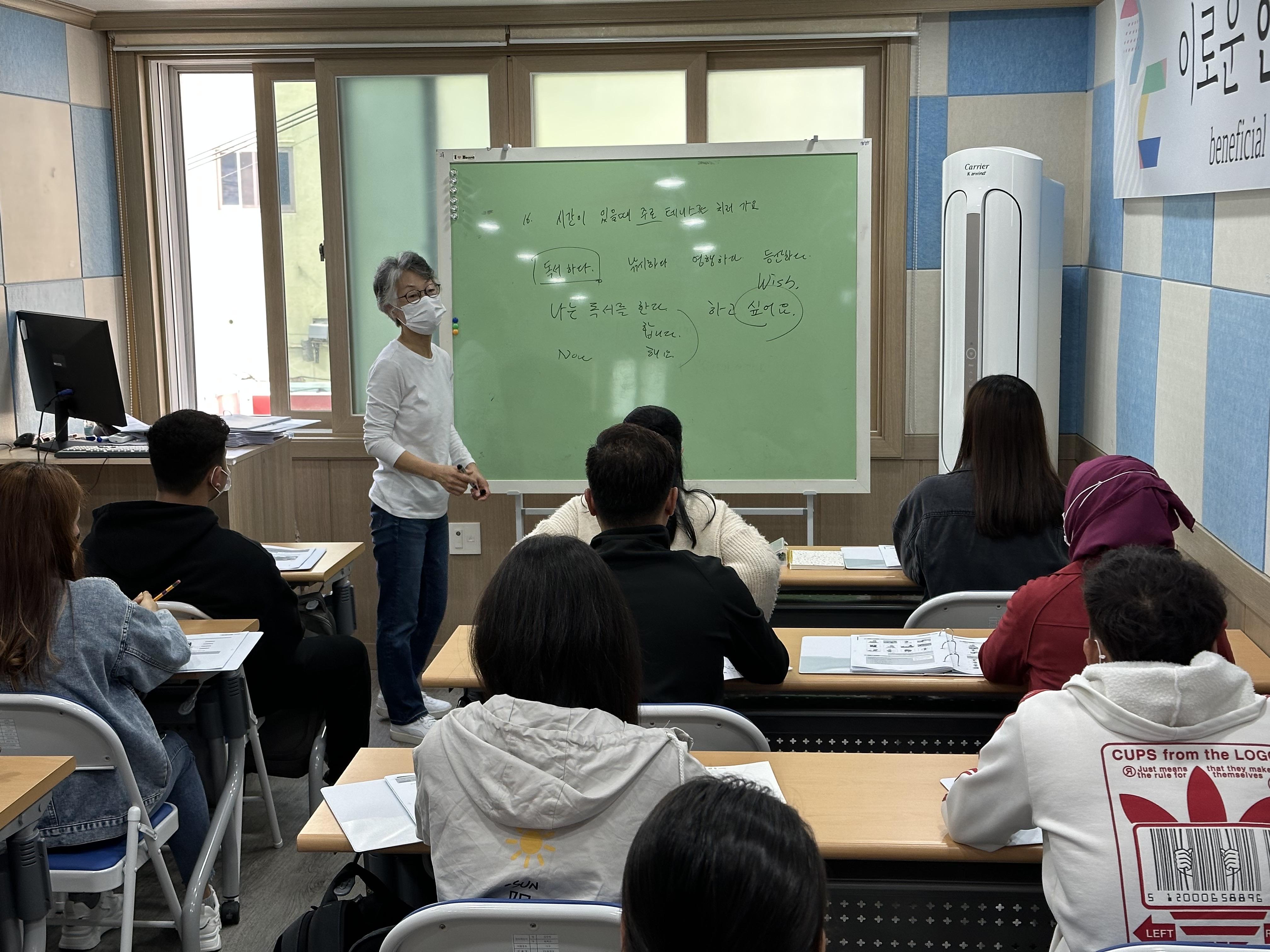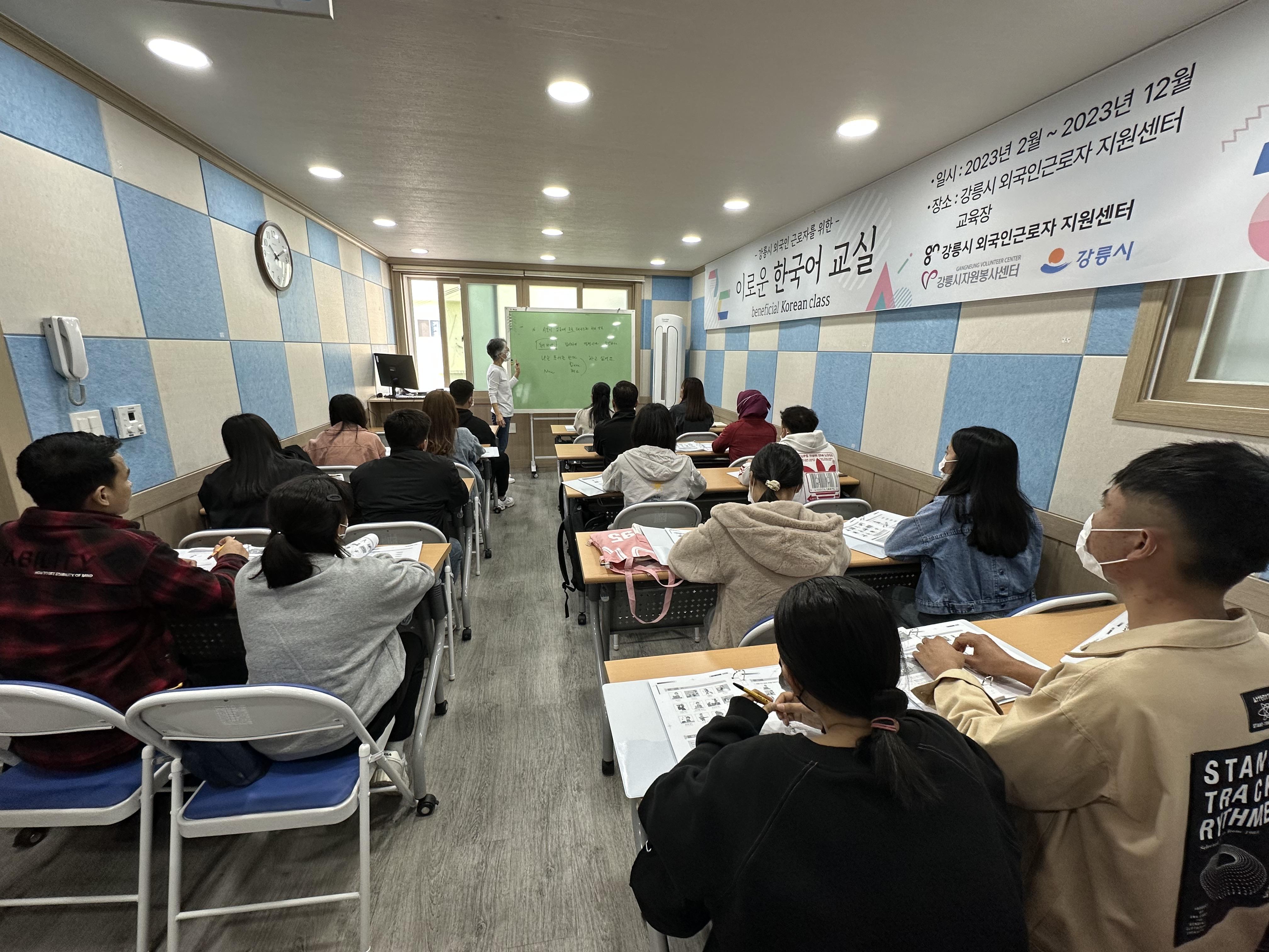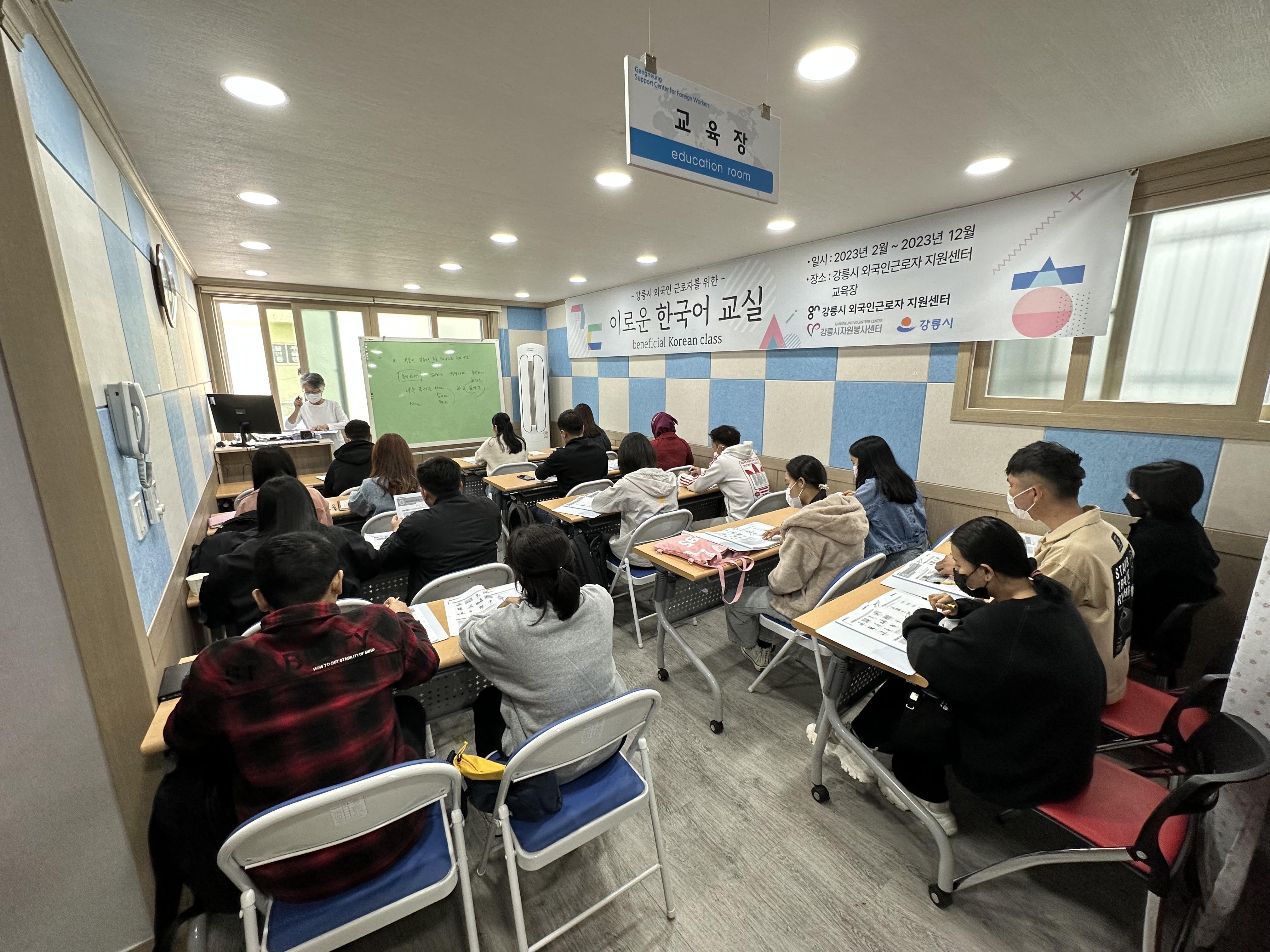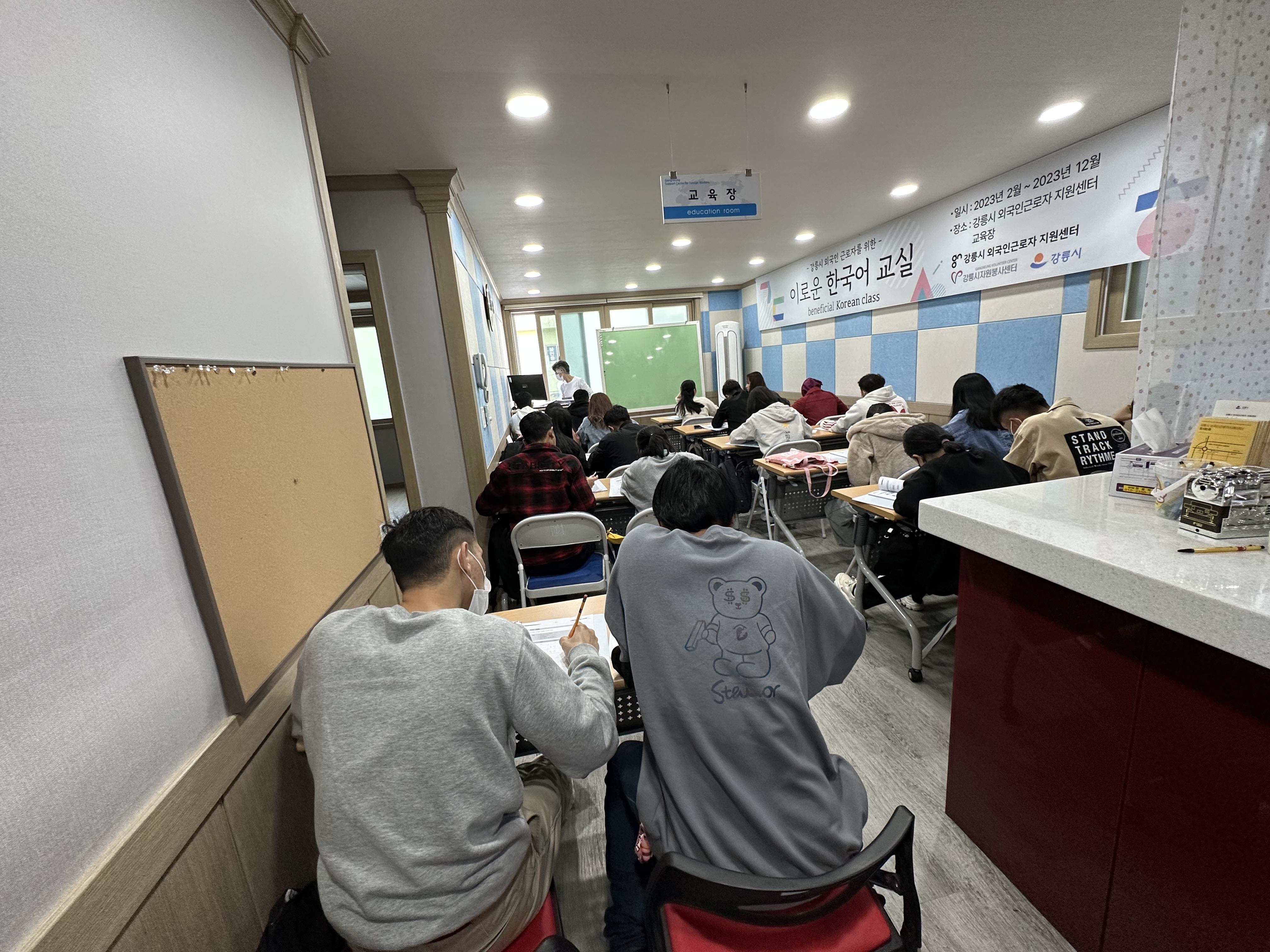 수업에 참여하는 외국인근로자 수가 점점 늘어나더니, 강의실을 가득 메워습니다.