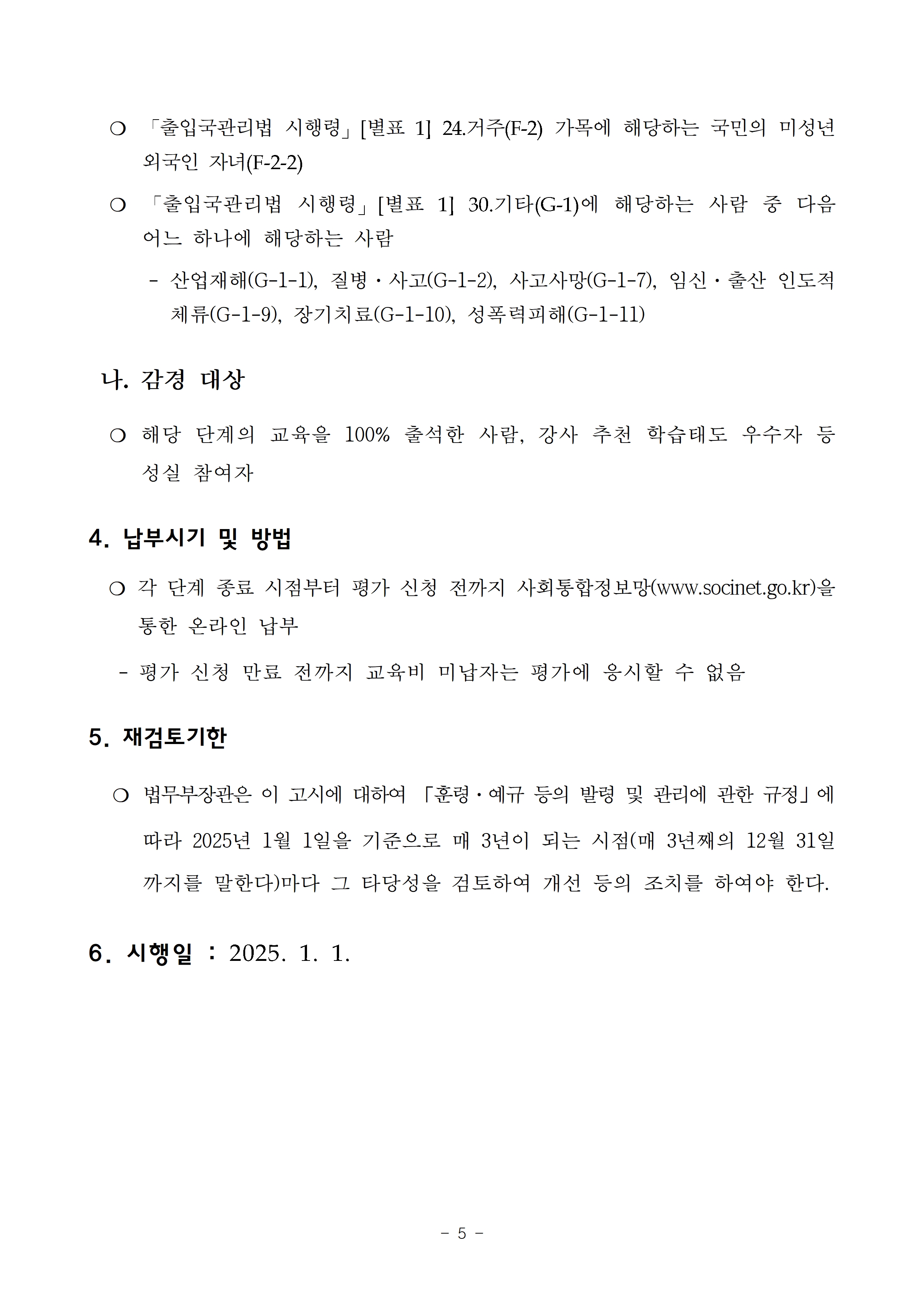 -납부대상자 : 사회통합프로그램 1~5단계 참여자